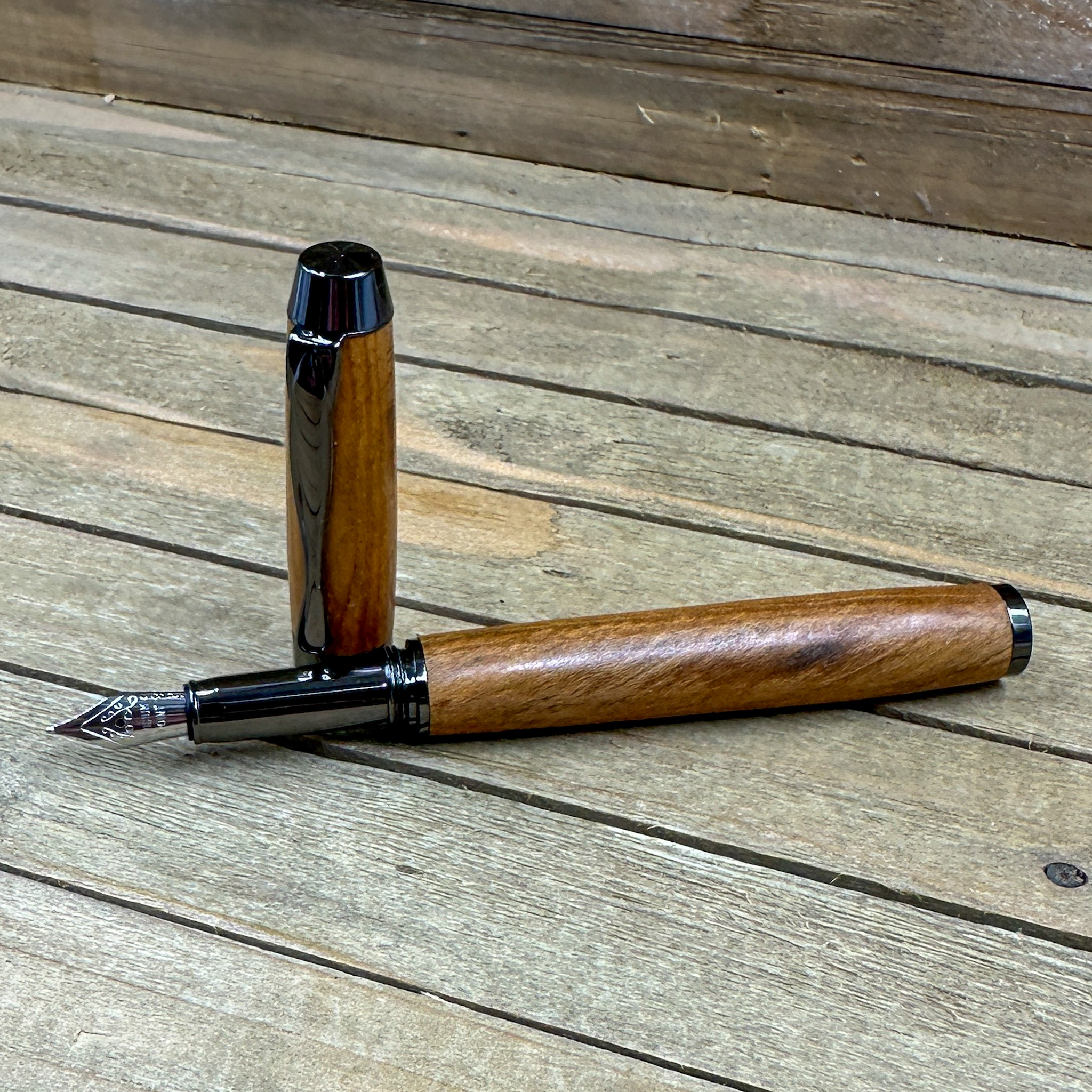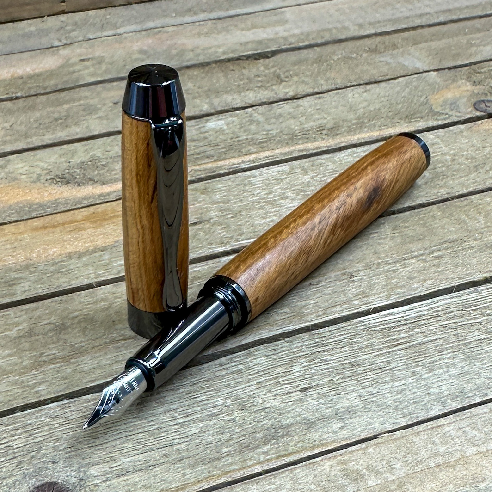 Discover the joy of writing by hand with a fountain pen. This introductory fountain pen is handcrafted from Bradford Pear wood, a beautiful hardwood known for its soft grain and warm, golden-brown tones. Finished with care and fitted with a smooth medium-fine steel nib, this pen is designed to offer a satisfying writing experience for beginners and enthusiasts alike.