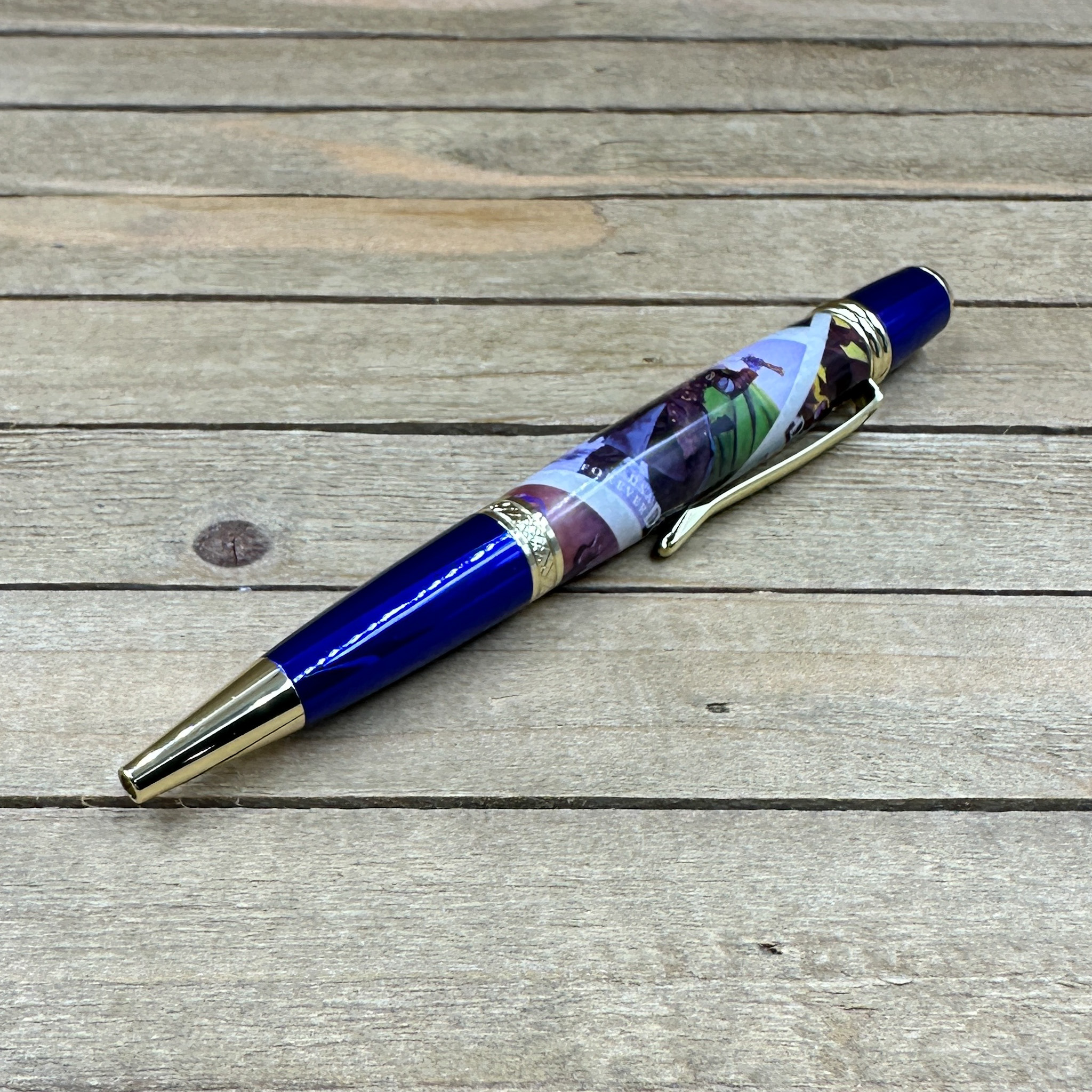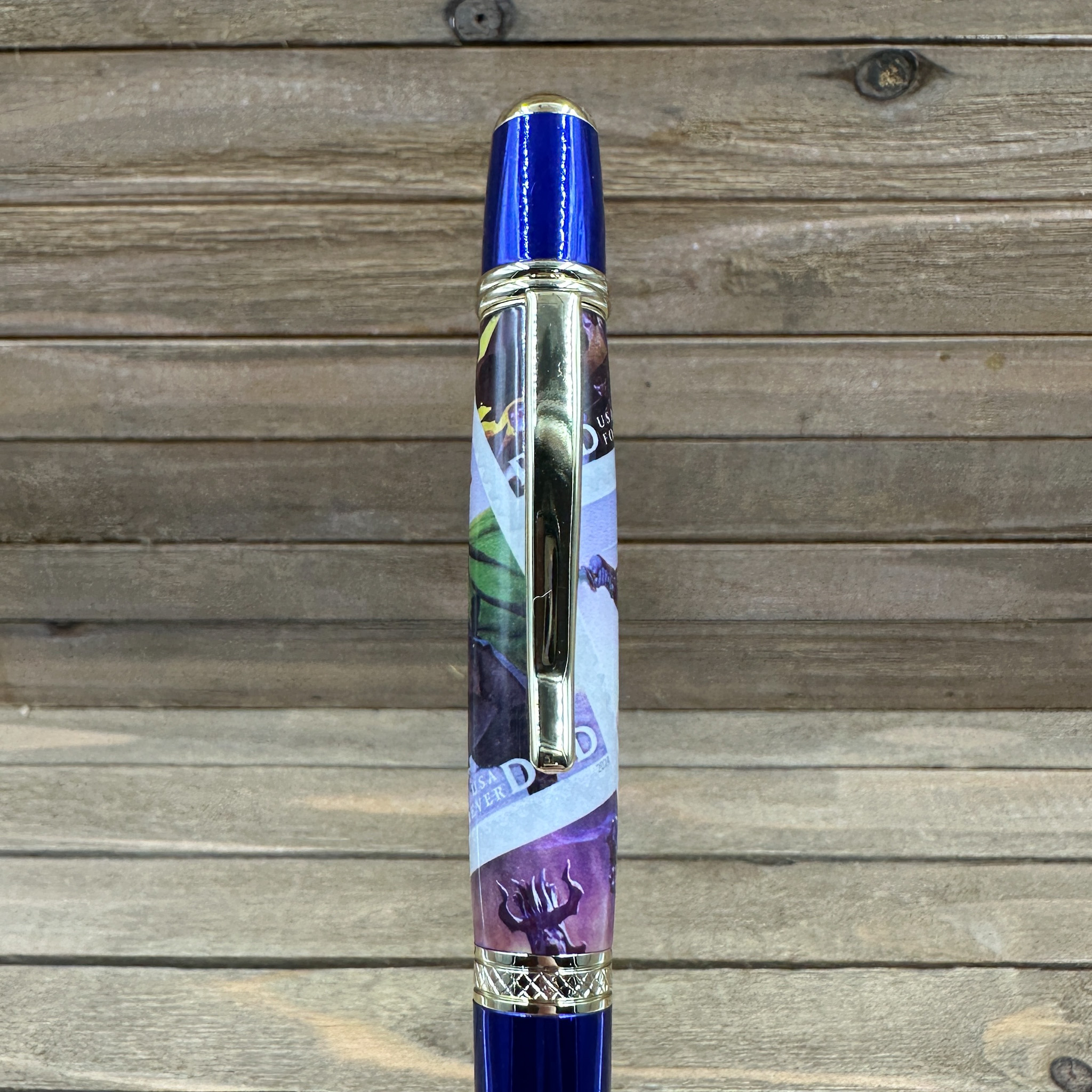 Bring your love of adventure to the tabletop — and your desk. This handcrafted Sierra-style ballpoint pen features authentic DnD postage stamps, carefully cast in crystal-clear resin for a stunning and durable finish. The iconic D&D imagery is permanently preserved within the pen body, making each piece a unique collectible that celebrates imagination and storytelling.