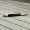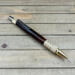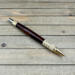 This custom handmade pen, like all my other pens, was personally handcrafted by me in my woodshop. These are not mass produced pens and each one is handcrafted by myself so you are getting a craftsman's touch and the love of their craft with each pen. Each pen I craft has subtle differences making it a truly one of a kind pen. First, a cocobolo blank is selected to compliment the brass components. Second, I drill the blank to prep it for turning. Third, it is meticulously turned down with my lathe to fit the Duraclick pen components taking proper care that it transitions to the pen hardware perfectly. Finally, a finish is applied and the pen is wet polished to a very high gloss. The polish gives the pen a lot of depth and really brings out the color of the hardwood. All of my pens have already been produced by me so you know you will be getting the pen pictured in the listing. This eliminates the guess work on how it will look like once made and my pens are ready to ship without long waiting times.