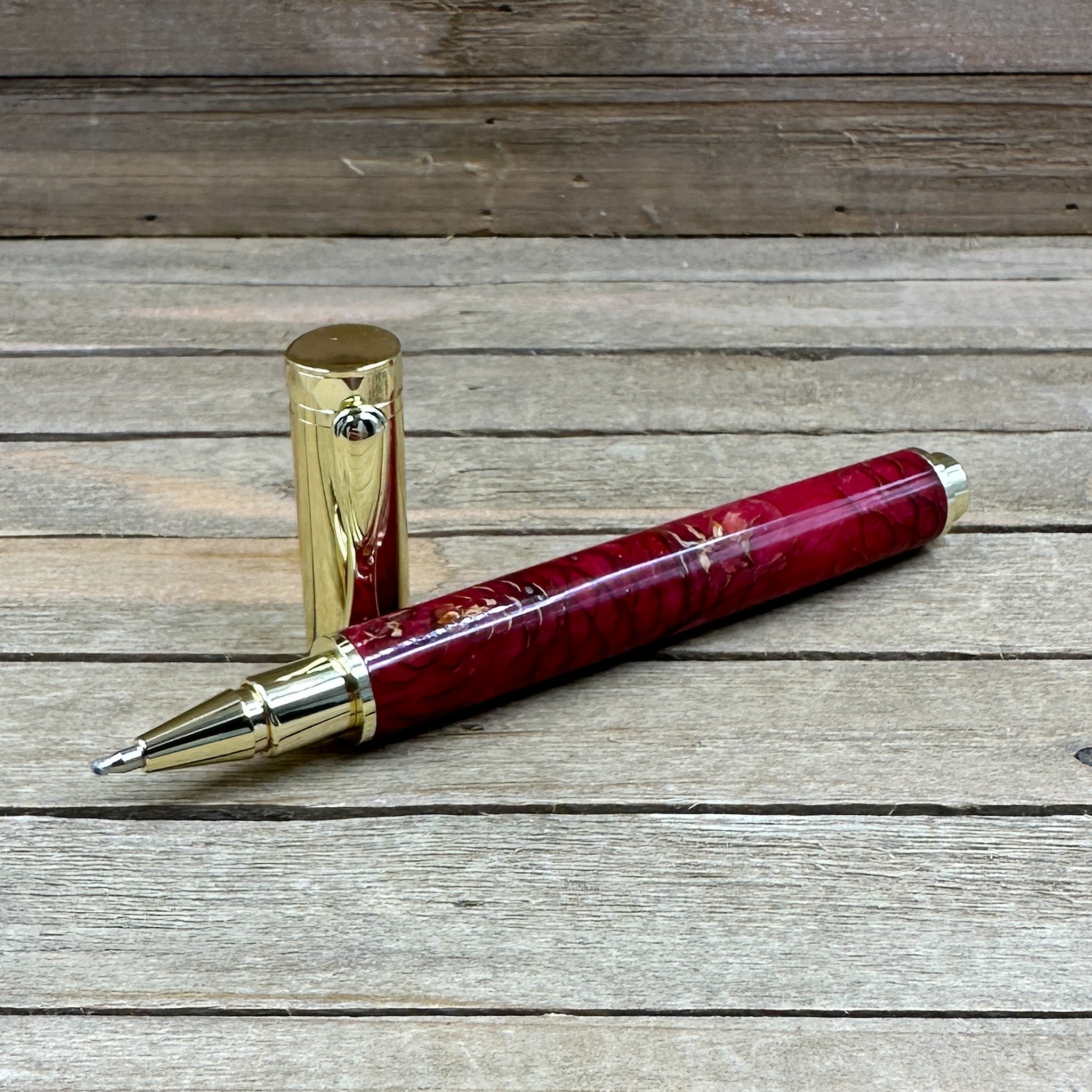 This custom handmade pen, like all my other pens, was personally handcrafted by me in my woodshop. These are not mass produced pens and each one is handcrafted by myself so you are getting a craftsman's touch and the love of their craft with each pen. Each pen I craft has subtle differences making it a truly one of a kind pen. First, I harvest mini pinecones, dry them out, and cast them into a usable pen blank with epoxy resin. I use the created blank and match it with complimentary pen components. Second, I drill the cast blank to prep it for turning. Third, it is meticulously turned down with my lathe to fit the Zen pen components taking proper care that it transitions to the pen hardware perfectly. Finally, a gloss finish is applied and the pen is wet polished to a very high gloss. The polish gives the pen a lot of depth and really brings out the color. All of my pens have already been produced by me so you know you will be getting the pen pictured in the listing. This eliminates the guess work on how it will look like once made and my pens are ready to ship without long waiting times.