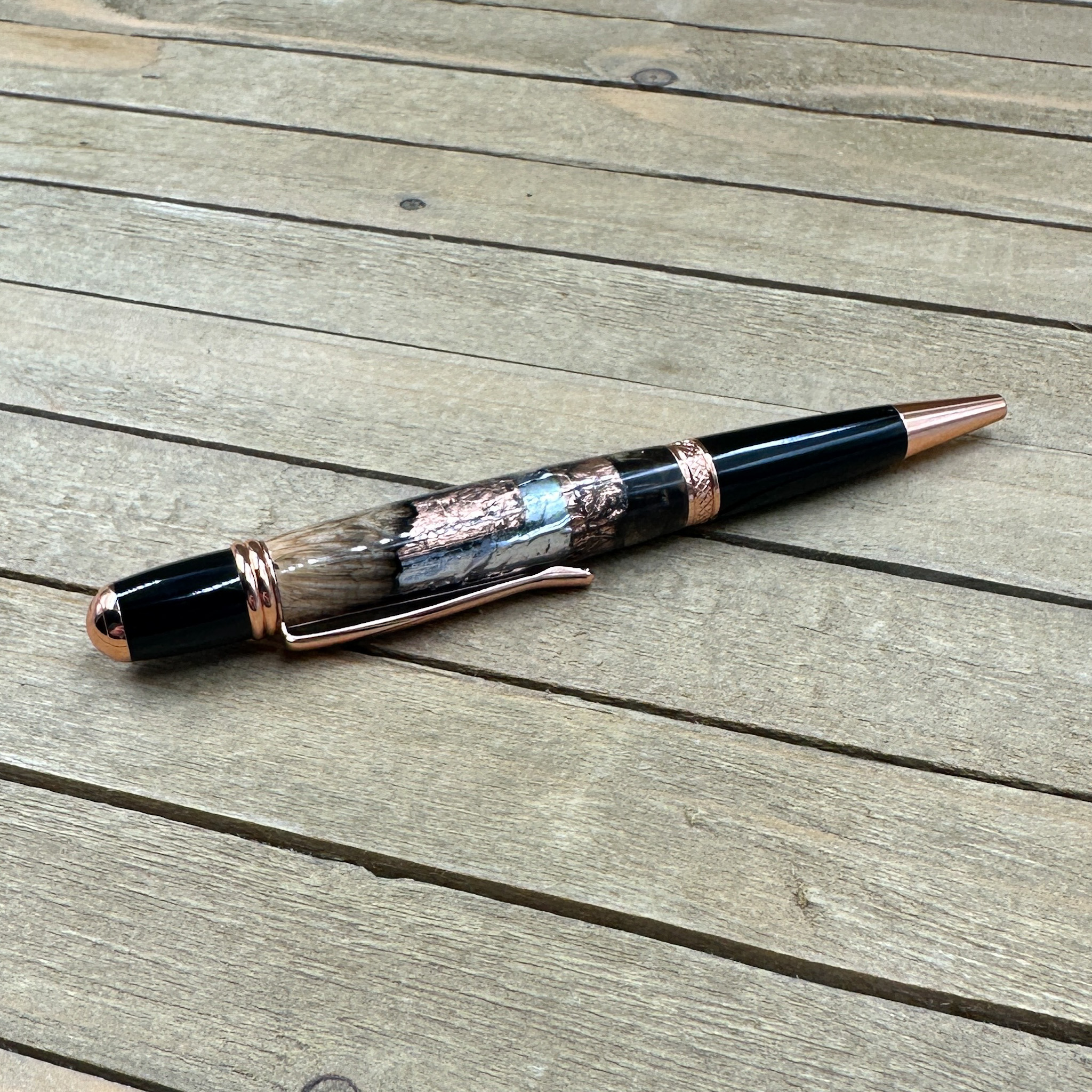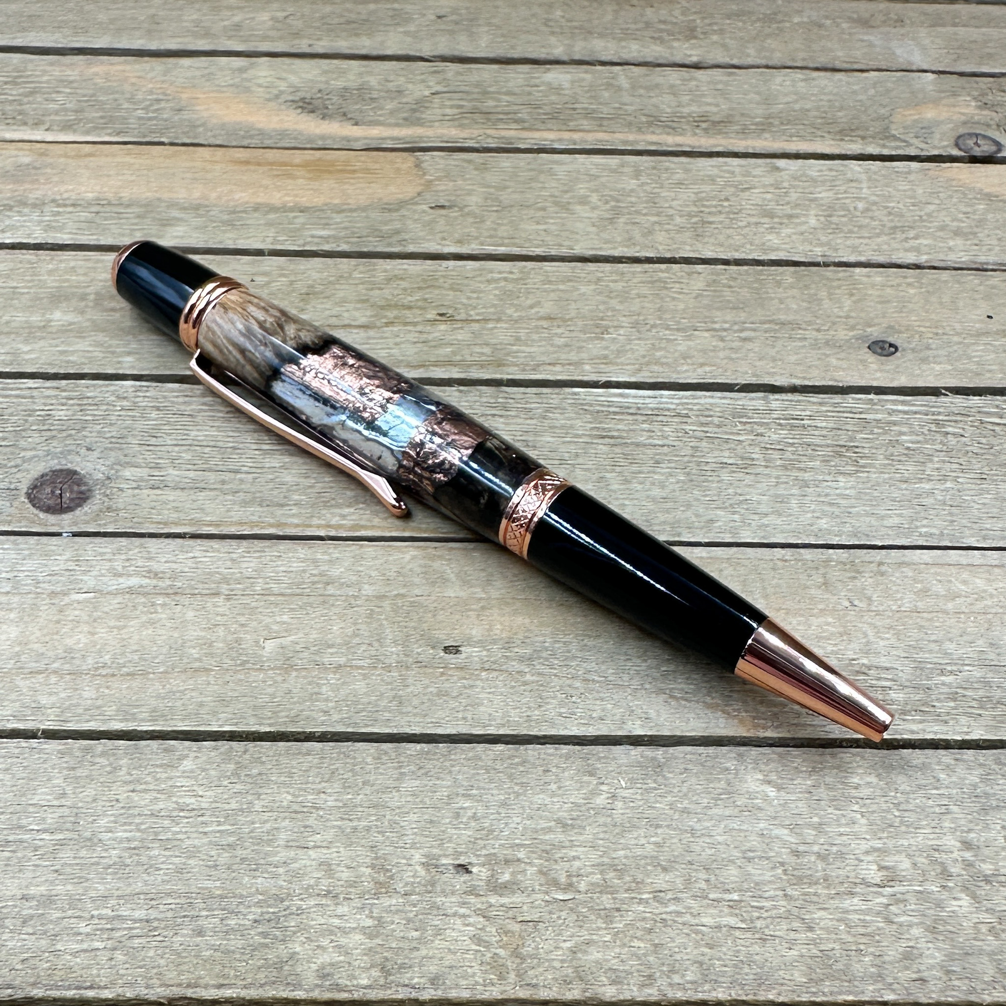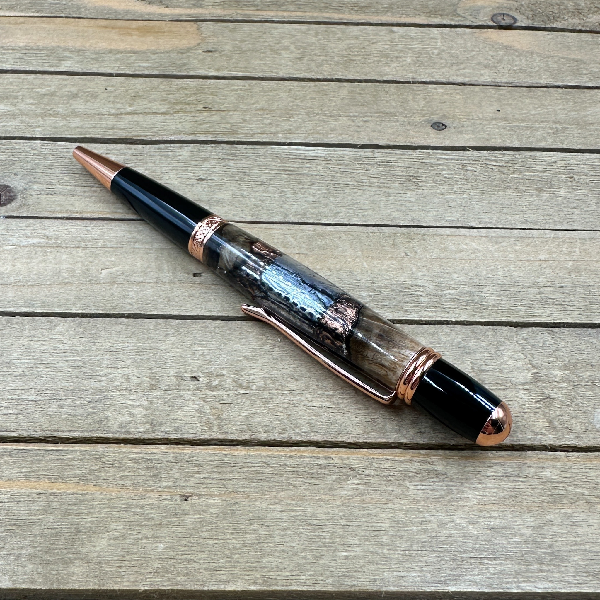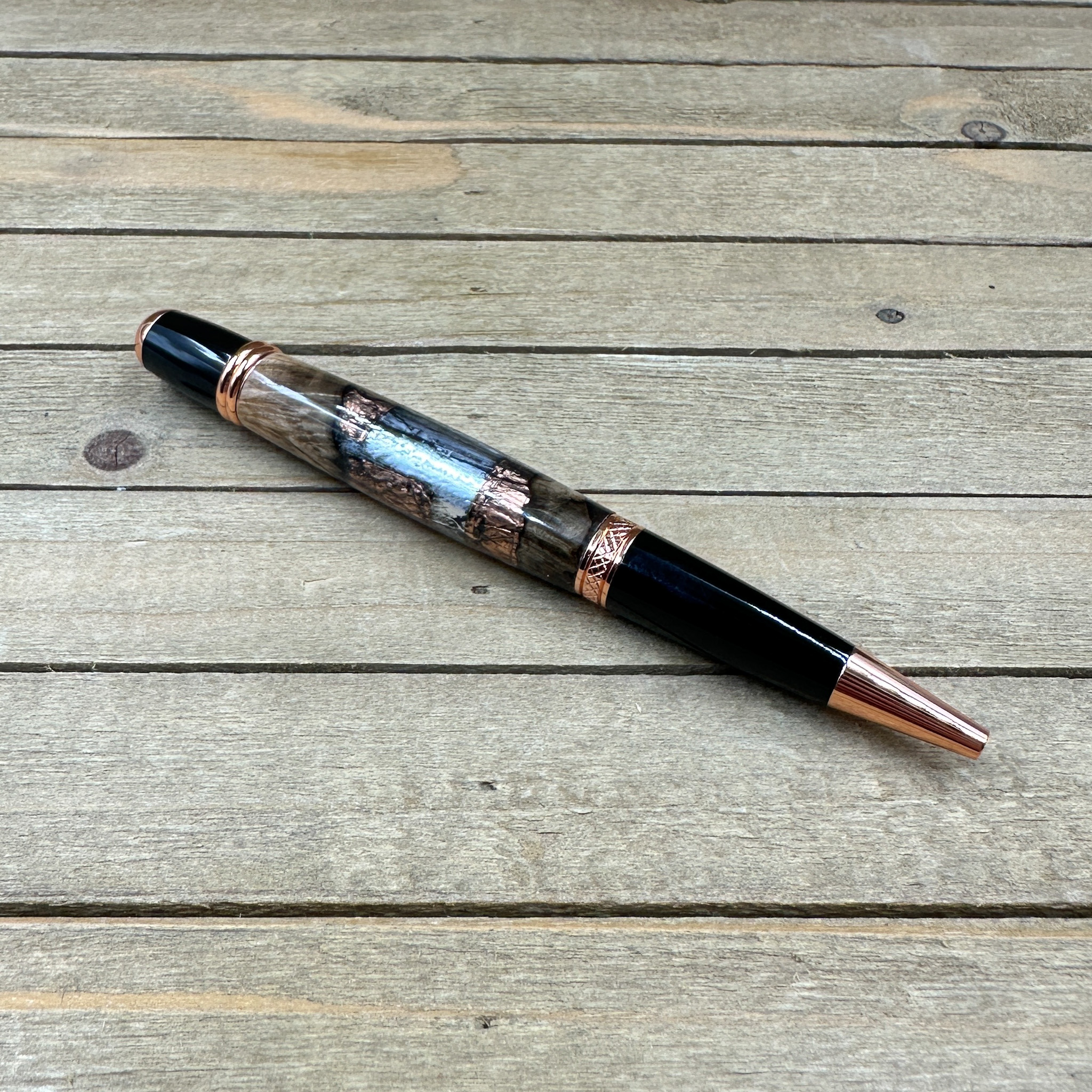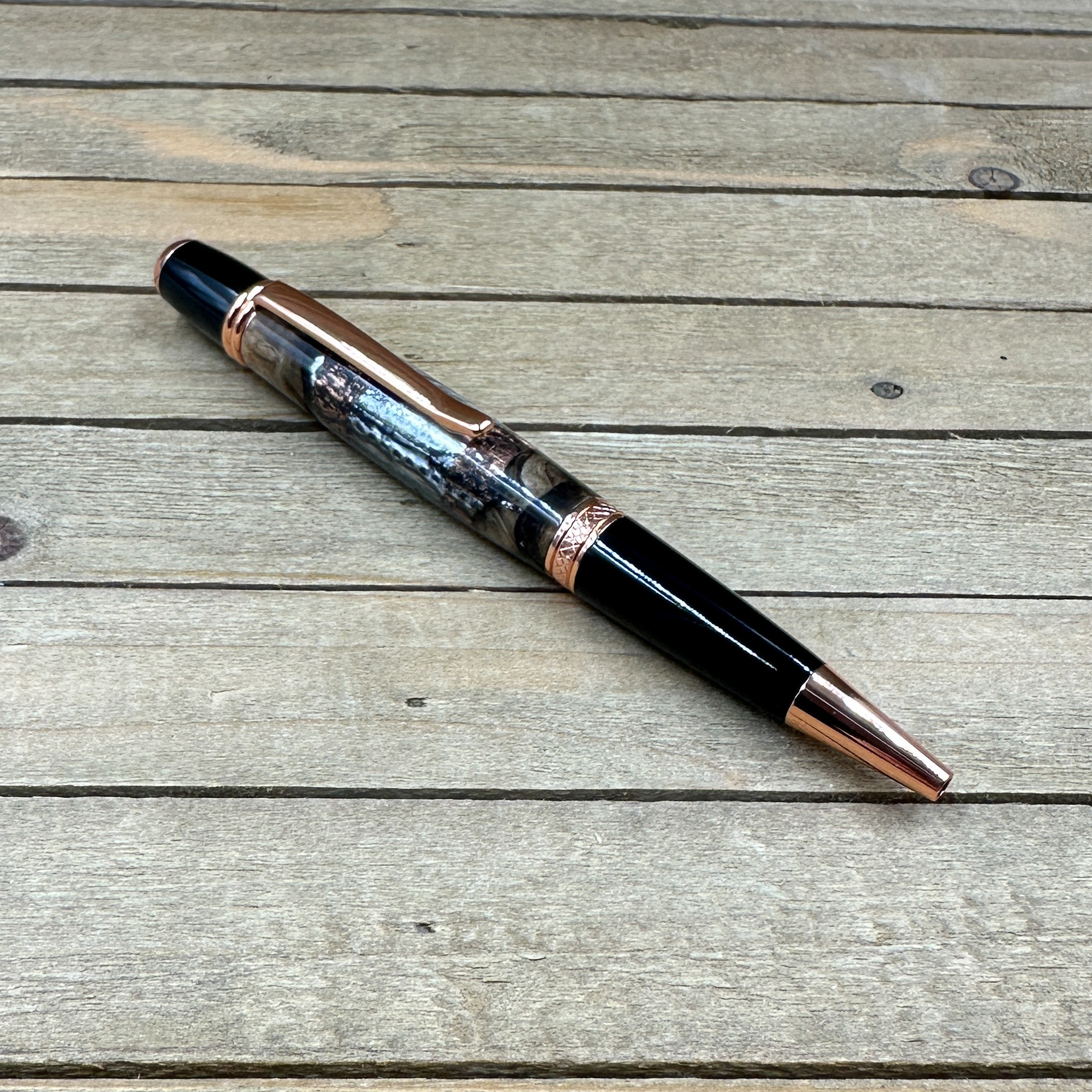 Each pen has been handcrafted by me in my woodshop, ensuring that you receive a one-of-a-kind piece that reflects your style and personality. The pen shown is the pen you will receive. Embrace the Steampunk spirit and elevate your writing experience with this unique Sierra style pen.
