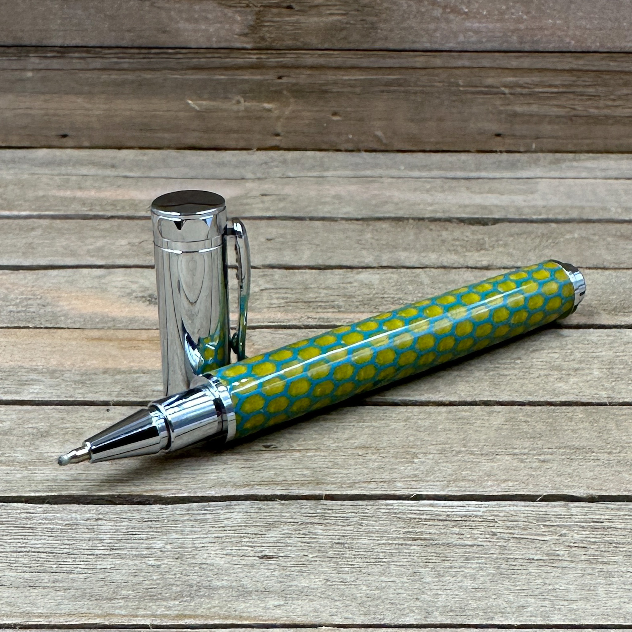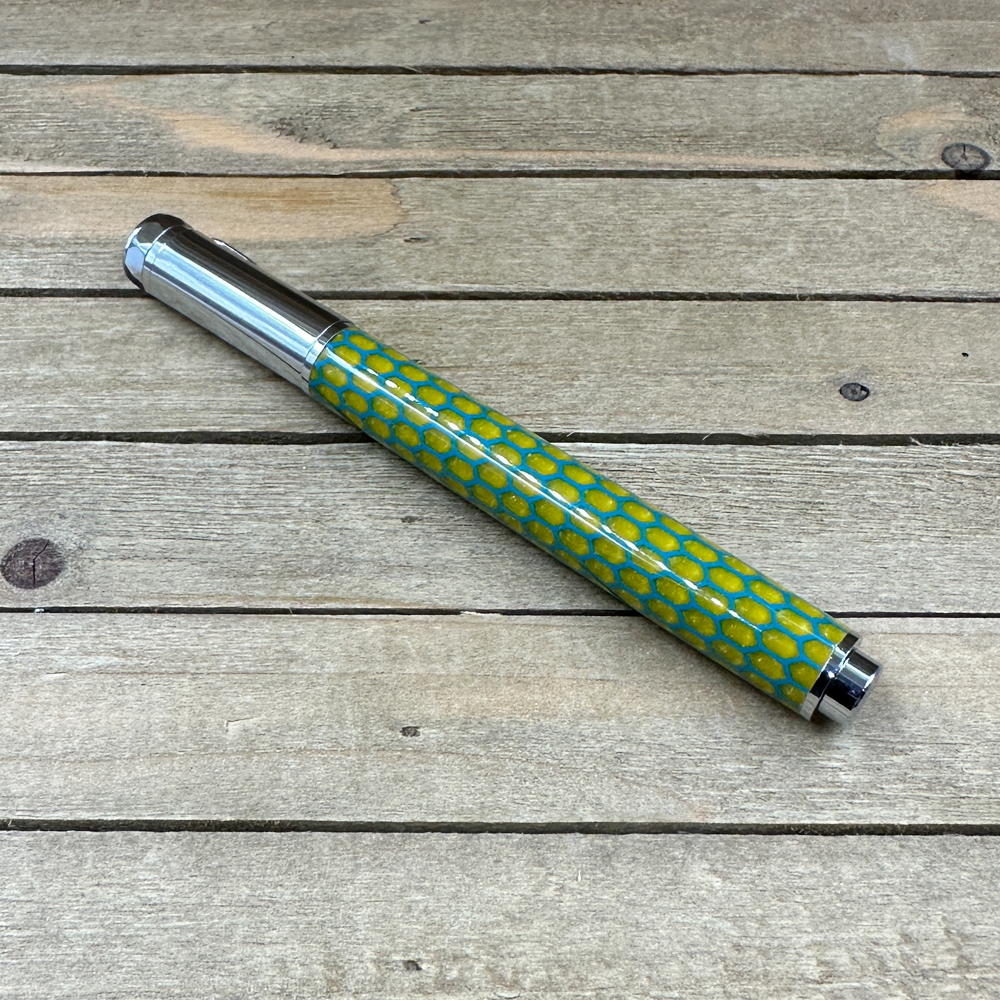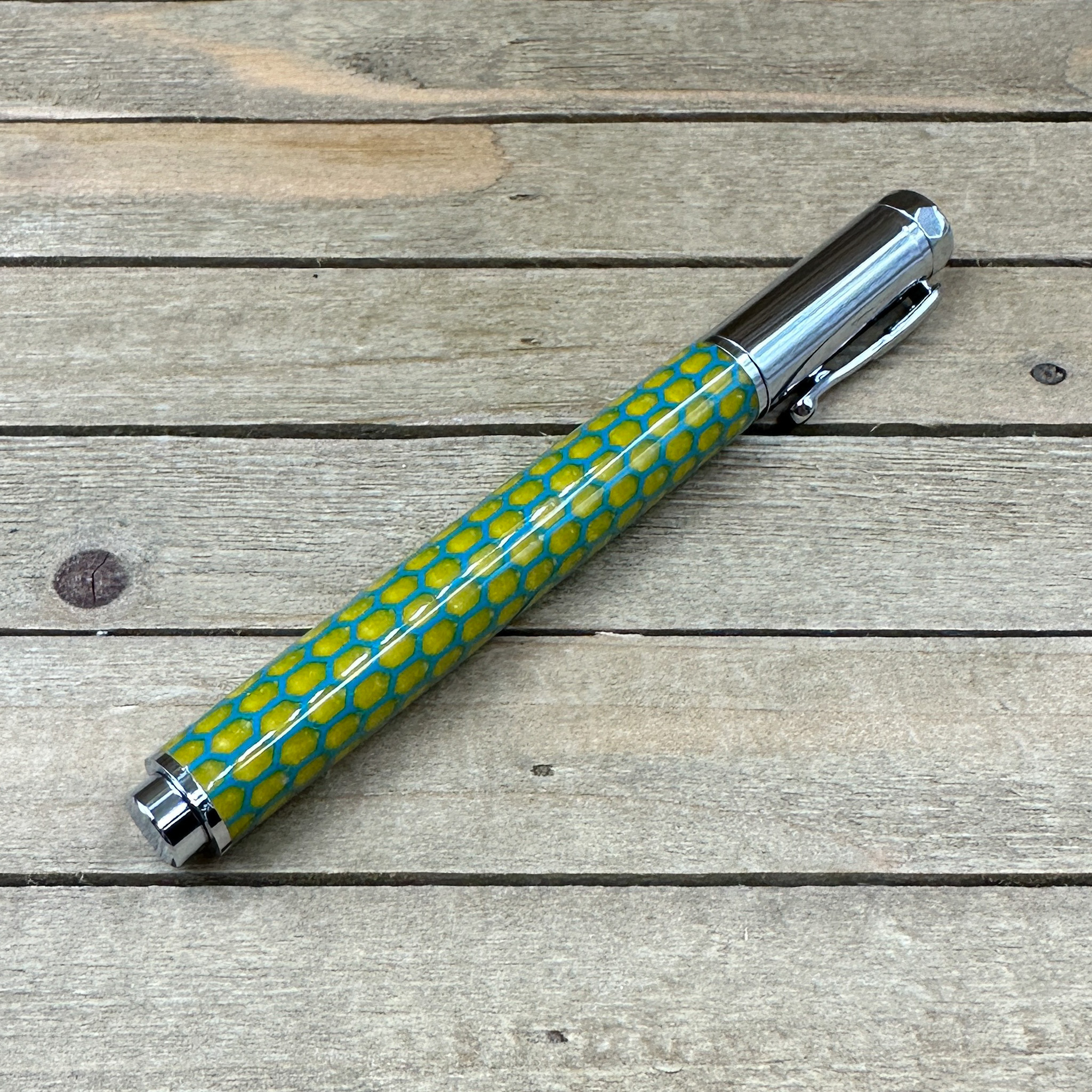 Are you looking for a perfect gift that is handcrafted or are you looking for a custom pen for yourself? Then this hand cast and 3D printed honeycomb "Zen" style rollerball pen is just for you. It is perfect for using it daily at the office or just showing off to your friends and coworkers. This beautiful pen is also a great conversation starter or can be used as a way to say thank you, happy birthday, happy anniversary, happy retirement, happy boss' day or a just because gift.
