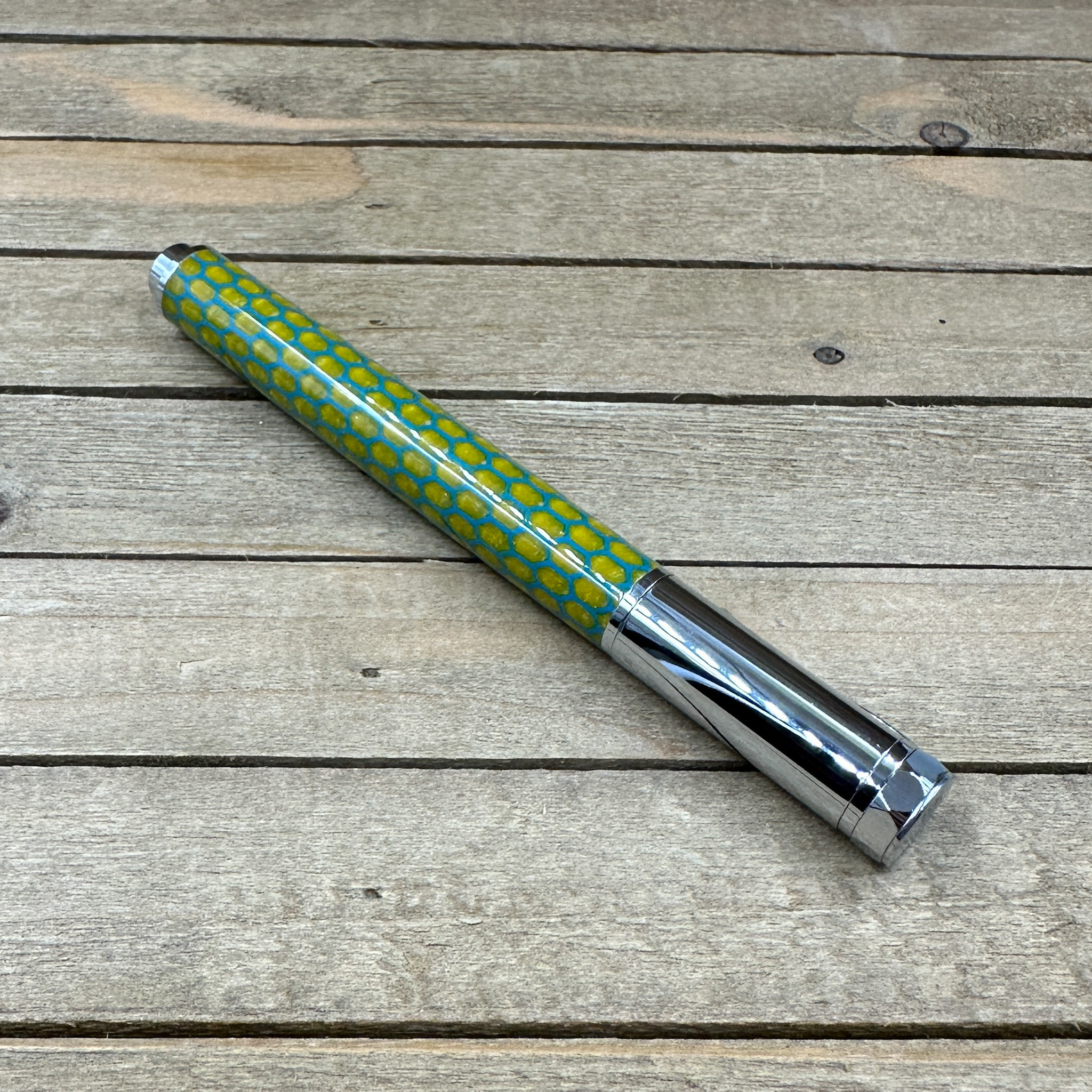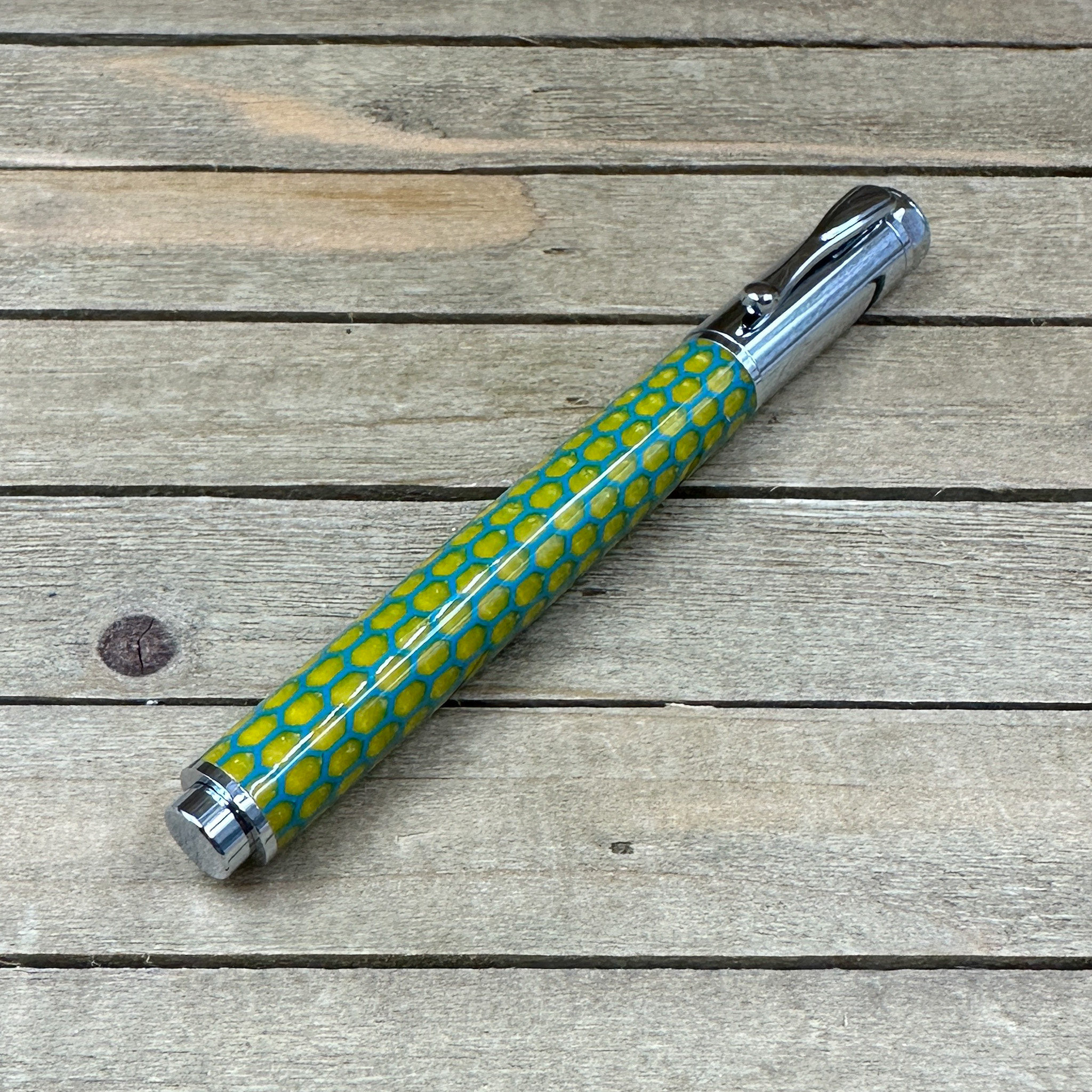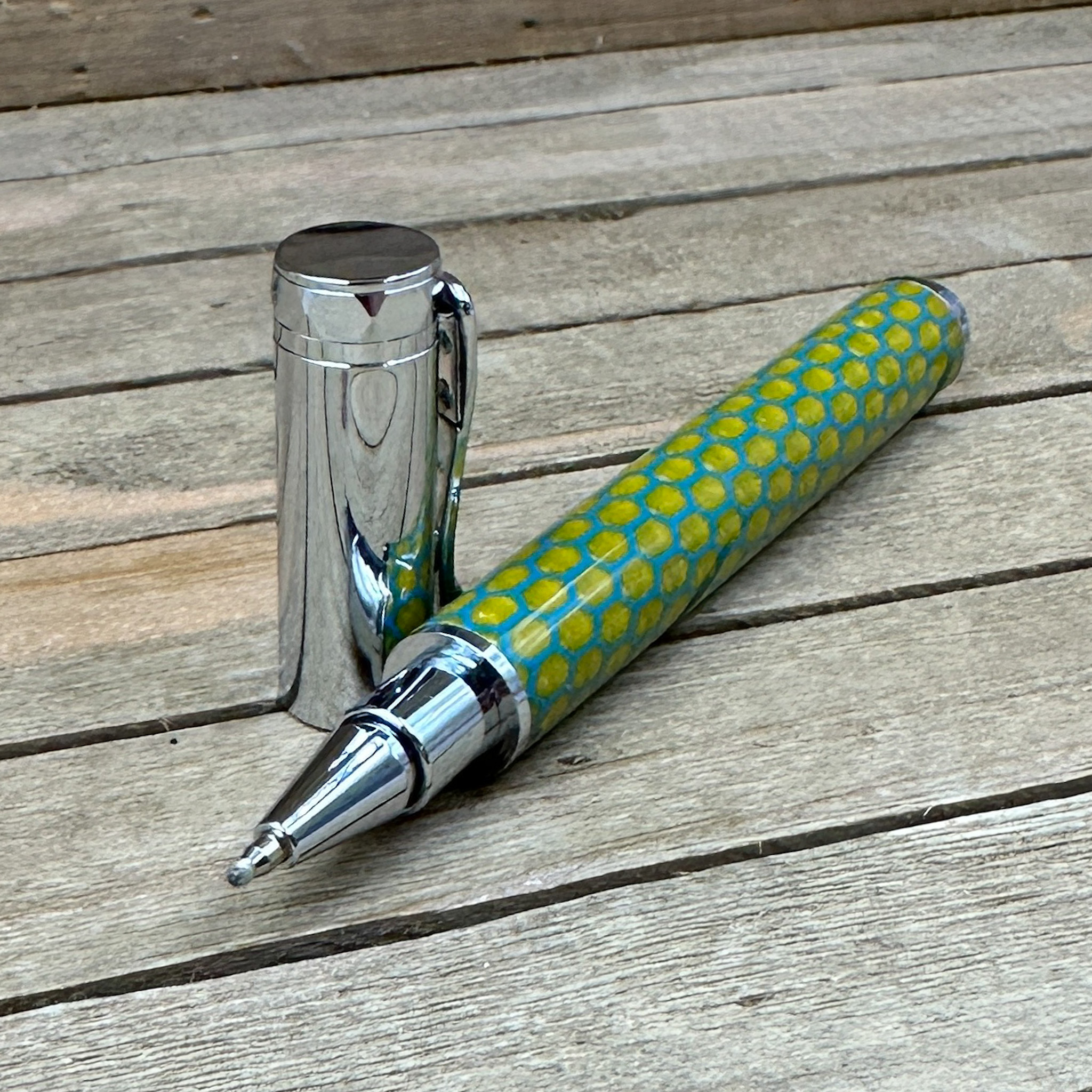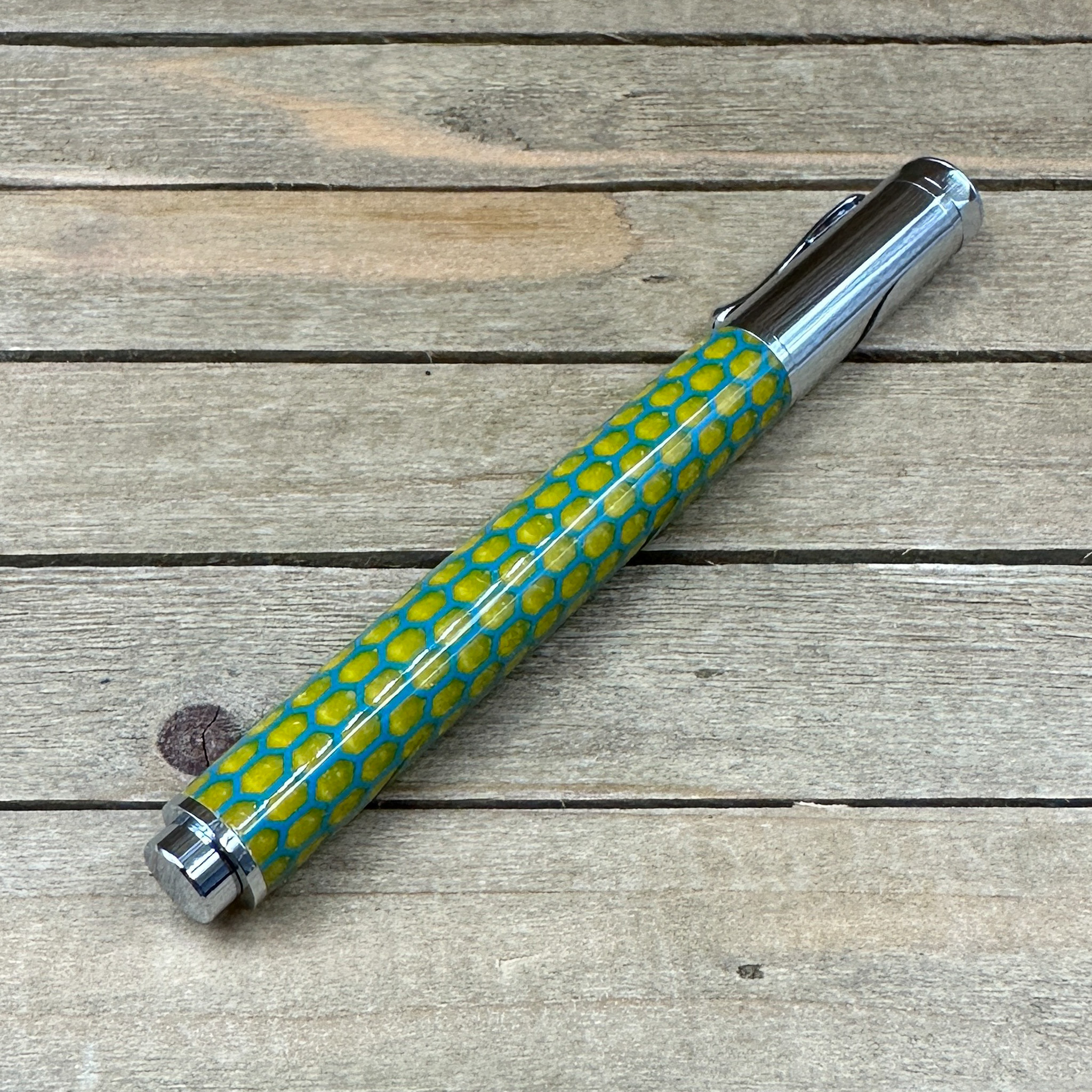 Are you looking for a perfect gift that is handcrafted or are you looking for a custom pen for yourself? Then this hand cast and 3D printed honeycomb "Zen" style rollerball pen is just for you. It is perfect for using it daily at the office or just showing off to your friends and coworkers. This beautiful pen is also a great conversation starter or can be used as a way to say thank you, happy birthday, happy anniversary, happy retirement, happy boss' day or a just because gift.