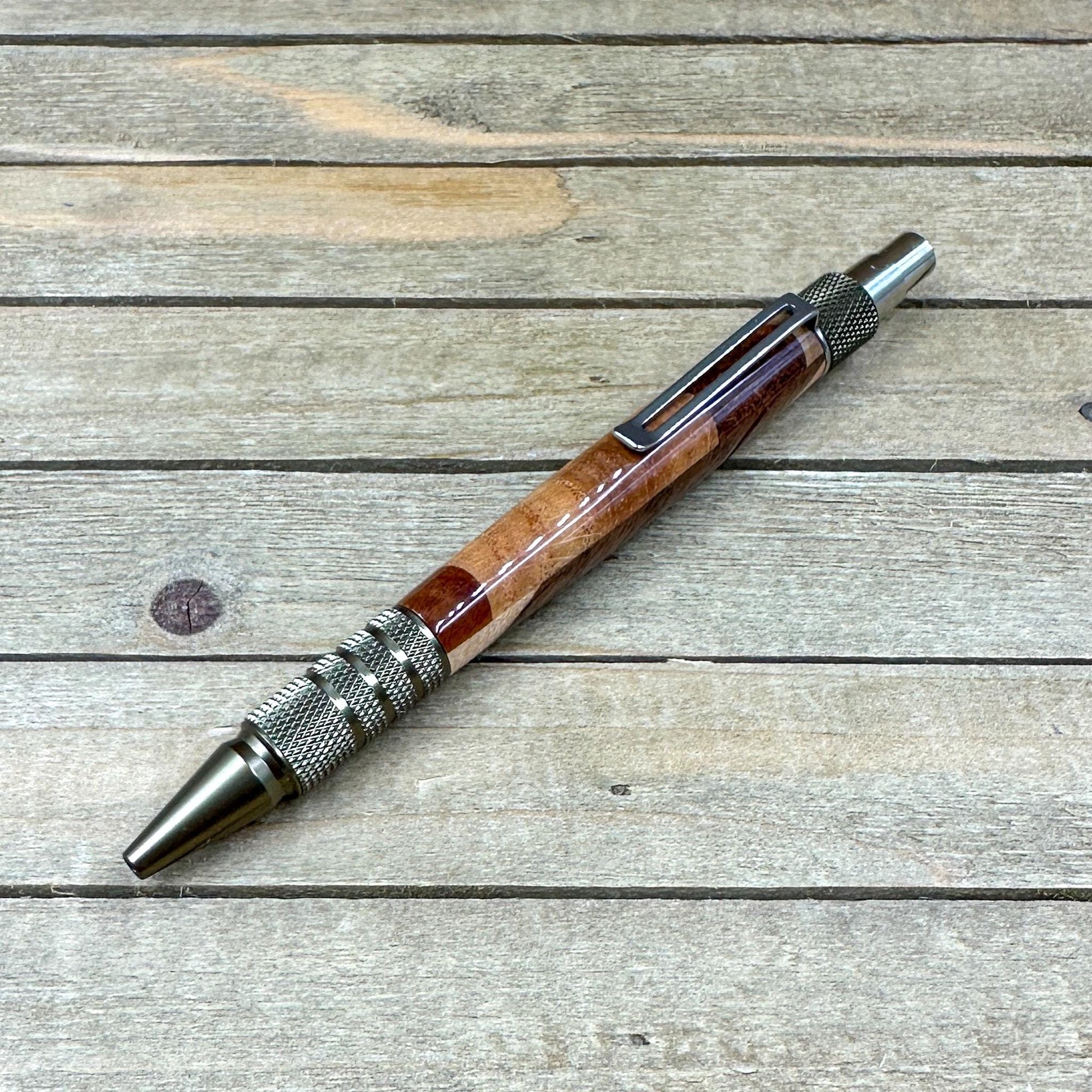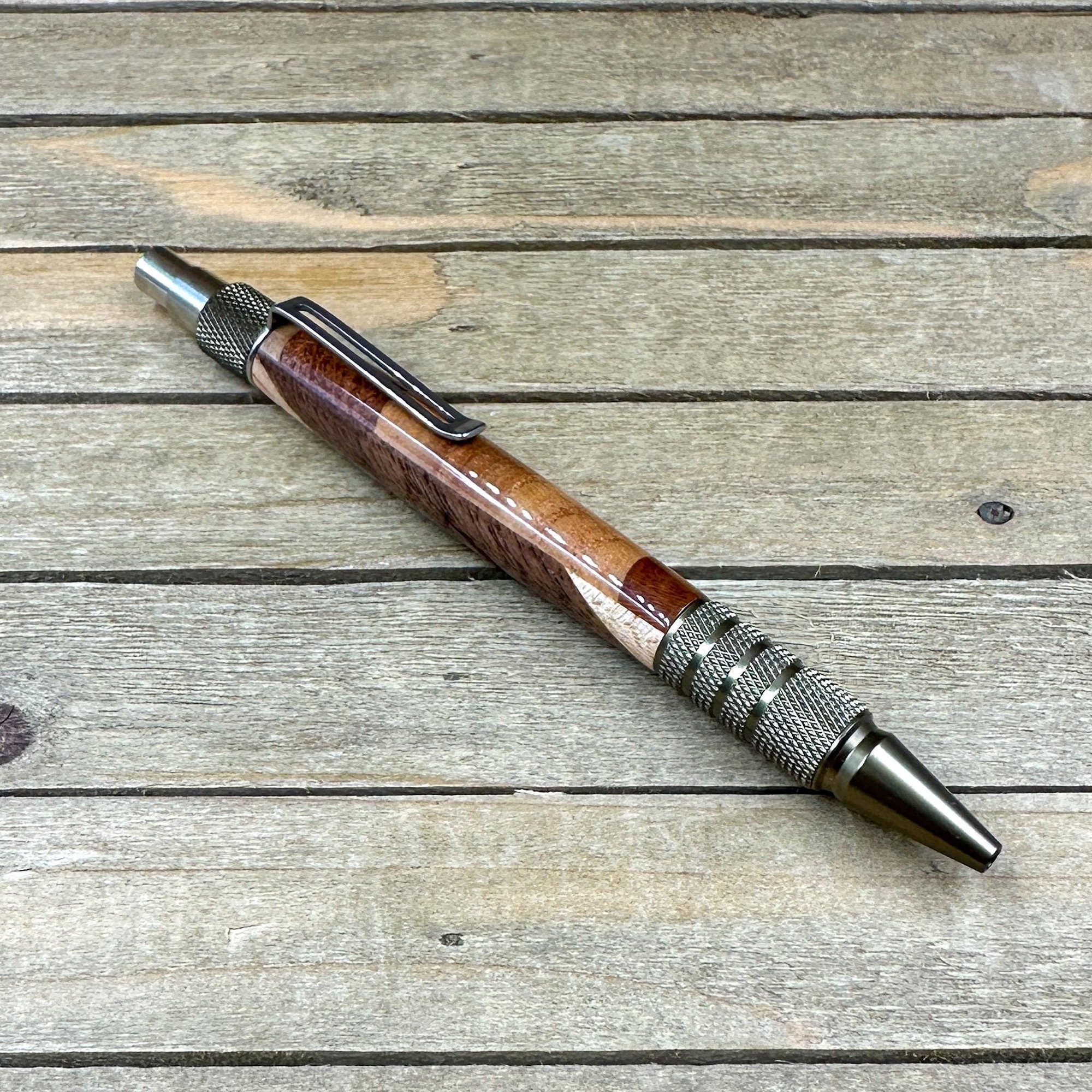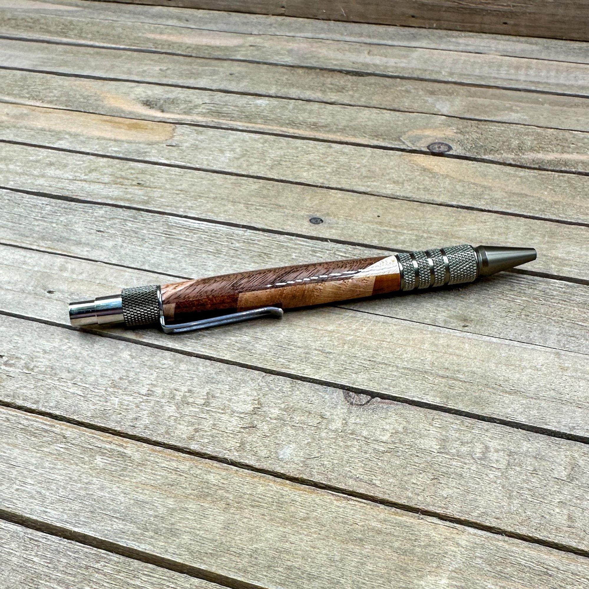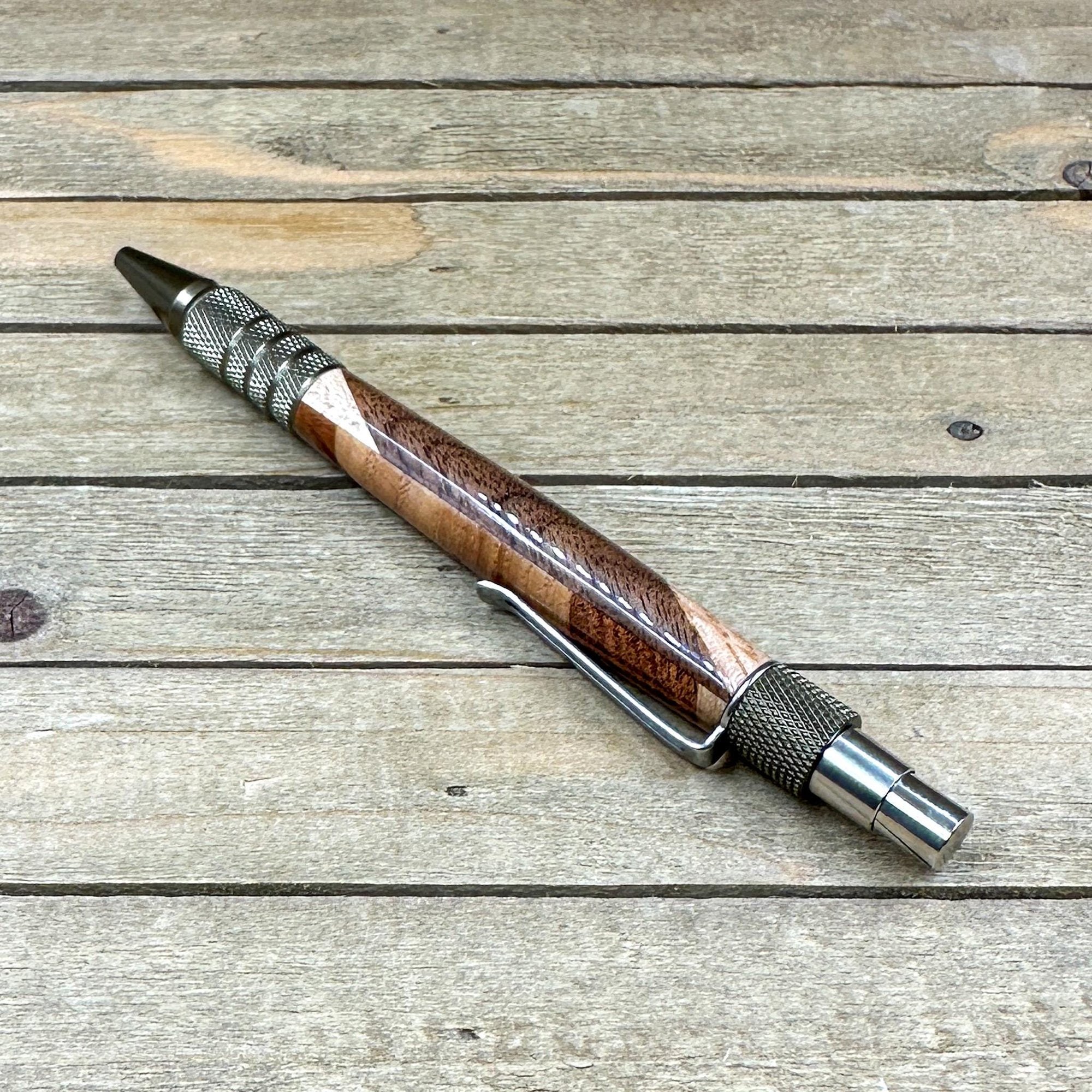 All of my EDC Duraclick style pens come with Schmidt ink refills which in my opinion provides one of the best writing experiences. You will also get your choice of black or blue ink. All my pens are refillable and refills can be bought from either myself or stationary box stores. The click mechanism is also a Schmidt SKM-88 mechanism which provides a smooth click operation that will last a lifetime. Your pen will also come with a gift box ready to give to someone or for yourself to store your newly acquired ballpoint pen.