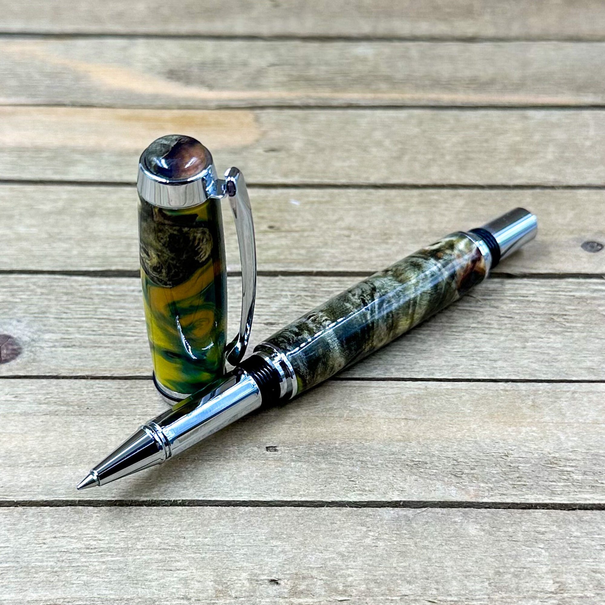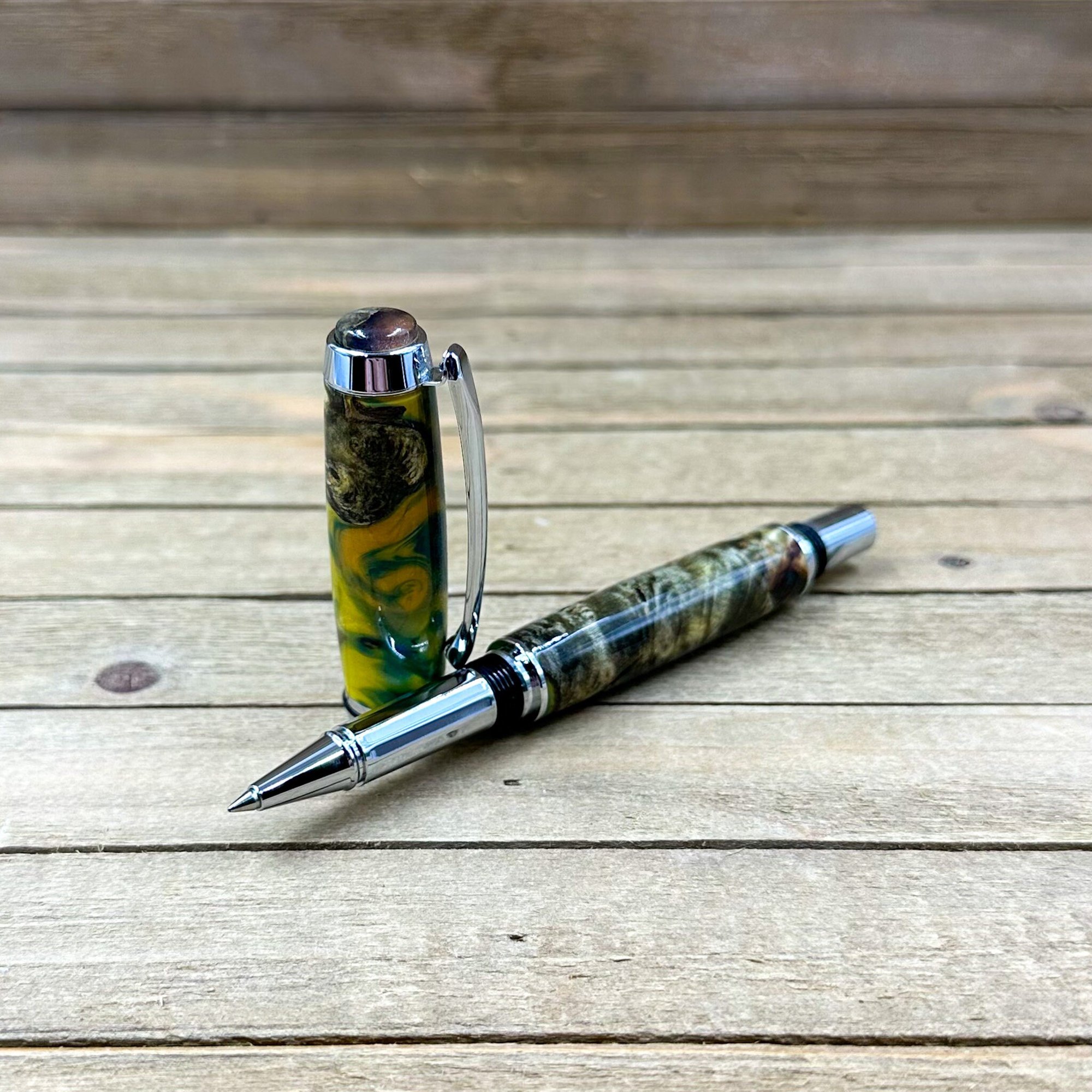 All of my rollerball style pens come with Schmidt ink refills which in my opinion provides one of the best writing experiences. You will also get your choice of black or blue ink and medium or fine point. All of my rollerball pens will also accept the popular Pilot G2 refill as well. All my pens are refillable and refills can be bought from either myself or stationary box stores. Your pen will also come with a gift box ready to give to someone or for yourself to store your newly acquired rollerball pen. to someone or for yourself to store your newly acquired ballpoint pen.