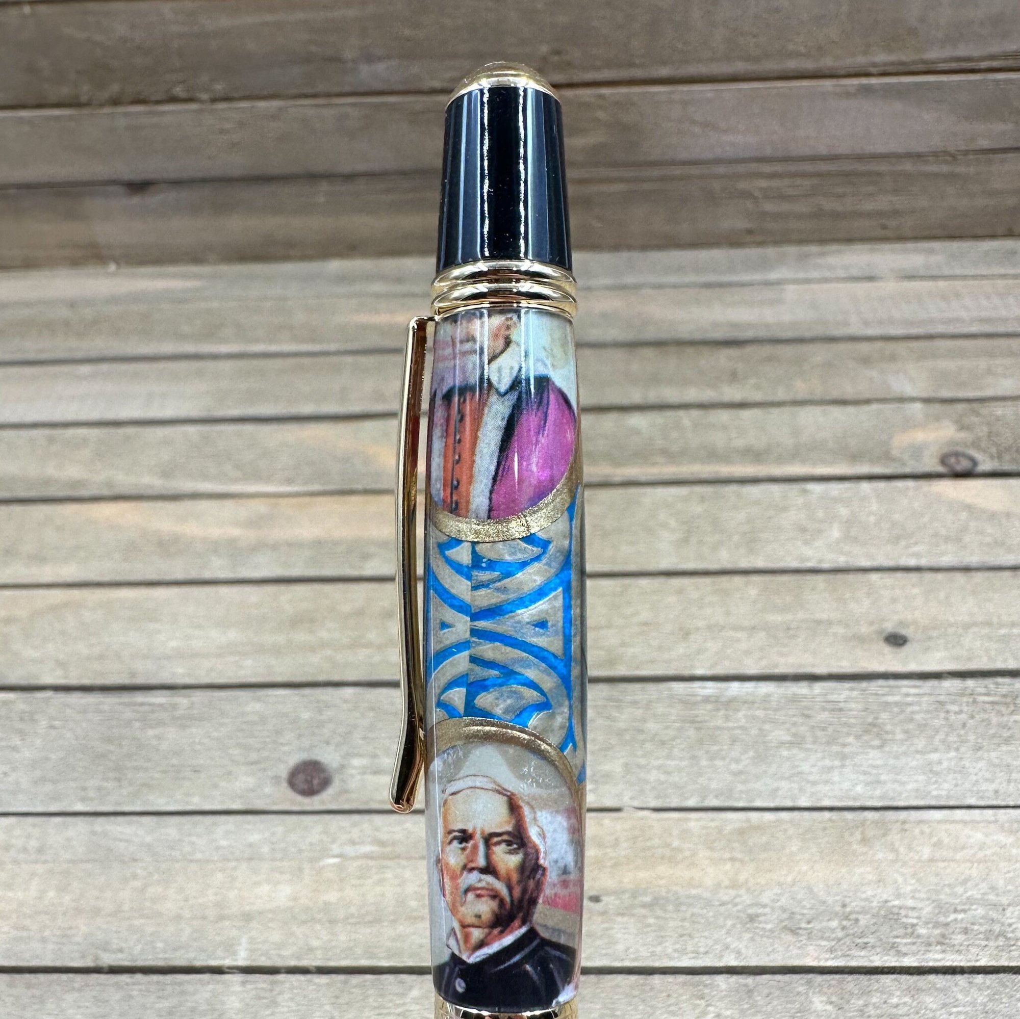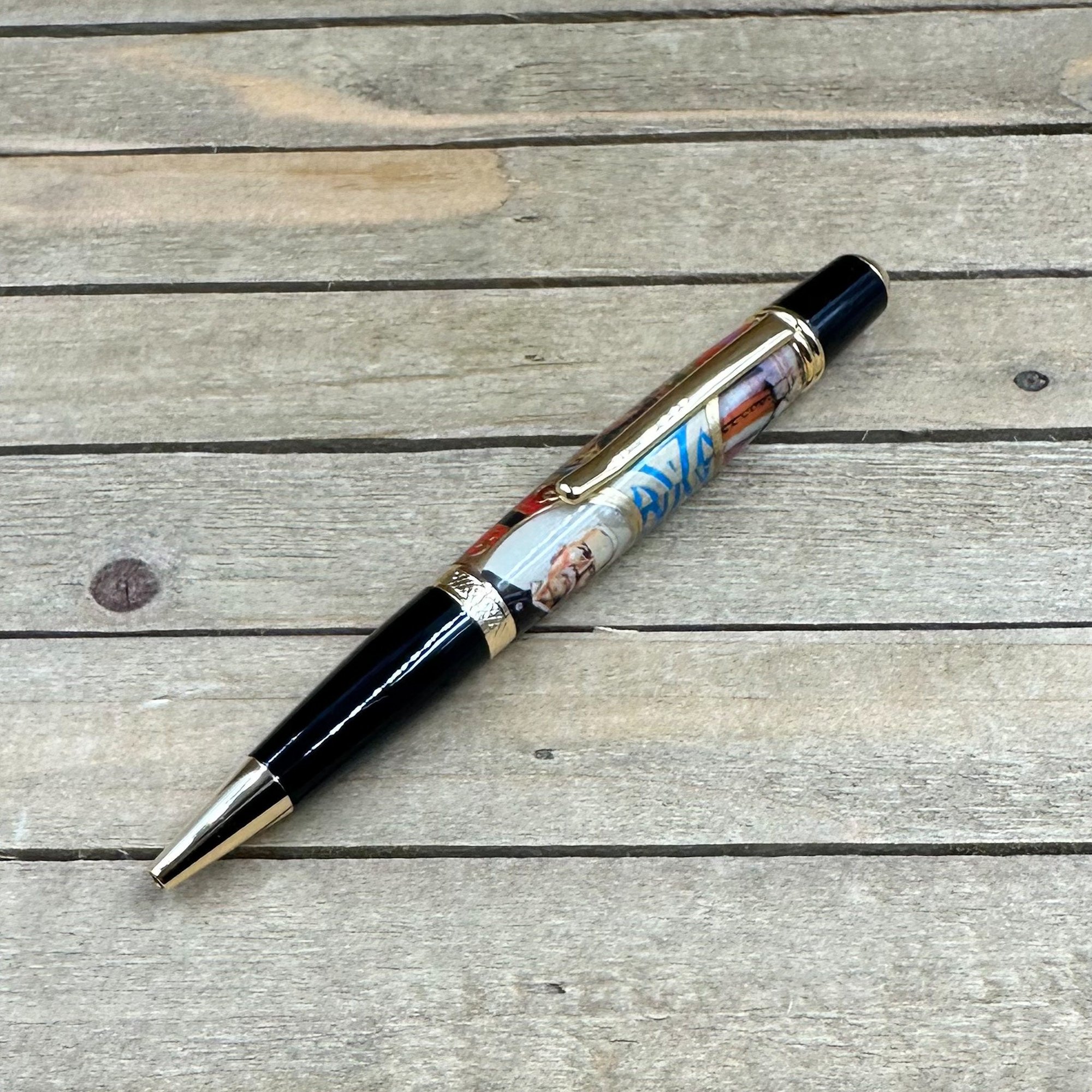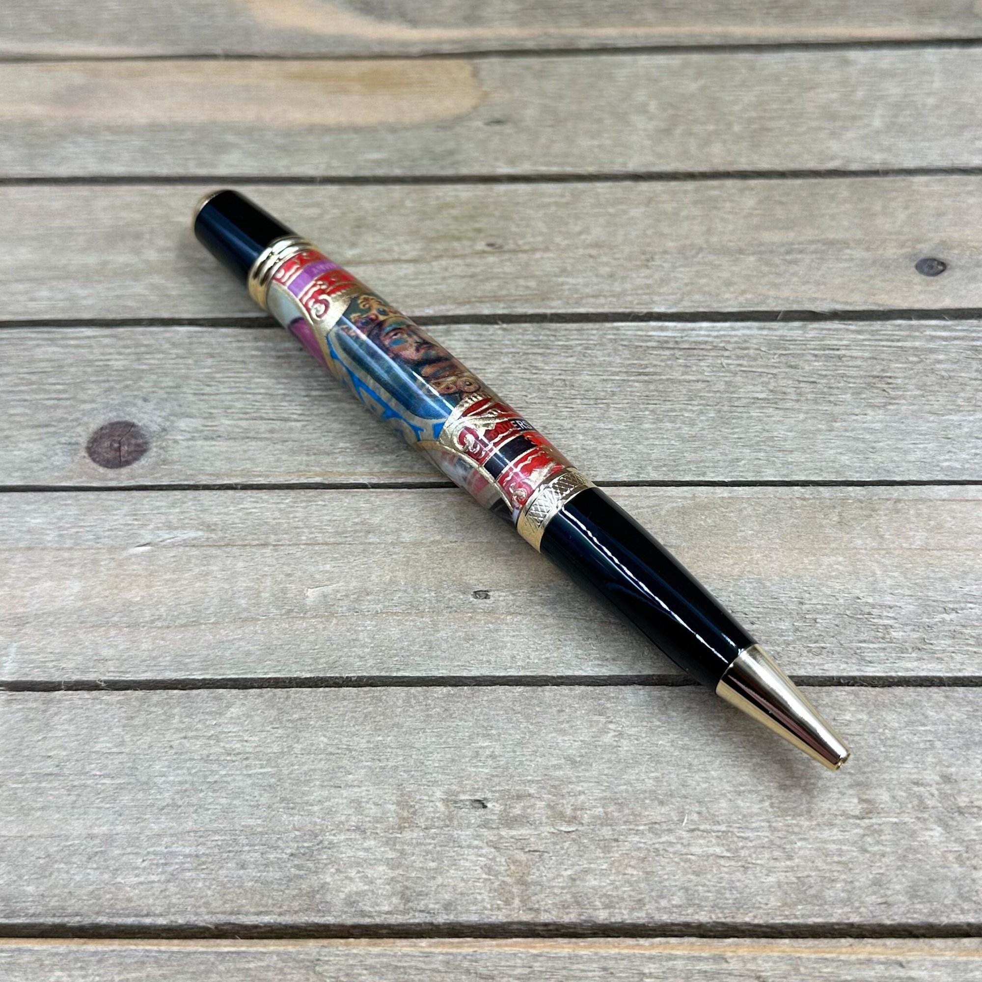 Cigar Label Ballpoint Pen, Handmade Resin Twist Pen, 24k Gold Accents