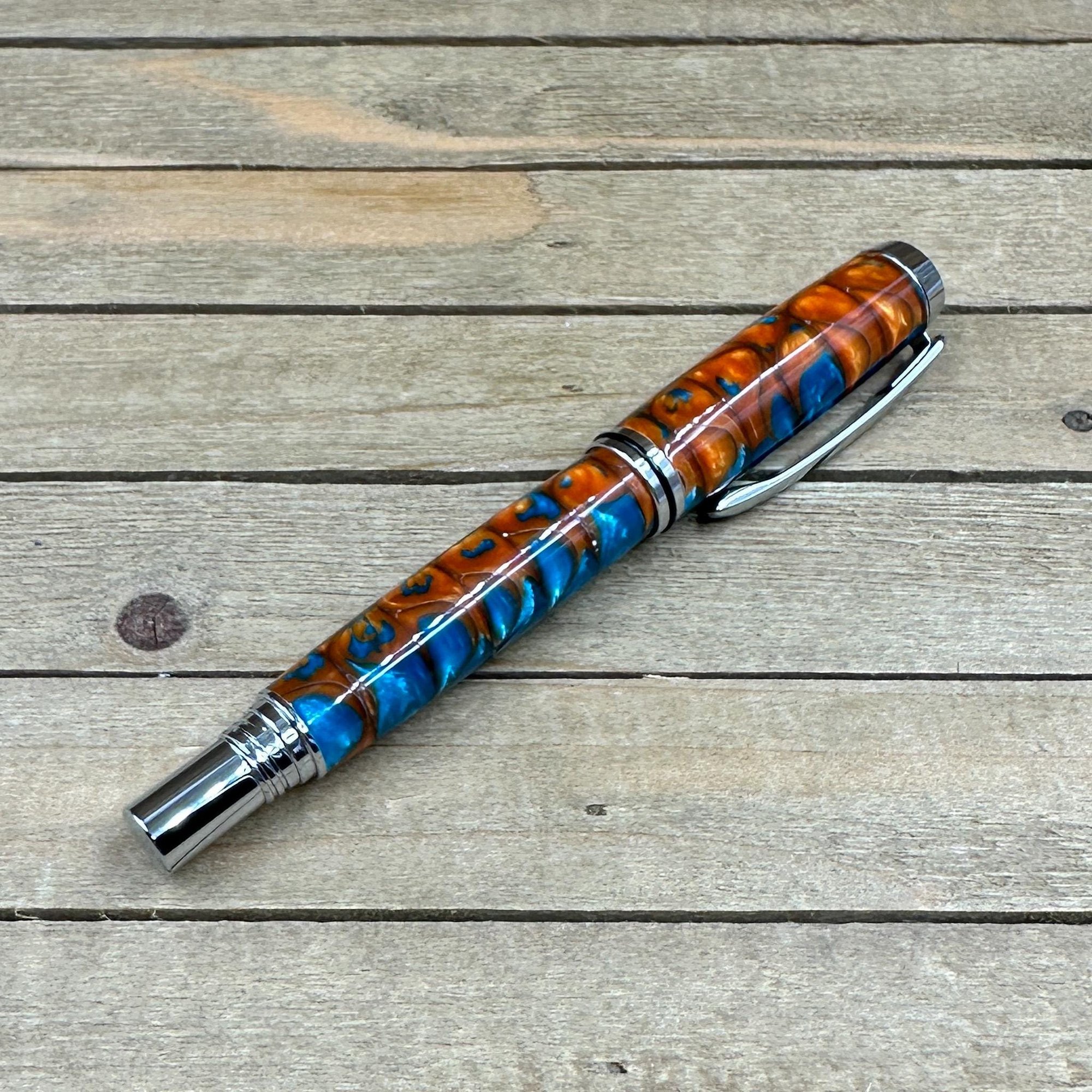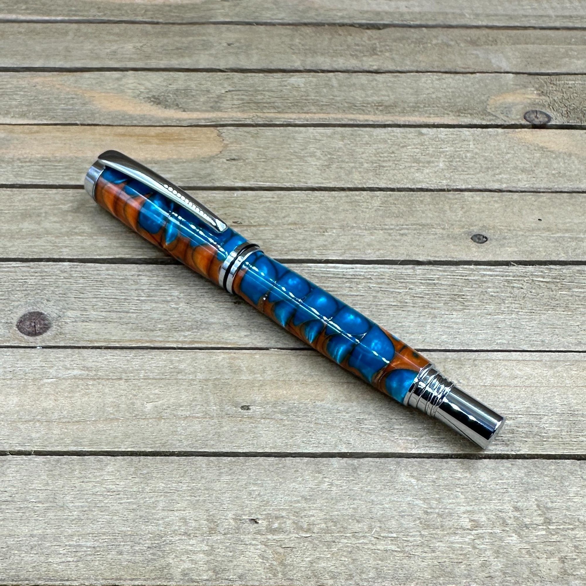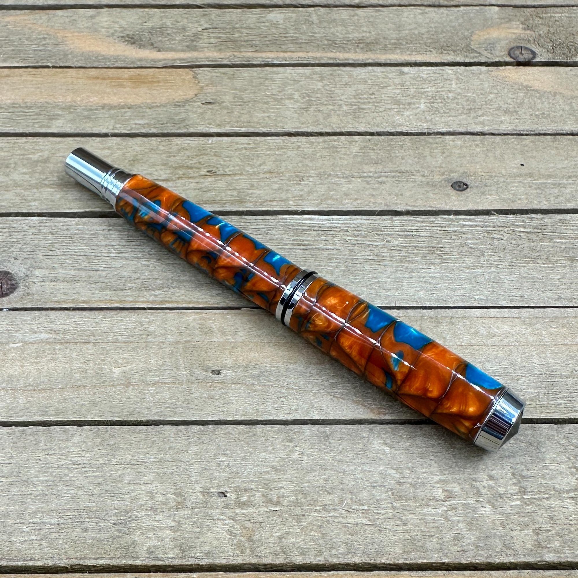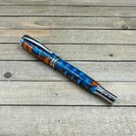 -hand turned copper and turquoise acrylester resin