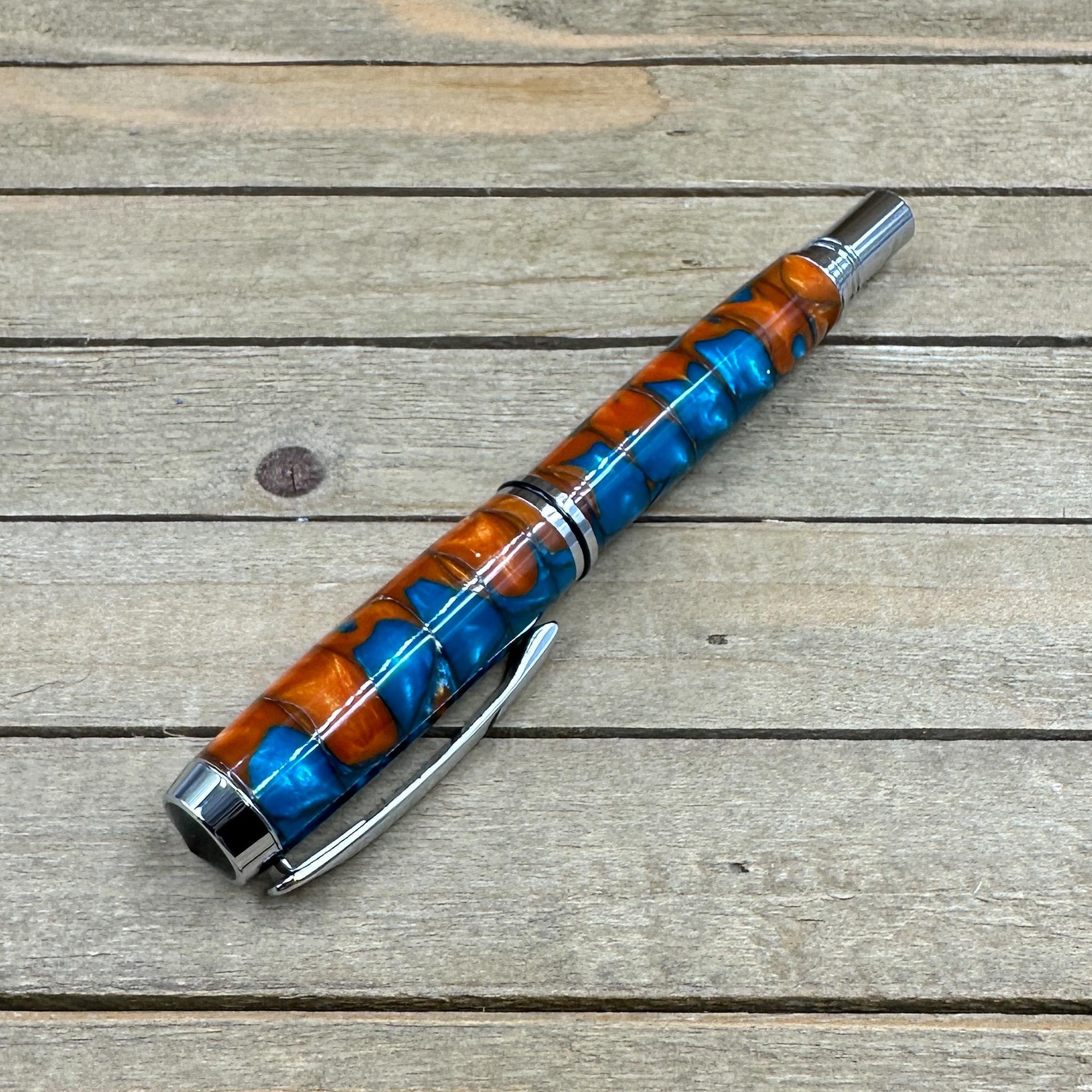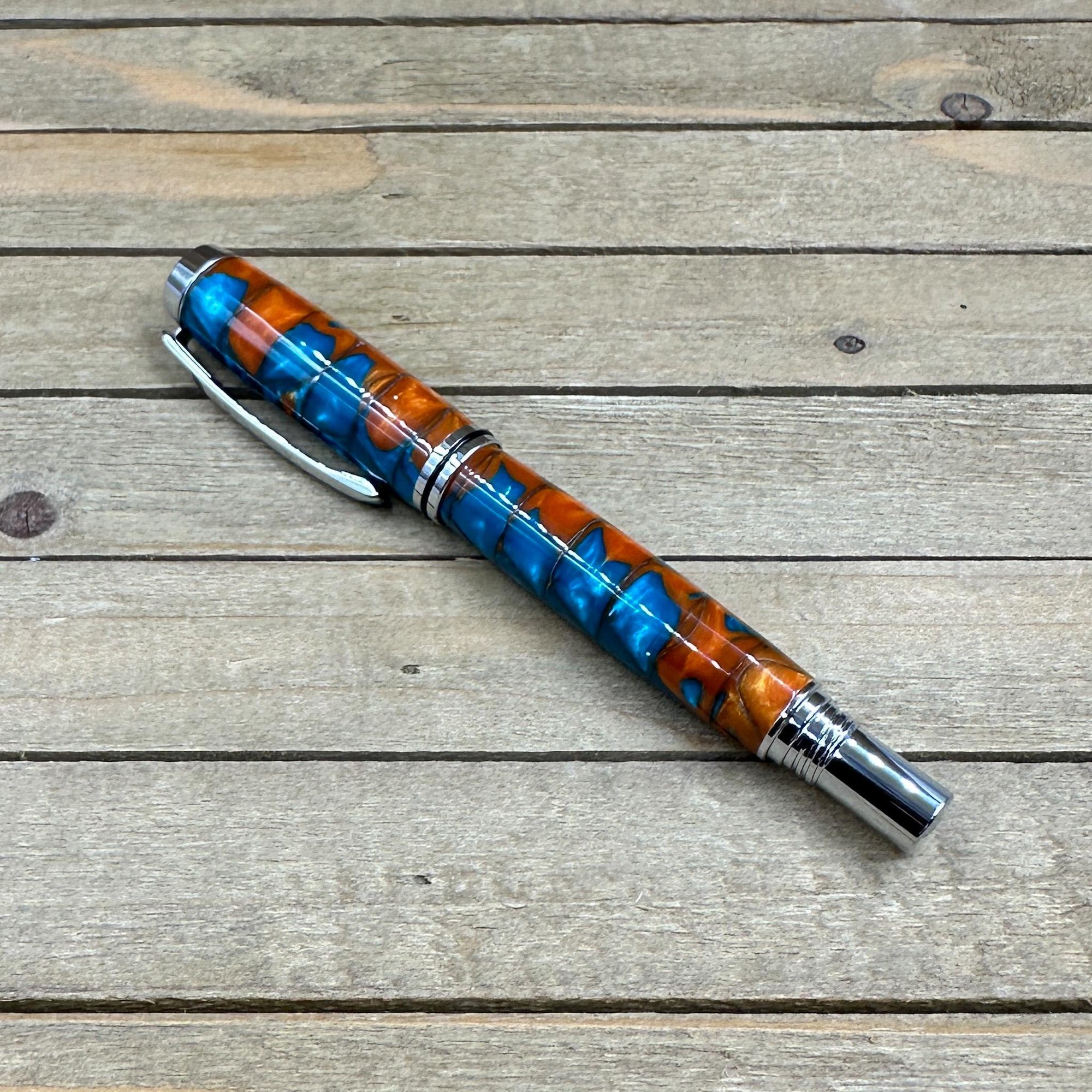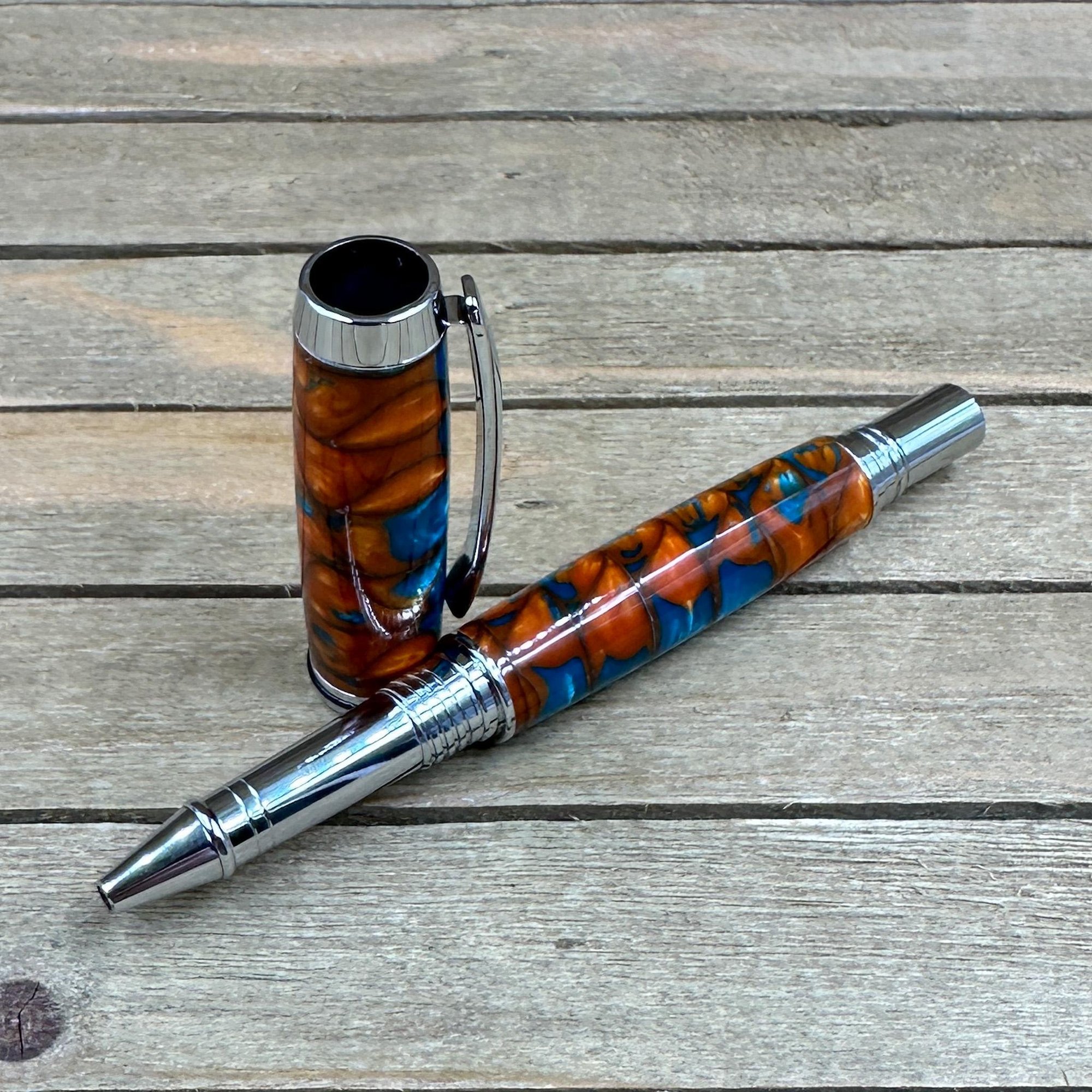 -hand turned copper and turquoise acrylester resin