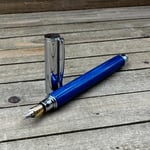 Hand Turned Blue Resin Fountain Pen, Gilded Steel Nib, with Converter