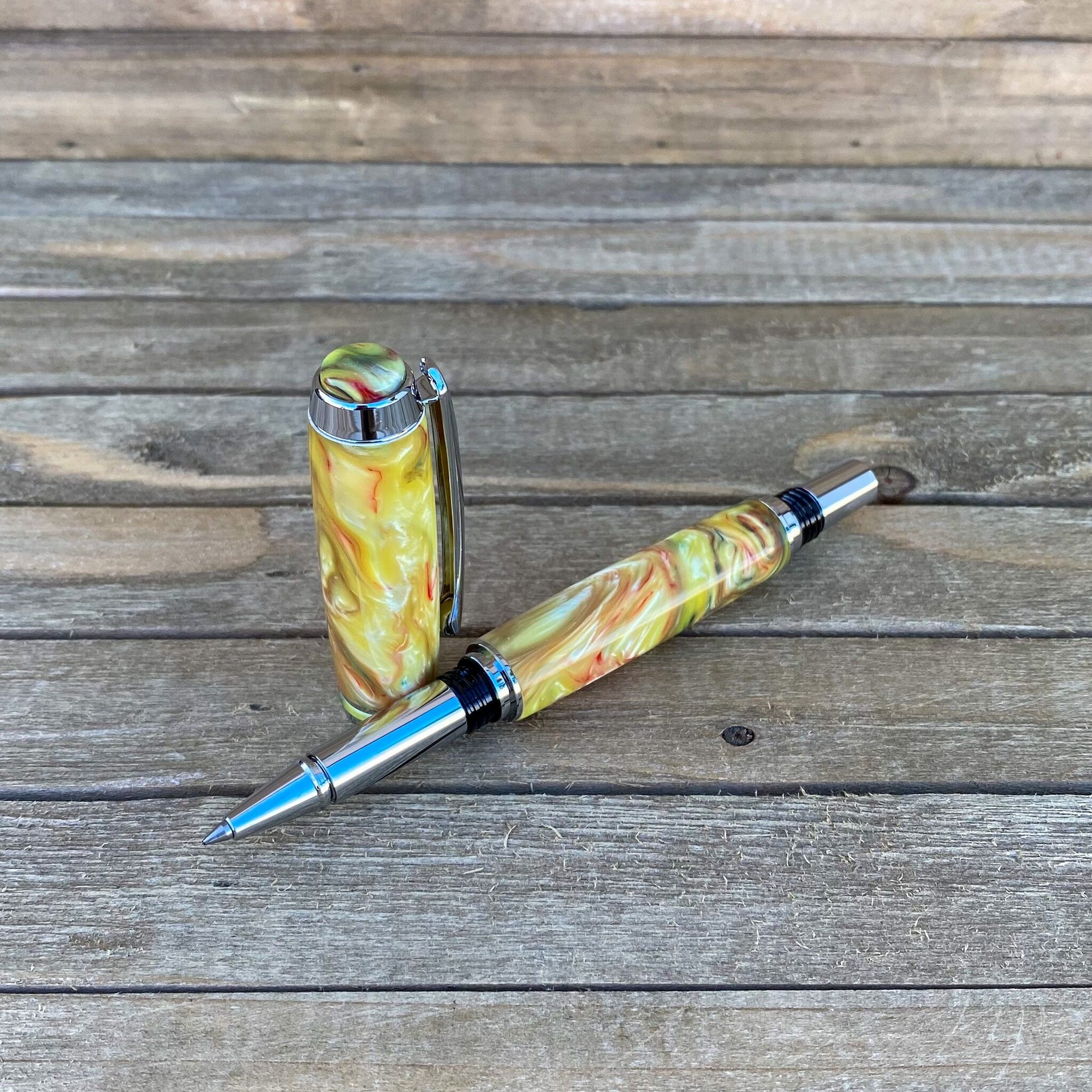 Handcrafted Alumilite Acrylic Rollerball Pen in Sun Dance Swirl Resin