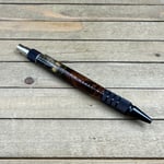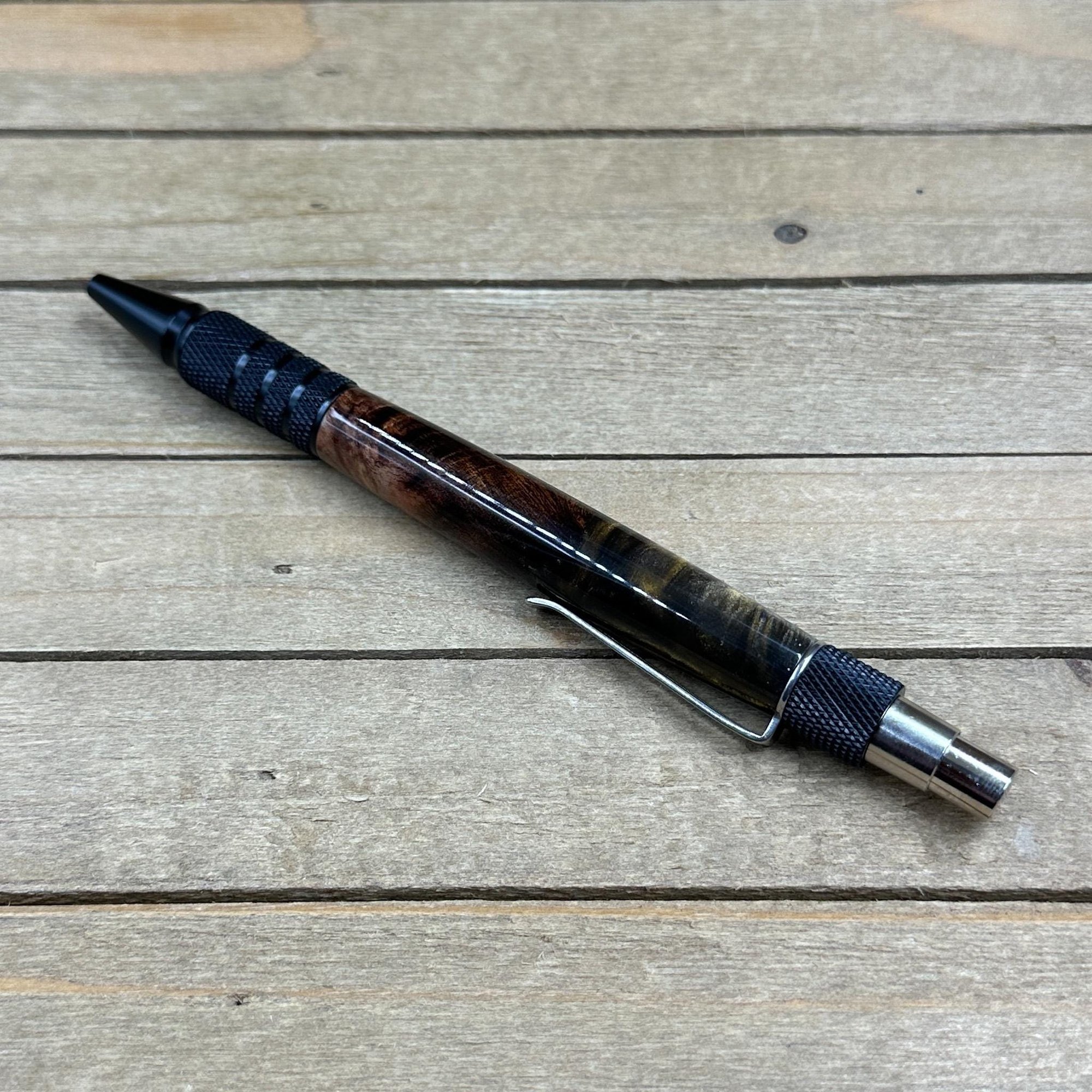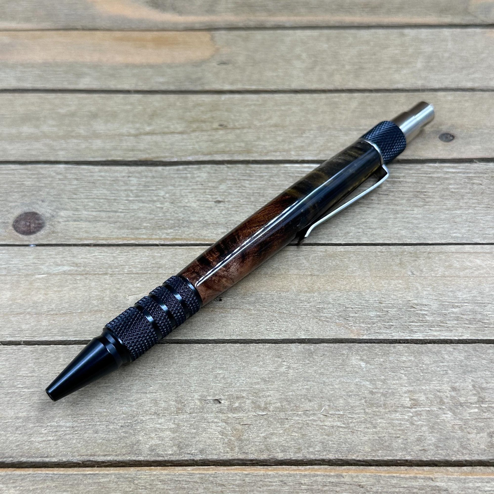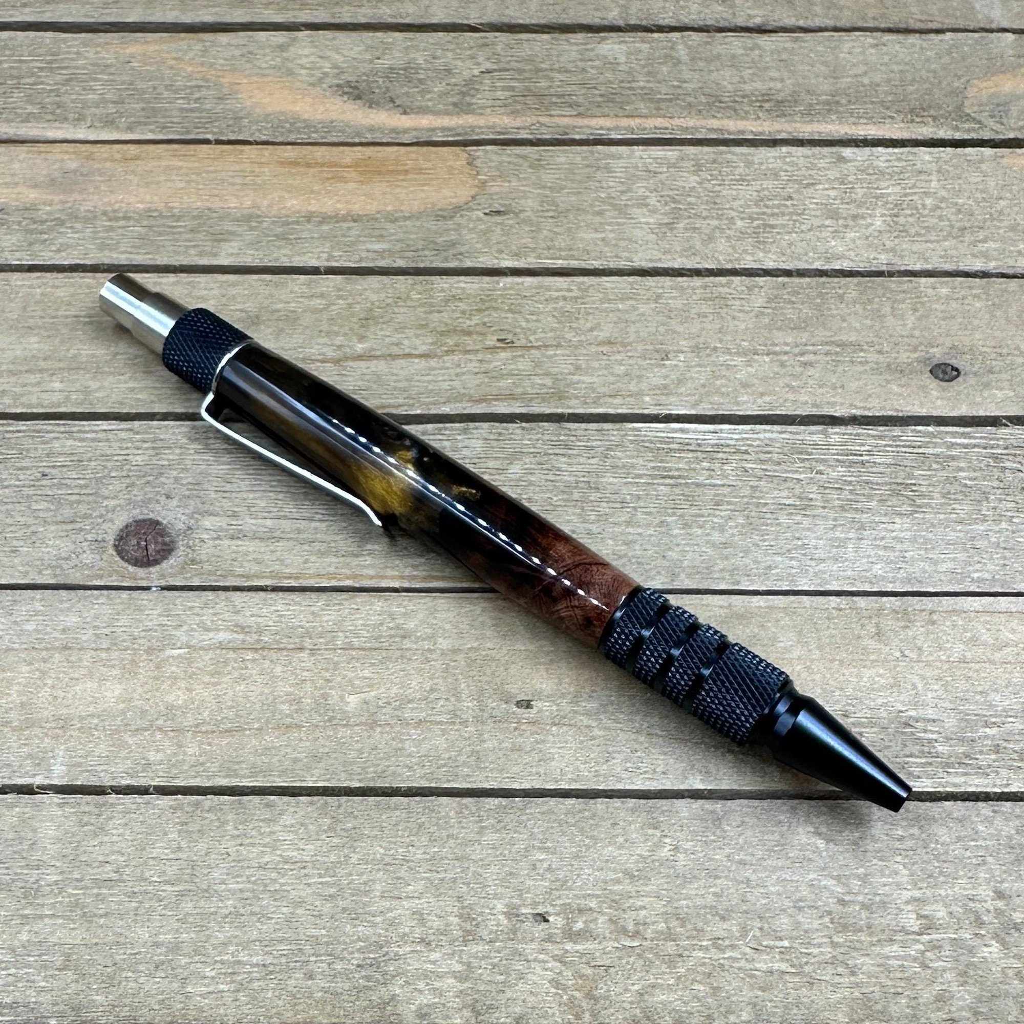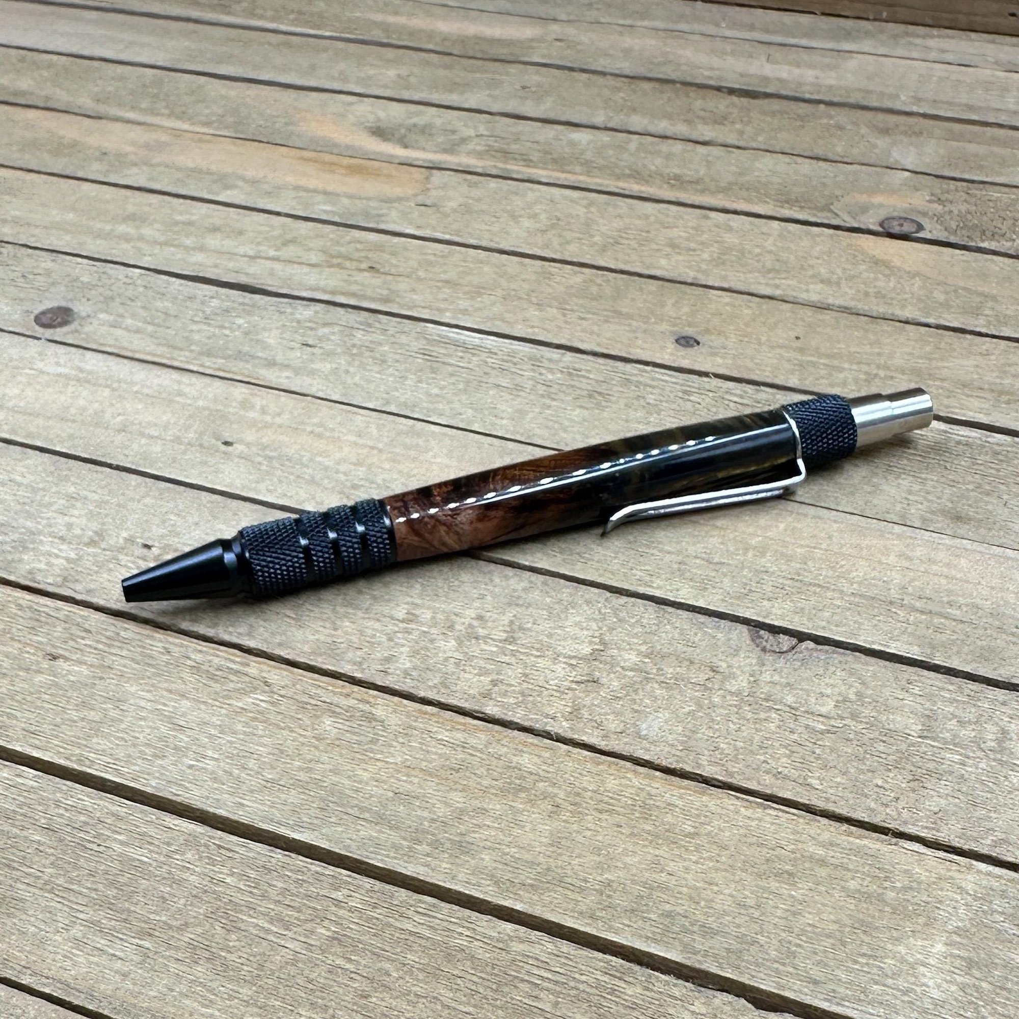Handcrafted Mesquite Wood Ballpoint Click Pen with Black and Gold Resin