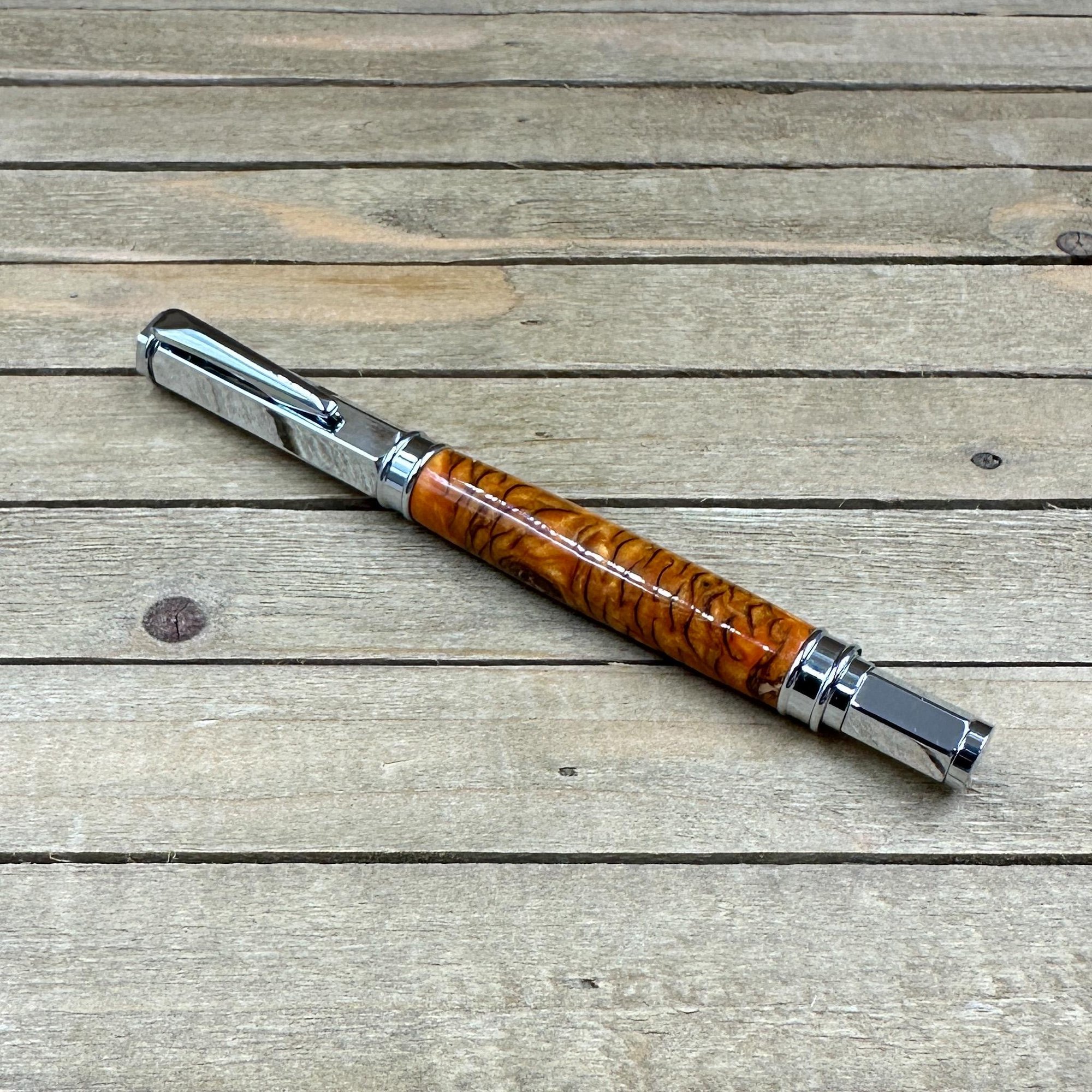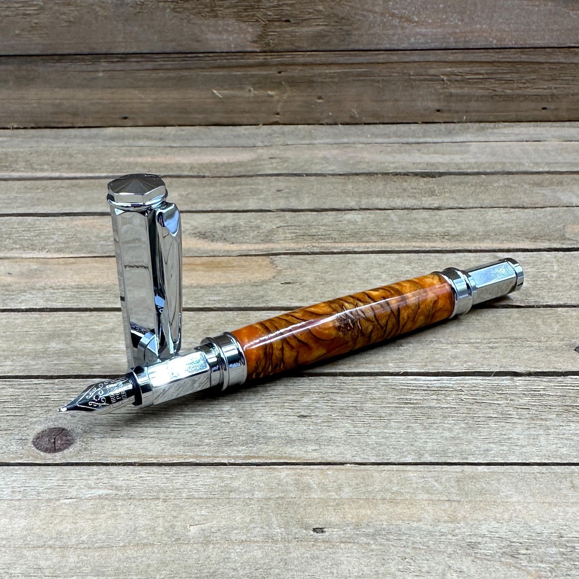 This "Magnetic Vertex" style fountain pen was handcrafted by Michael in his woodshop and has the following features: