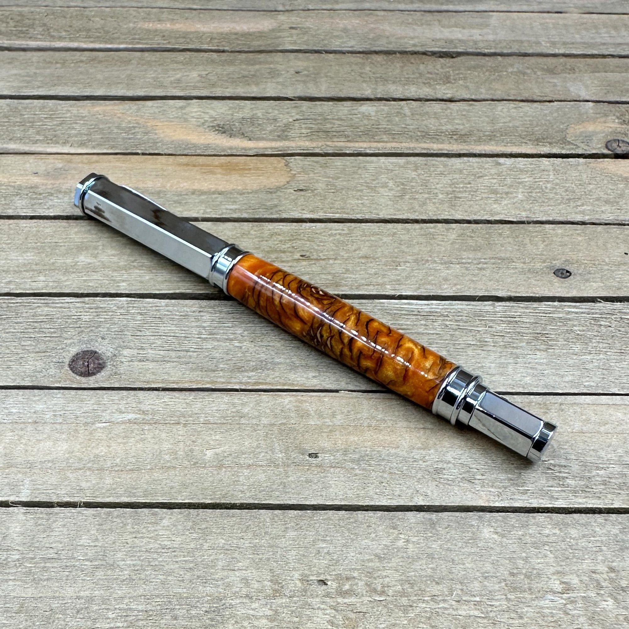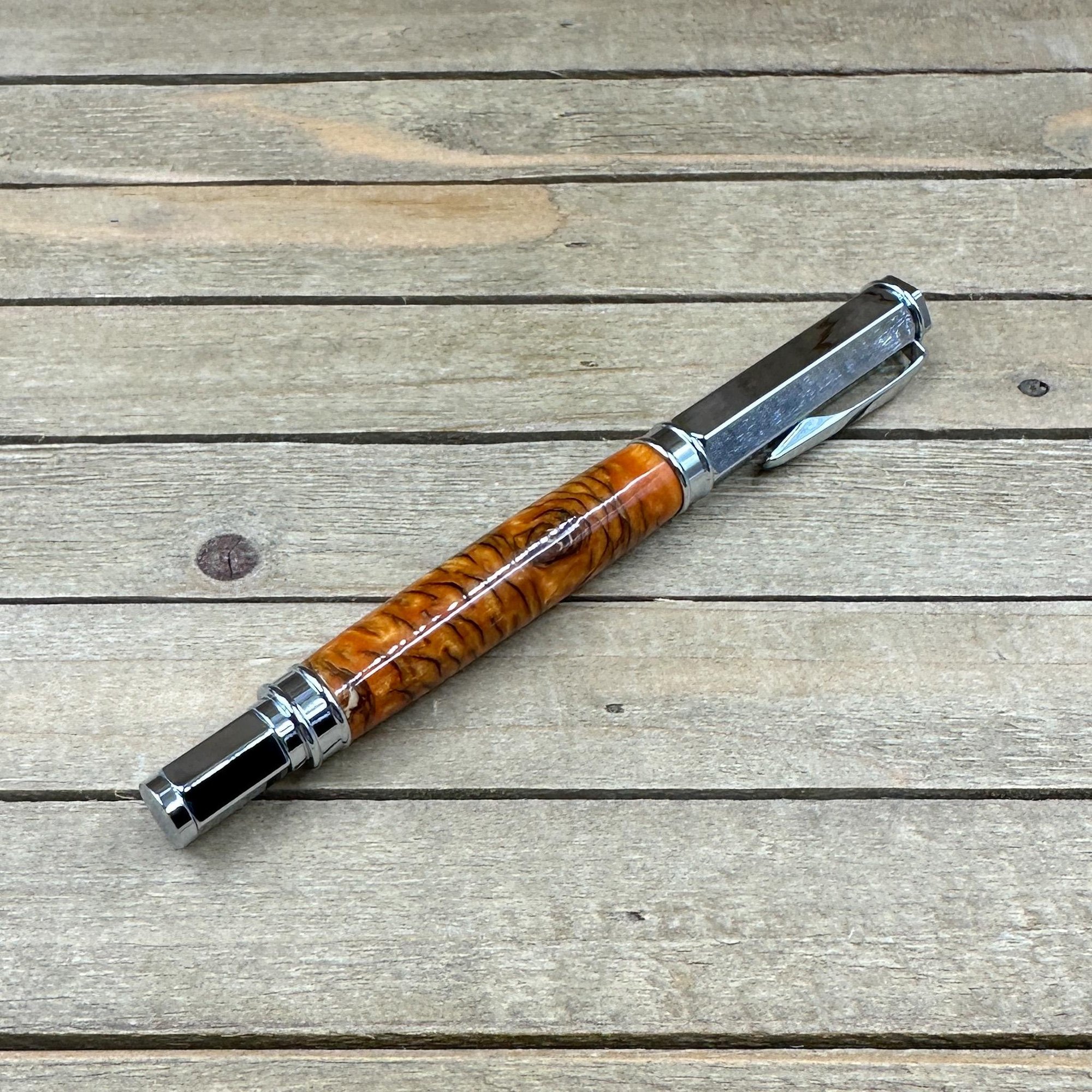 Handcrafted Orange Resin Pinecone Fountain Pen with Chrome Magnetic Cap