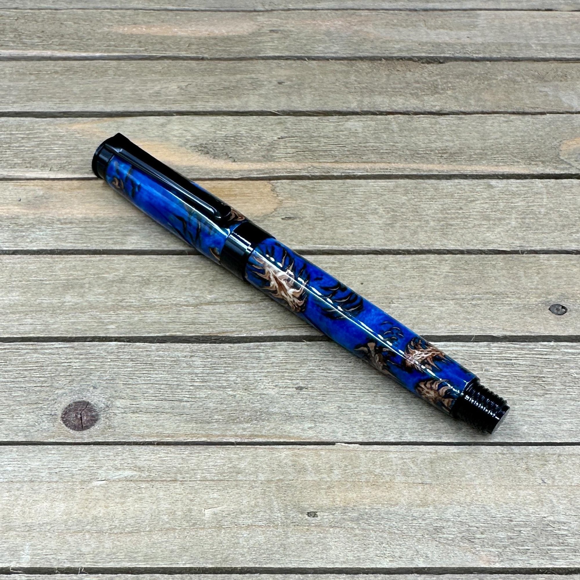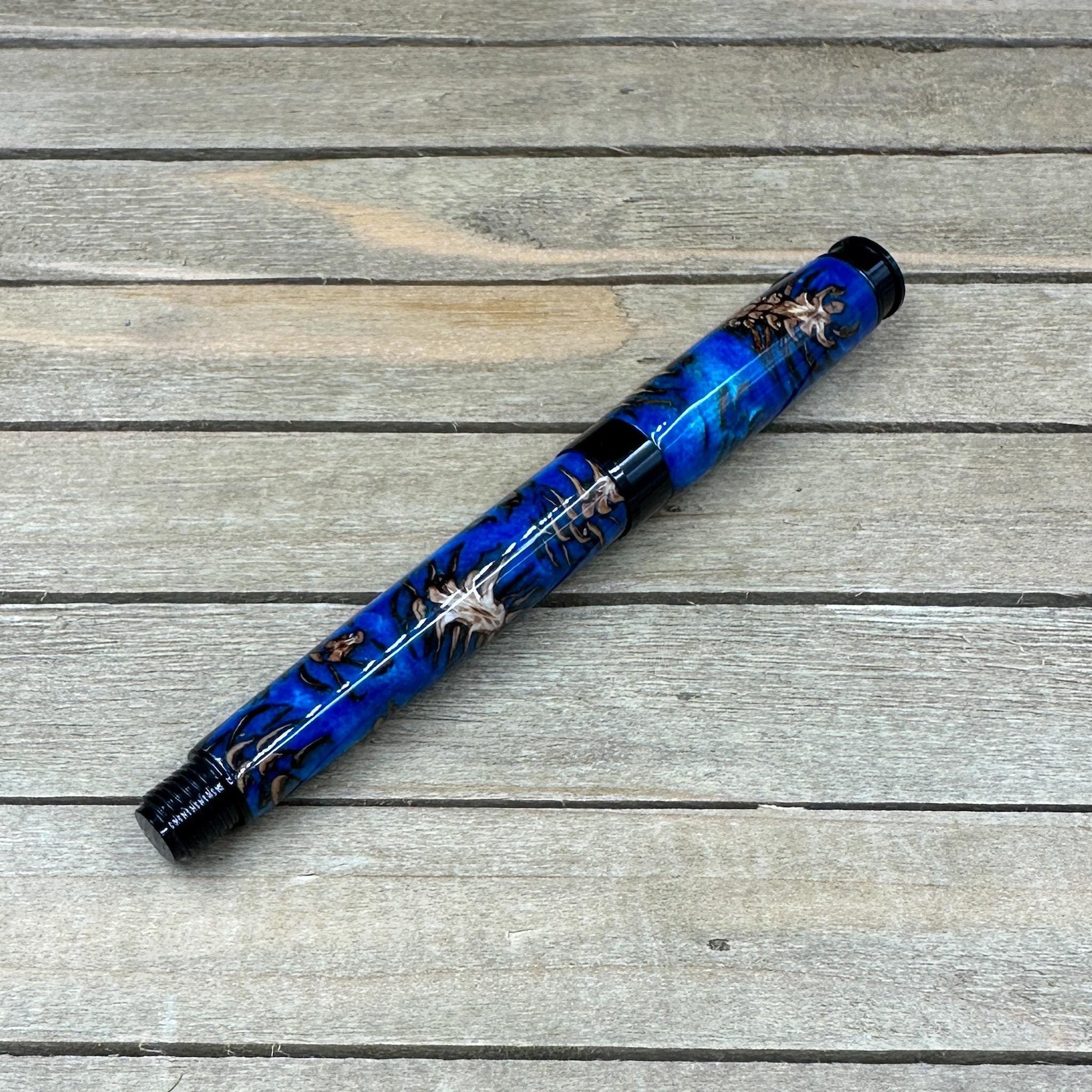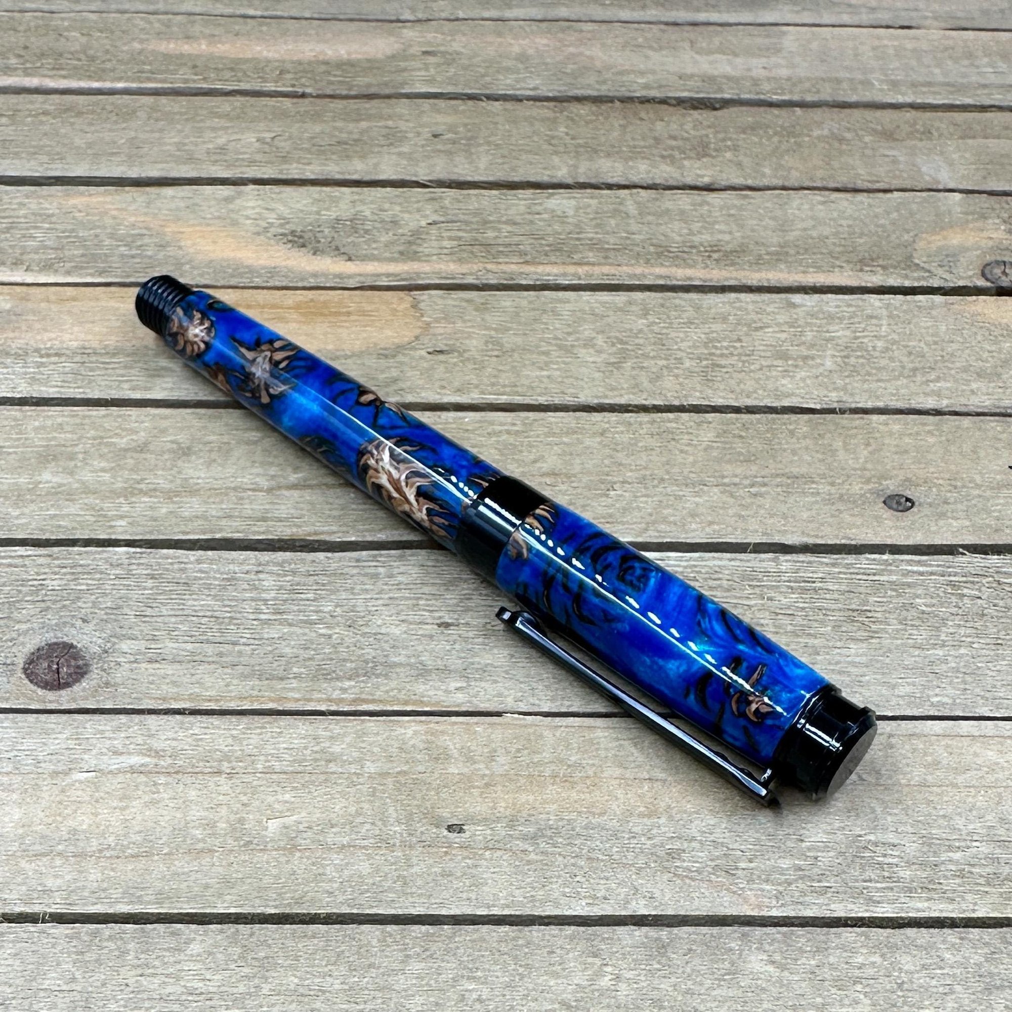 Handcrafted Pine Cone Rollerball Pen in Blue Resin