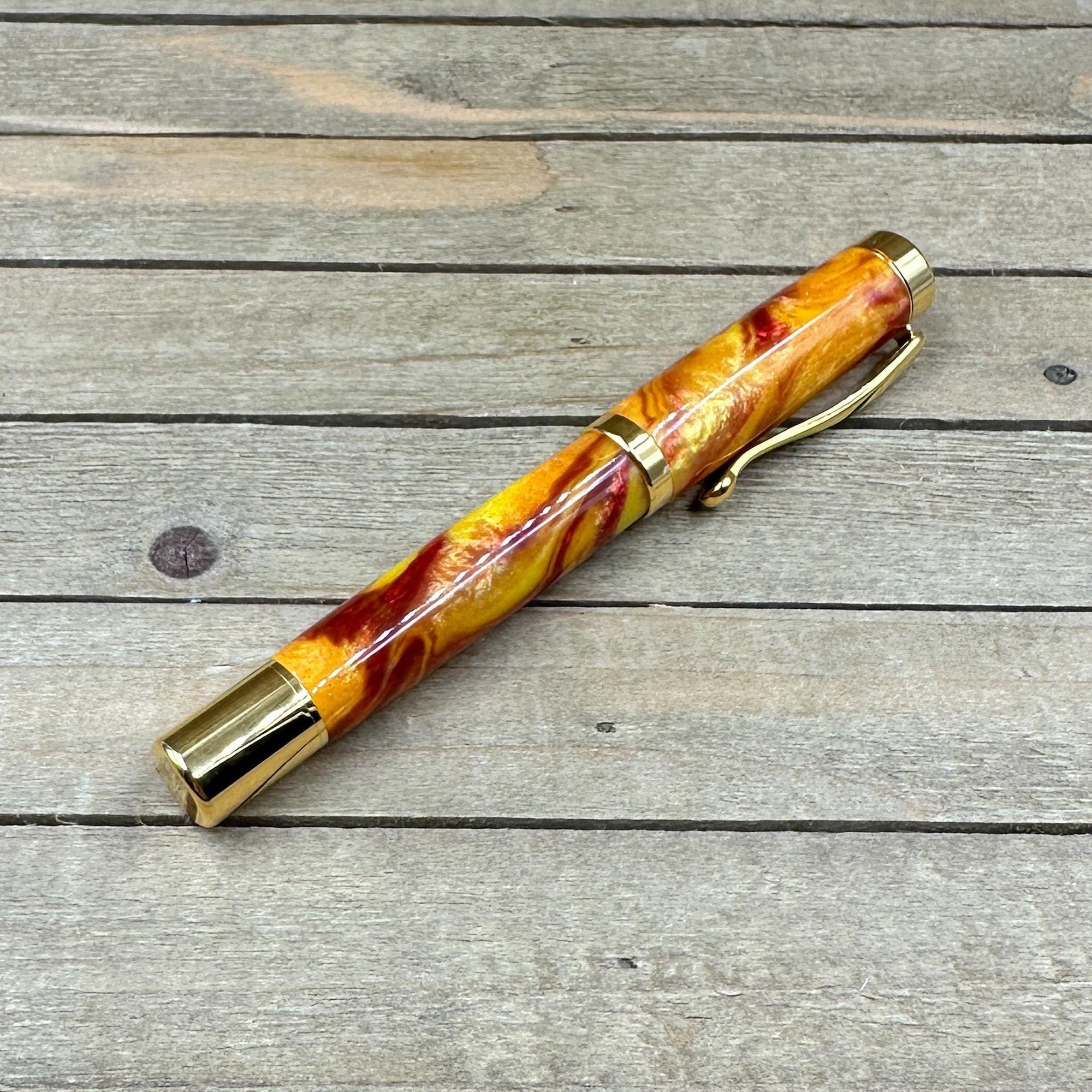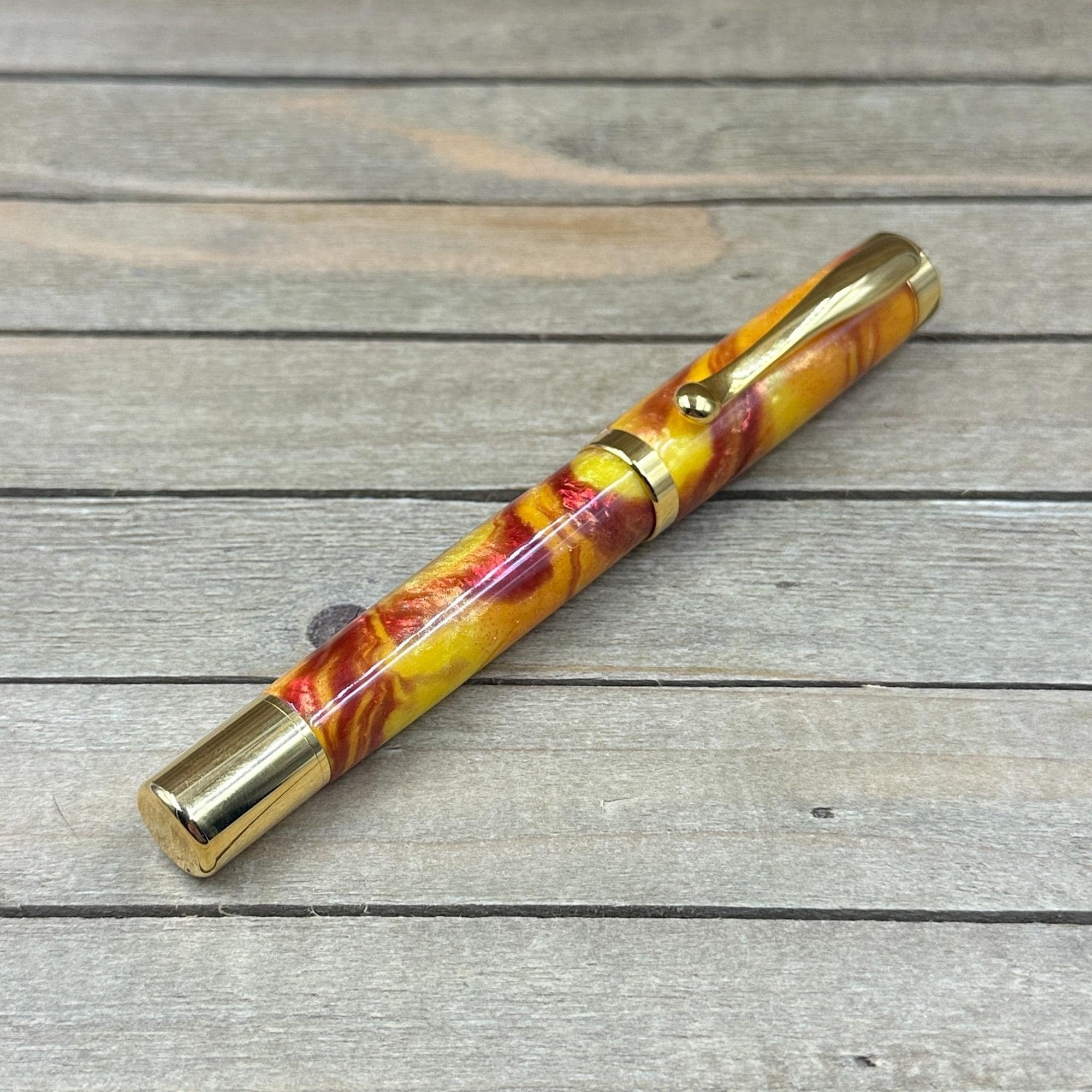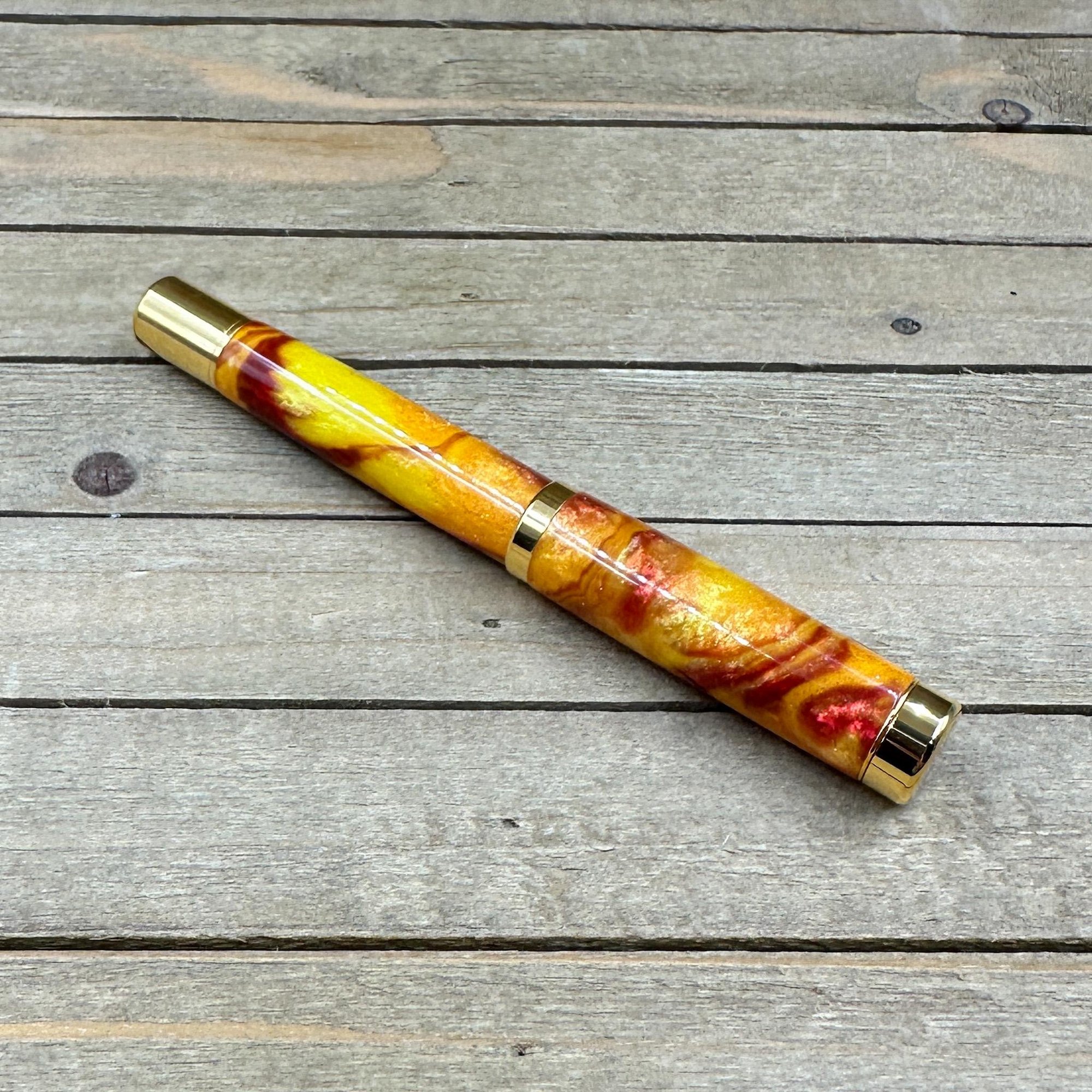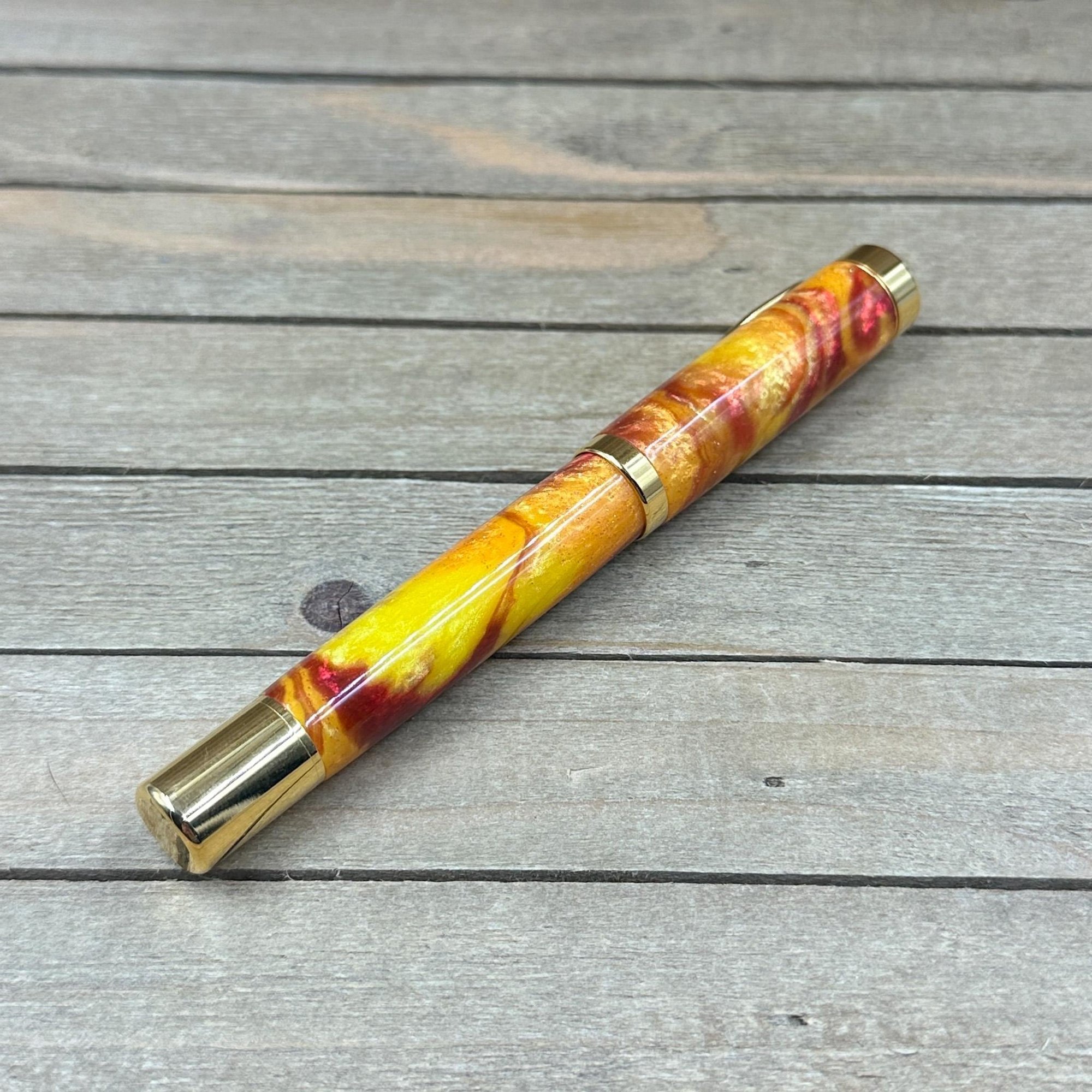 Handcrafted Rollerball Pen in Yellow, Red, and Orange Resin