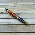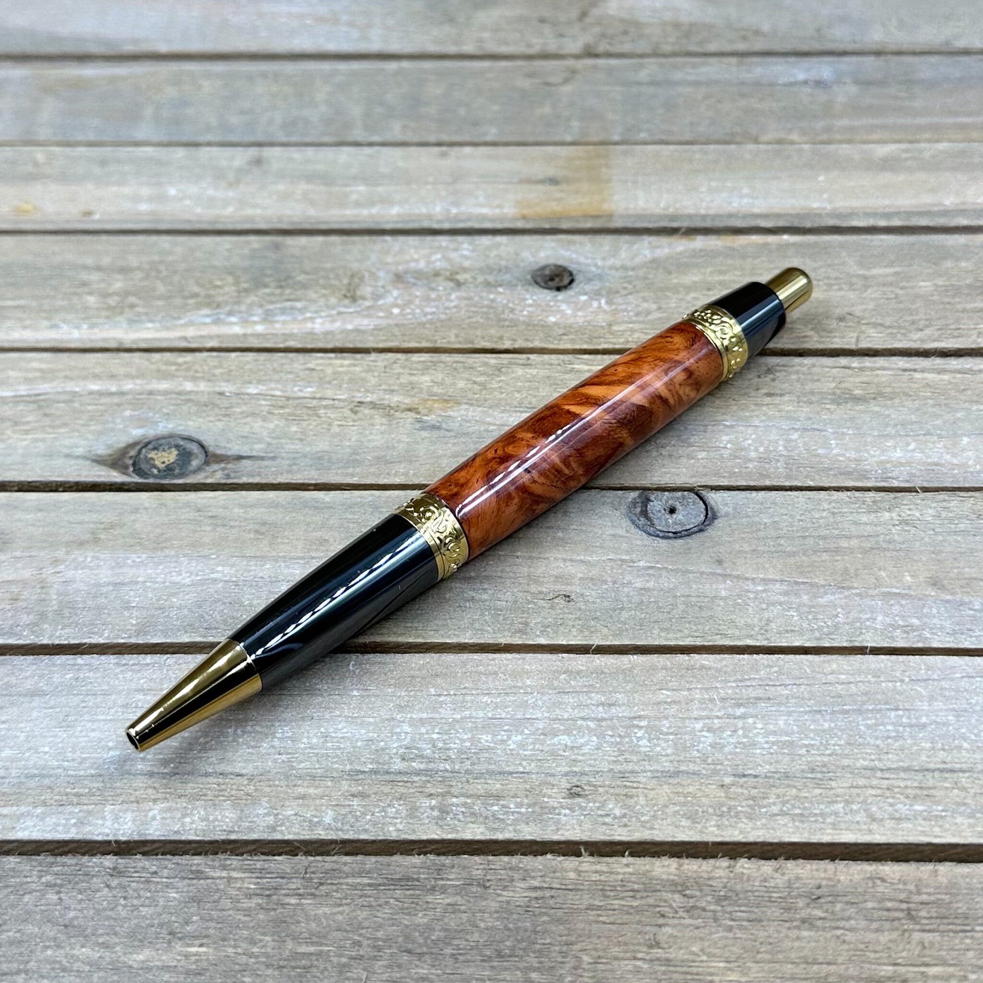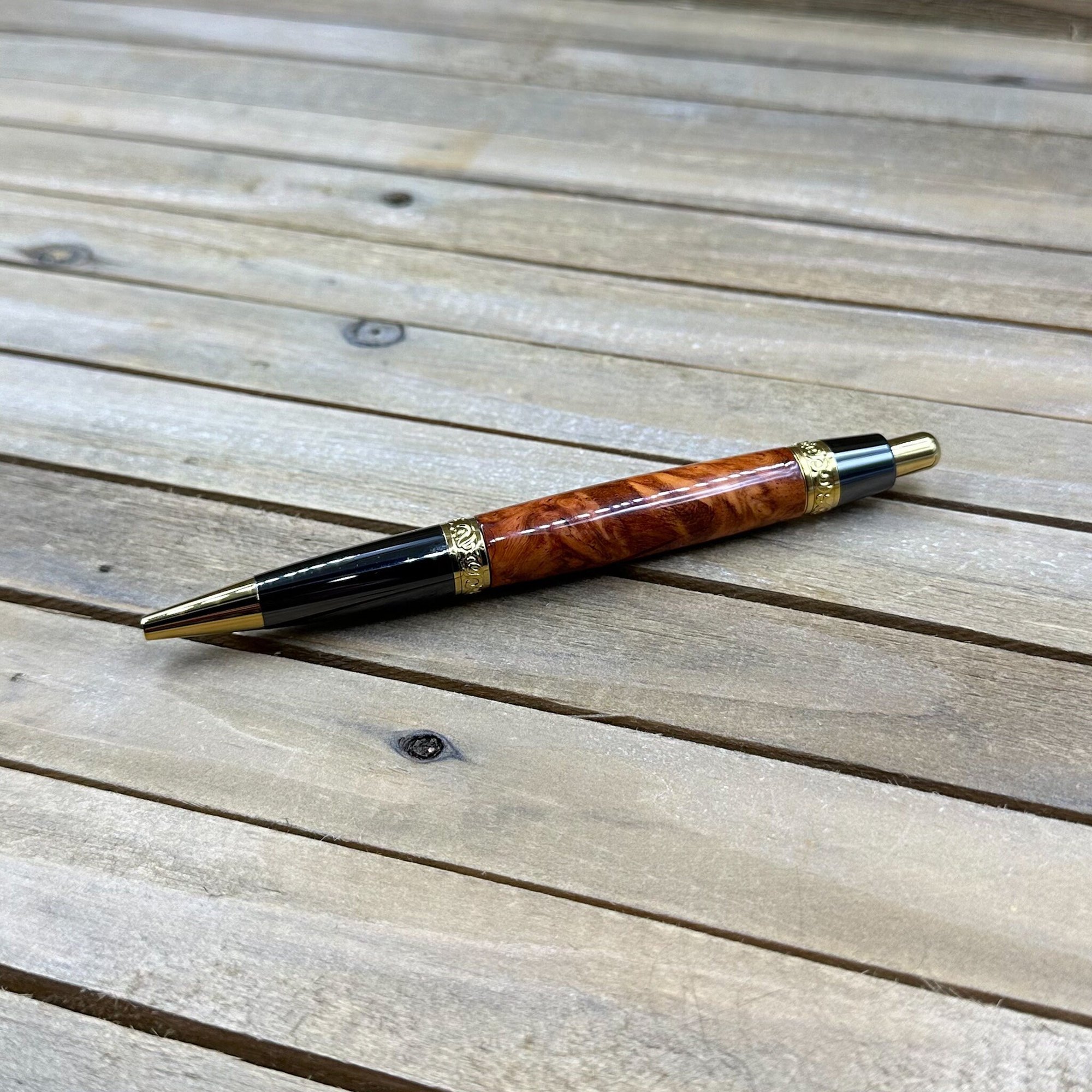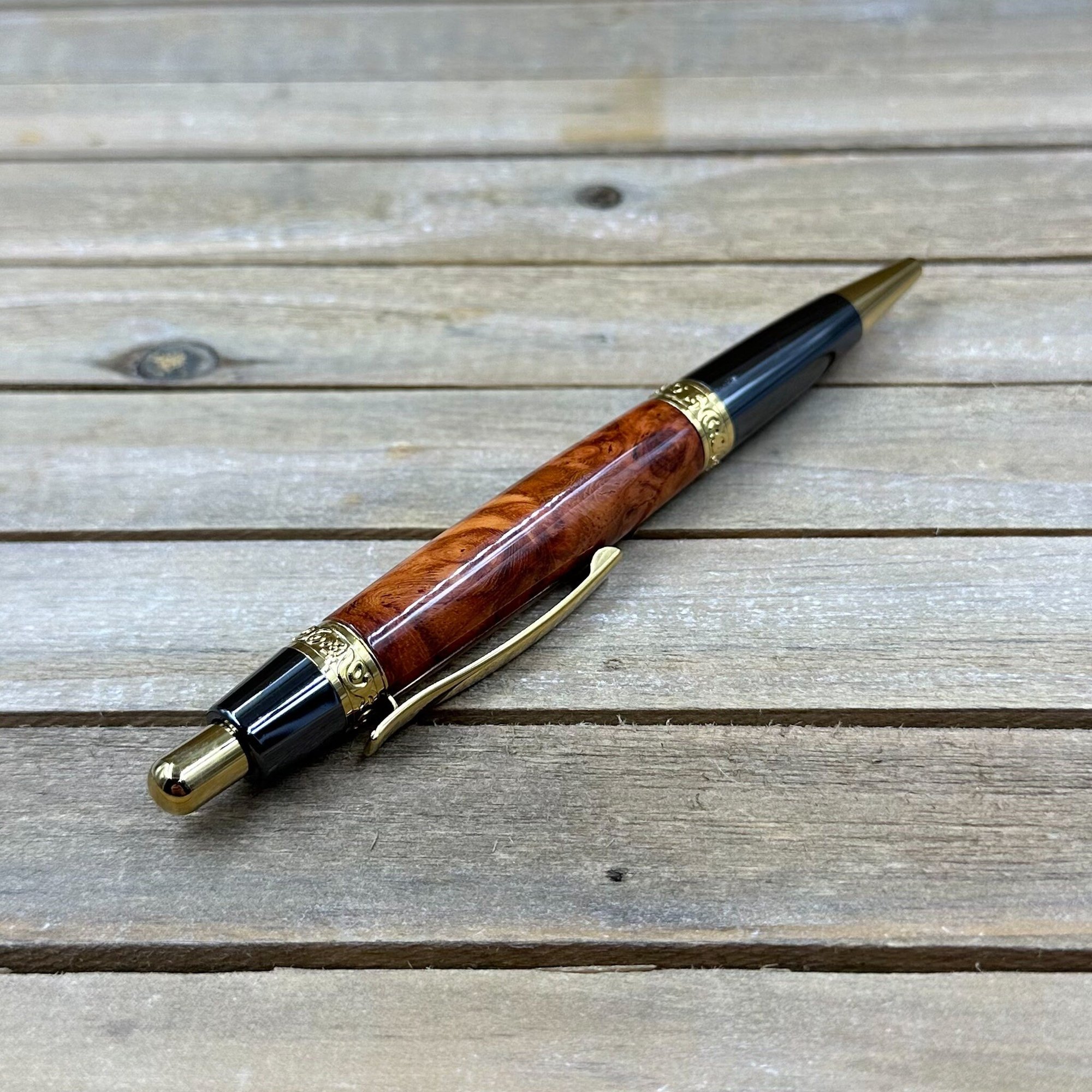 Handmade Amboyna Burl Click Style Ballpoint Pen in Gold Titanium