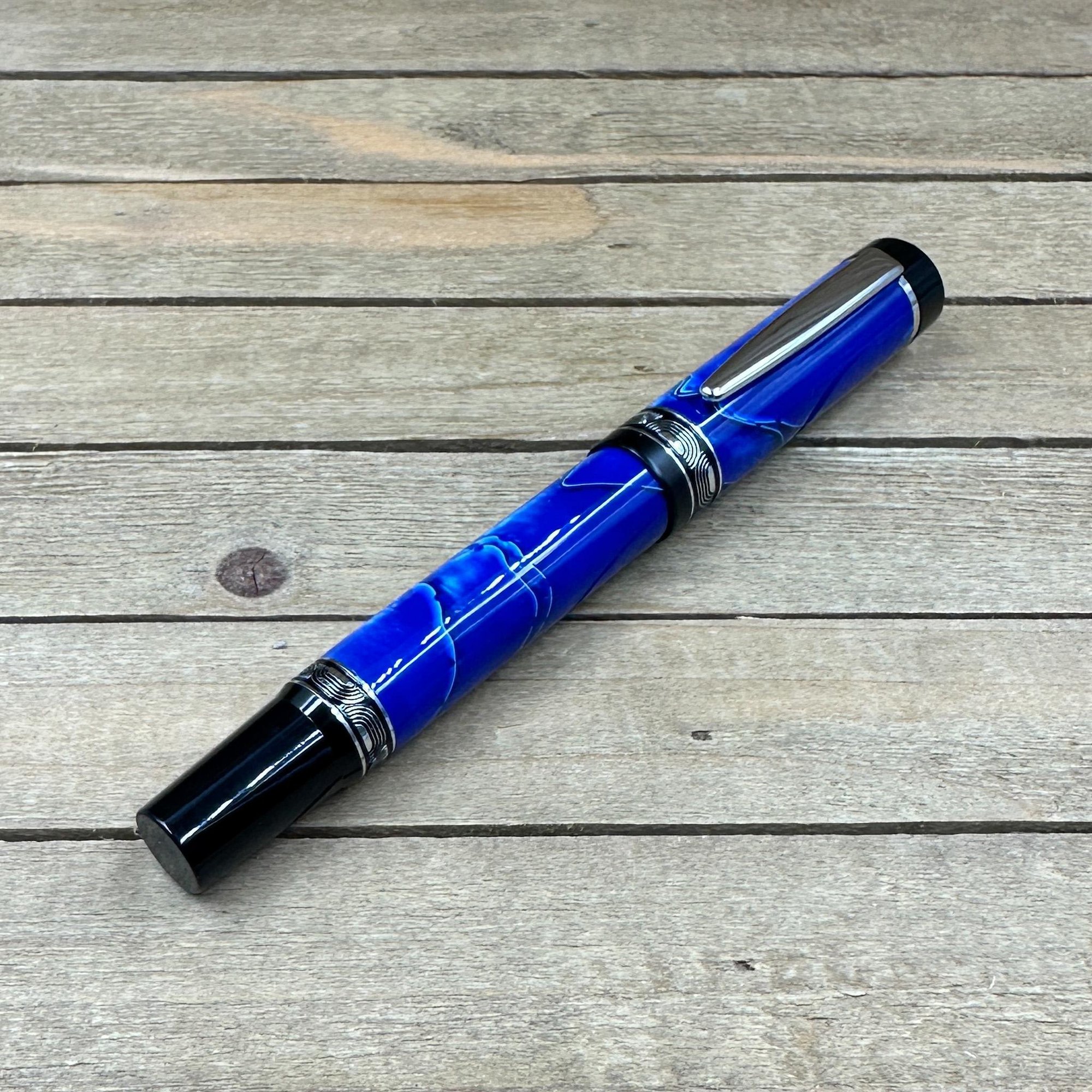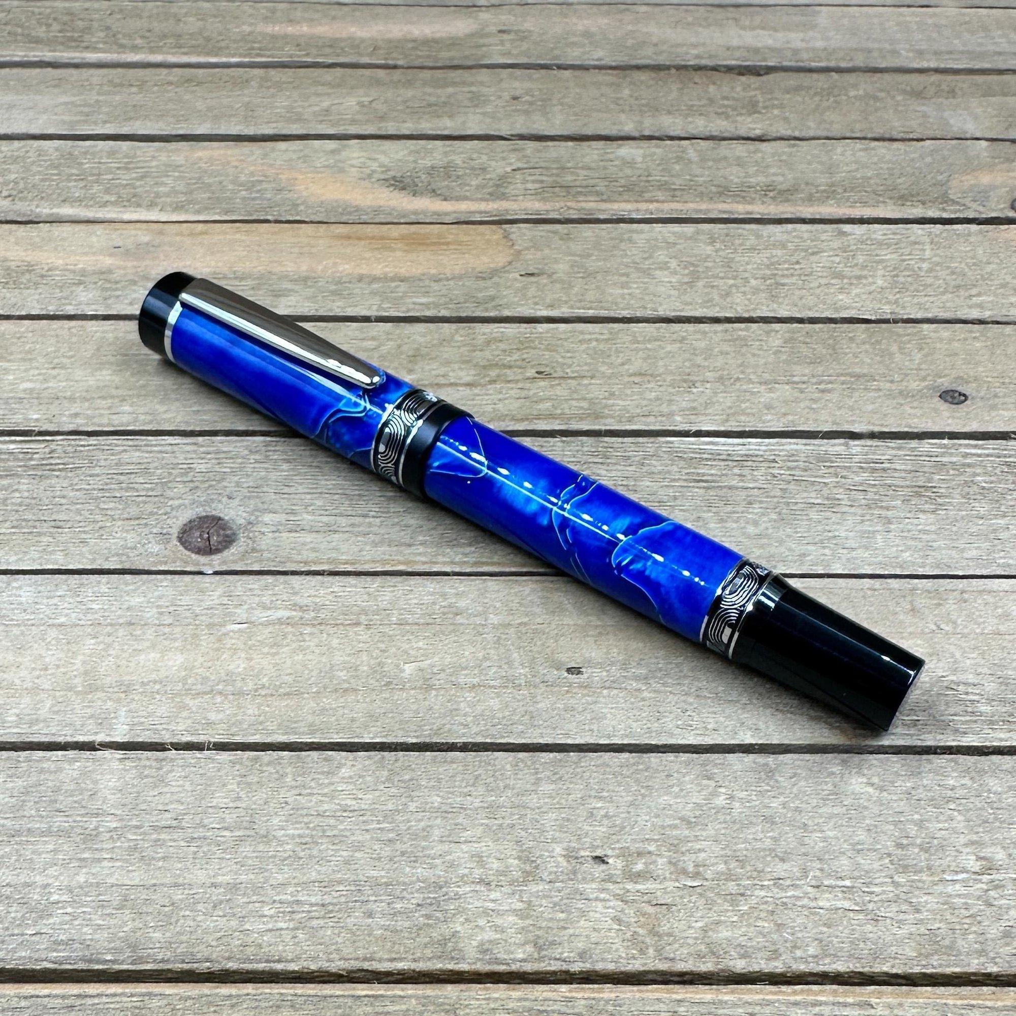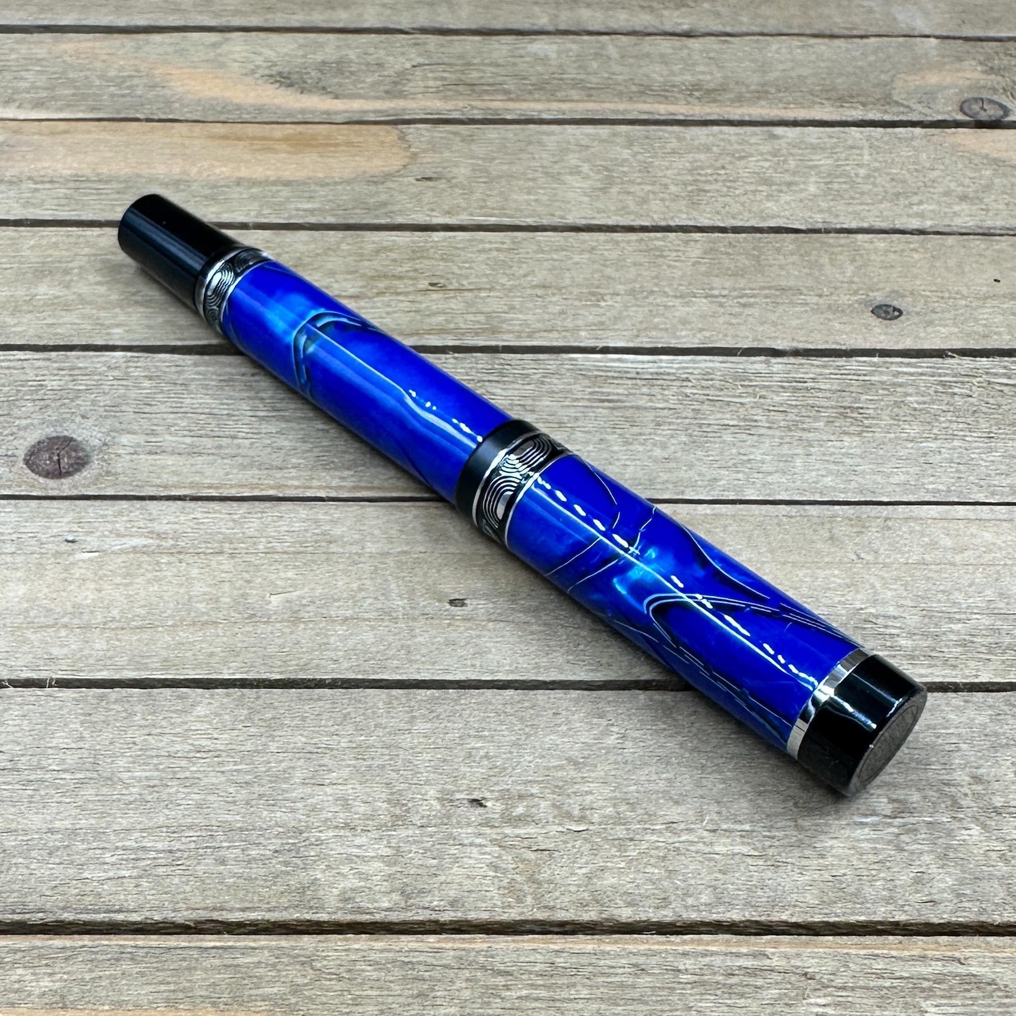 Handmade Cobalt Blue Mesh Rollerball Pen, Ultralight