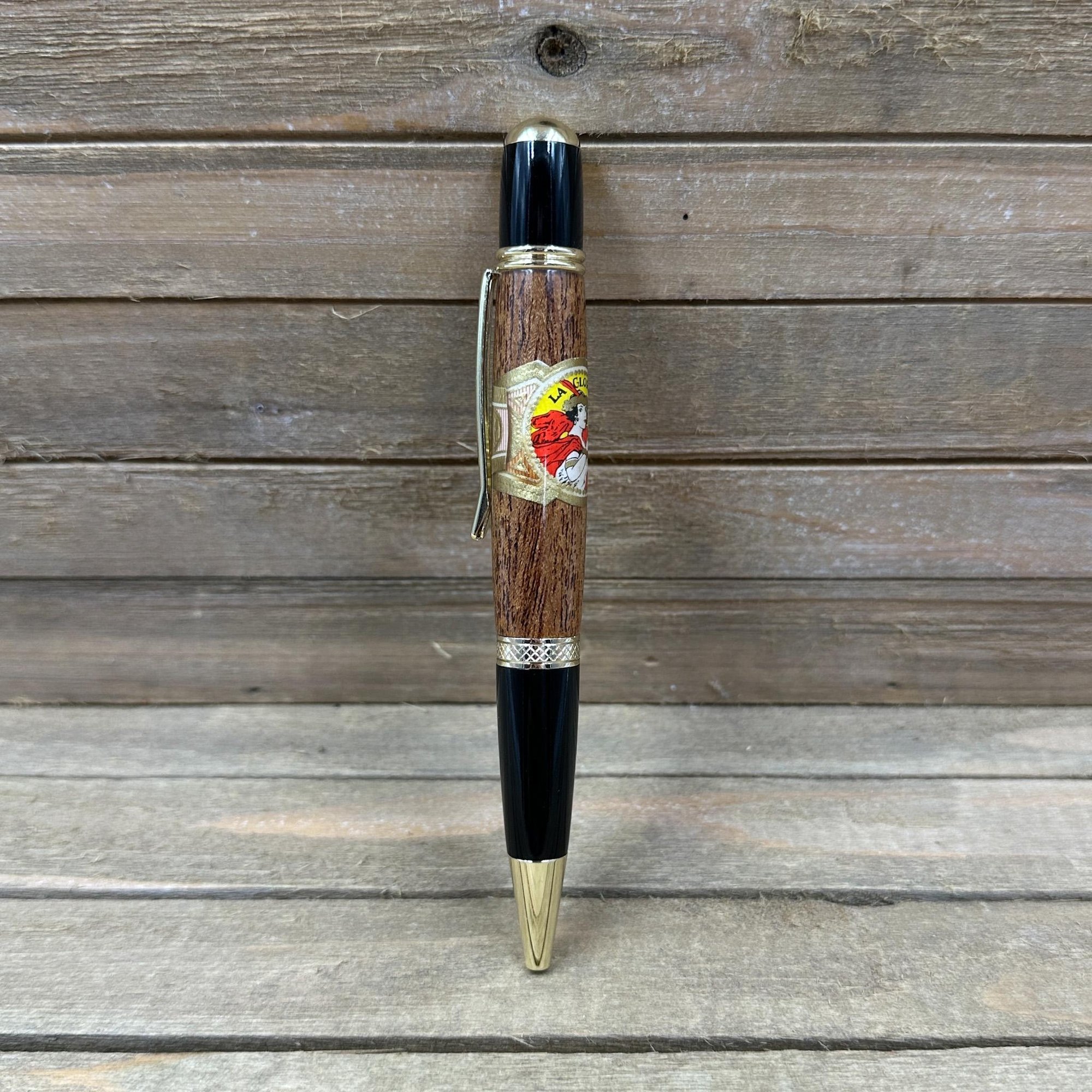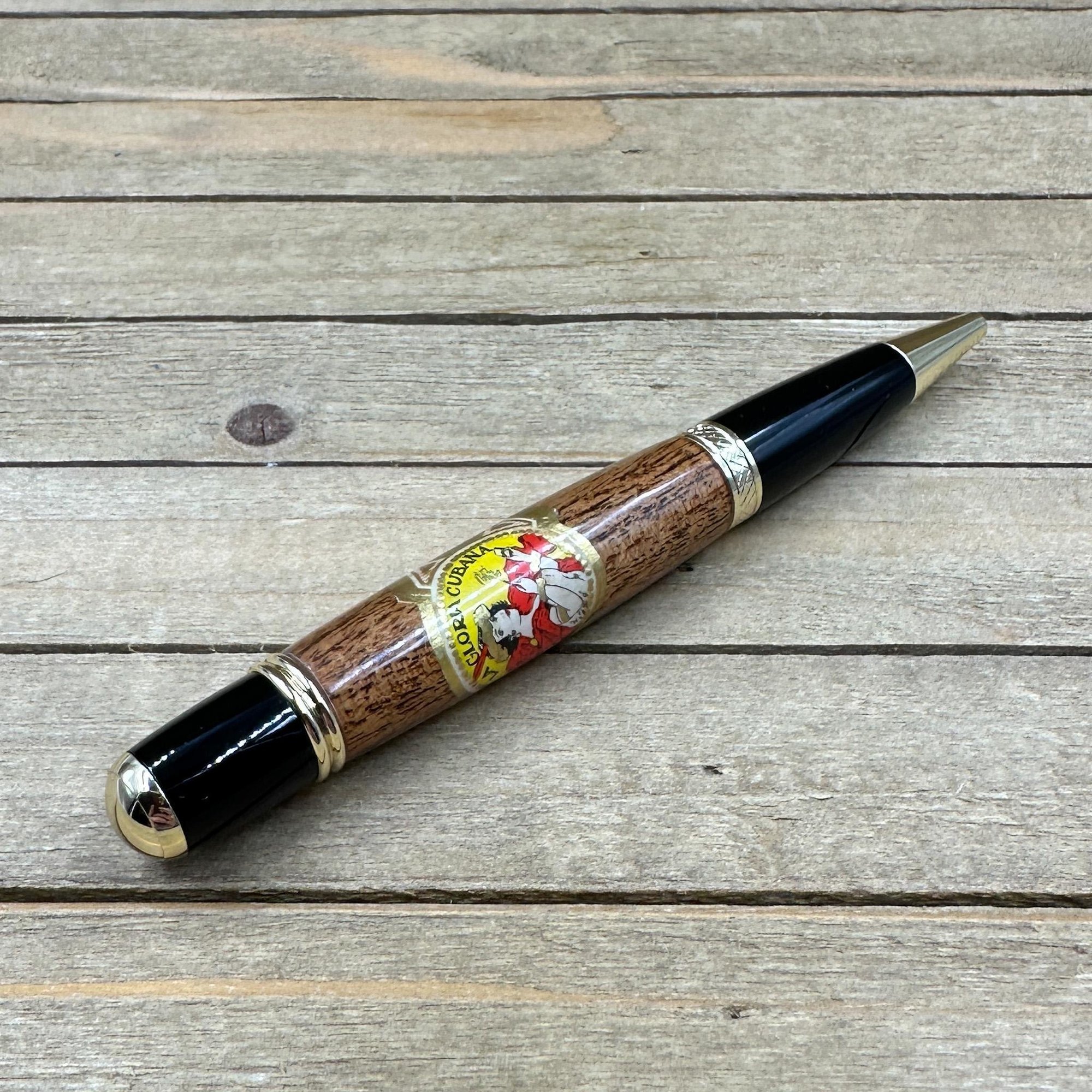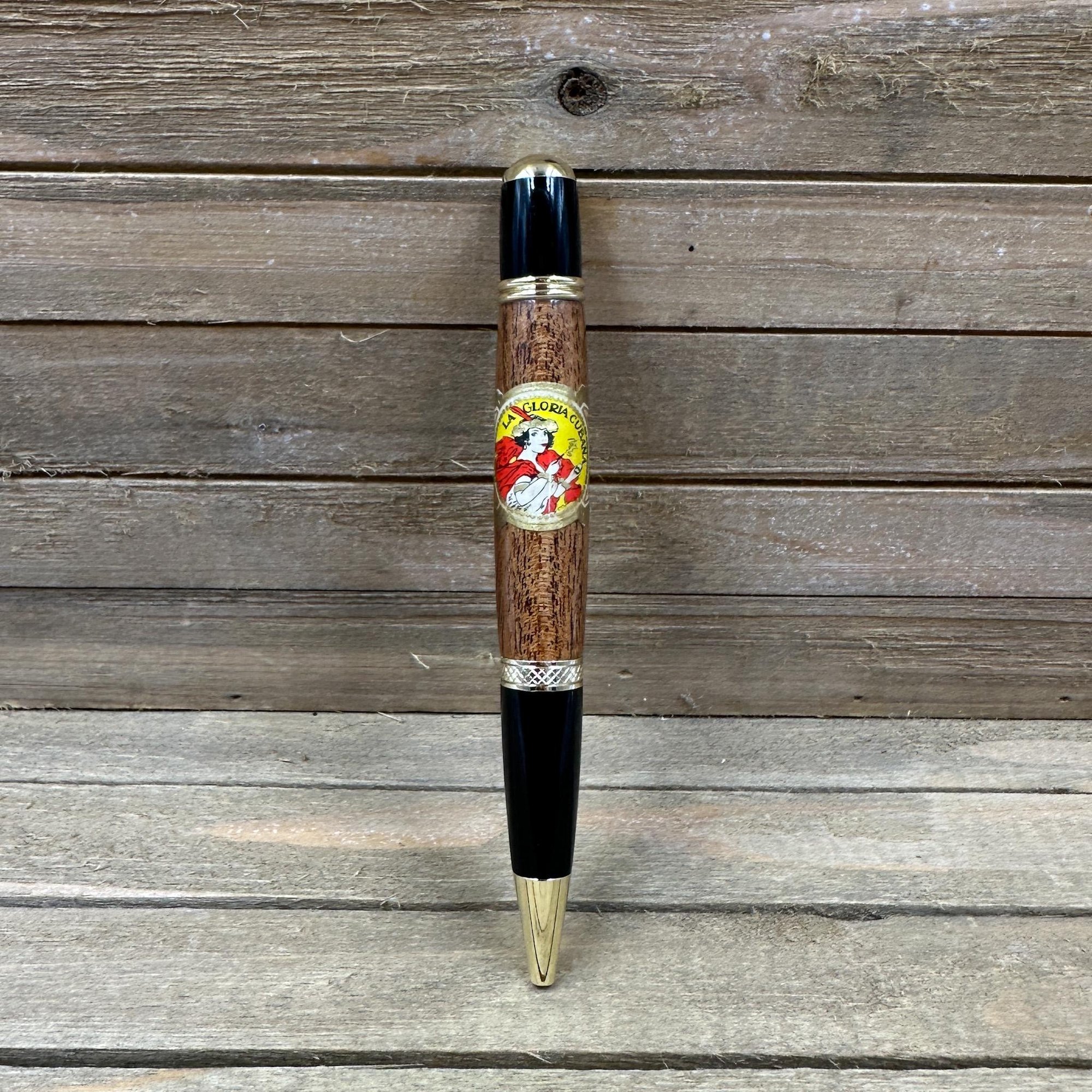 Handmade Mesquite Wood Ballpoint Pen Cast with La Gloria Cubana Cigar Label
