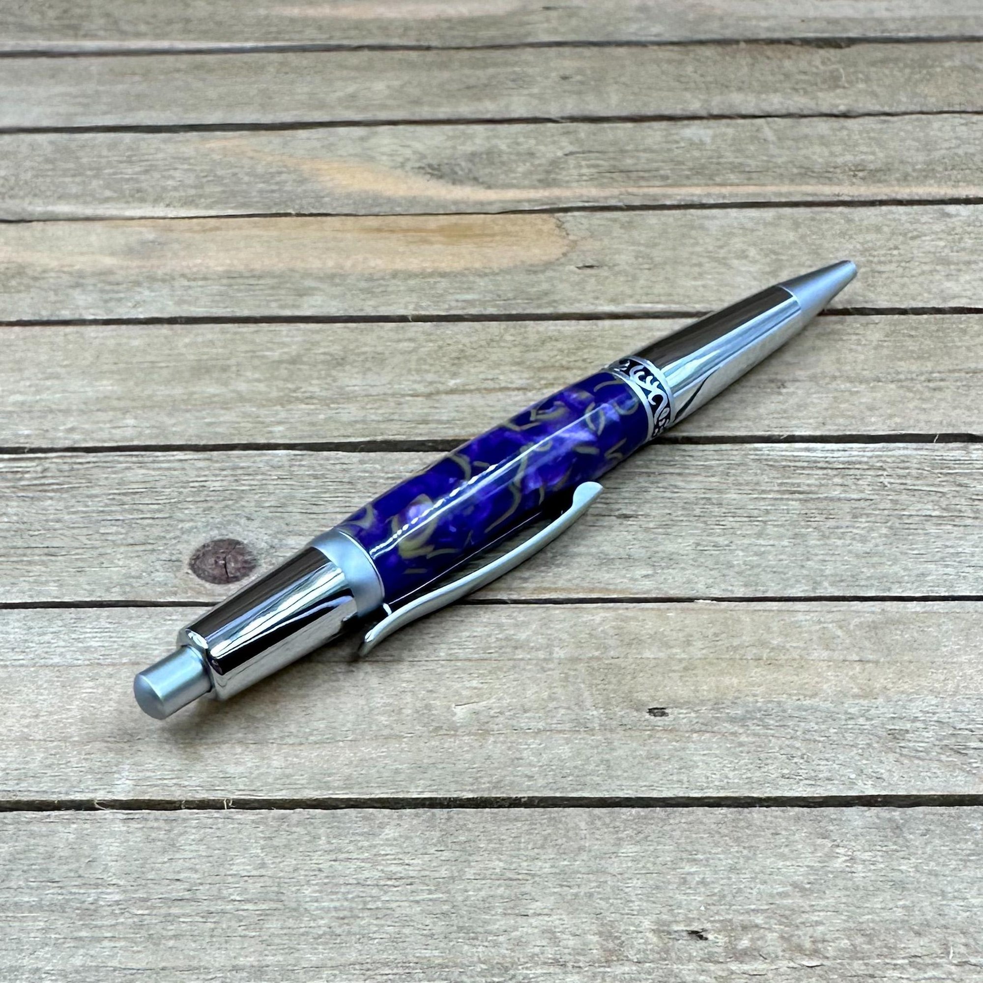 All of my Sierra click style pens come with Schmidt ink refills which in my opinion provides one of the best writing experiences. You will also get your choice of black or blue ink. All my pens are refillable and refills can be bought from either myself or stationary box stores. Your pen will also come with a gift box ready to give to someone or for yourself to store your newly acquired ballpoint pen.