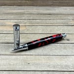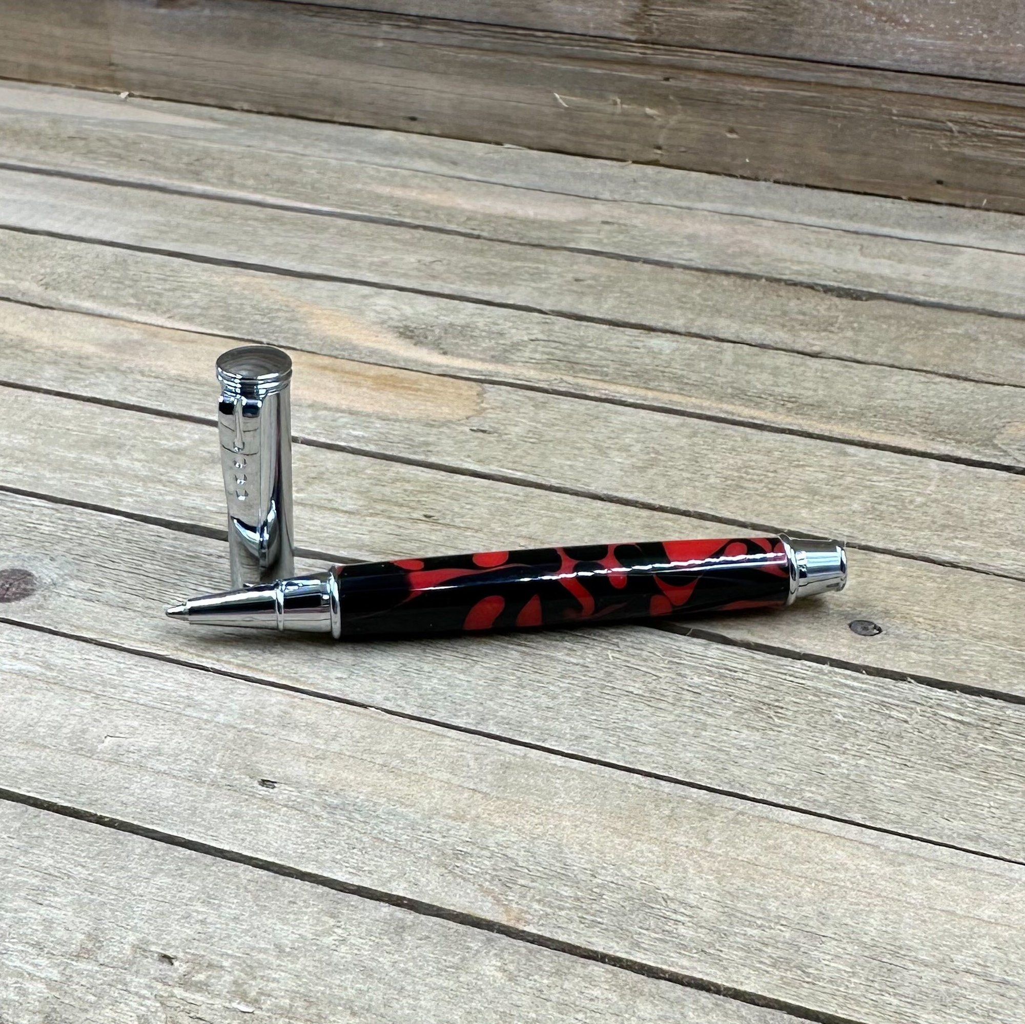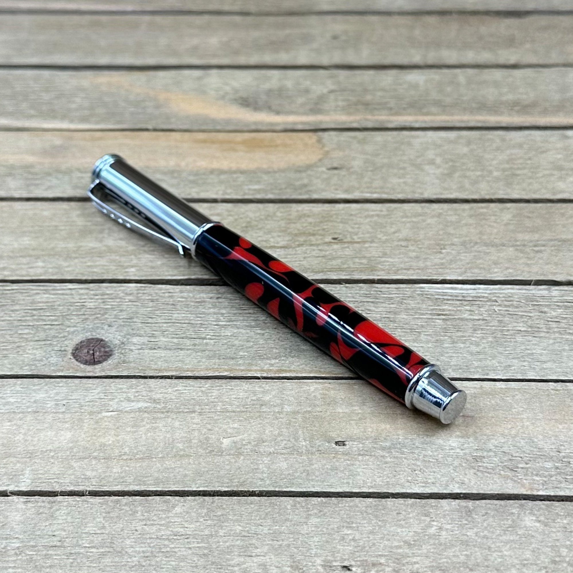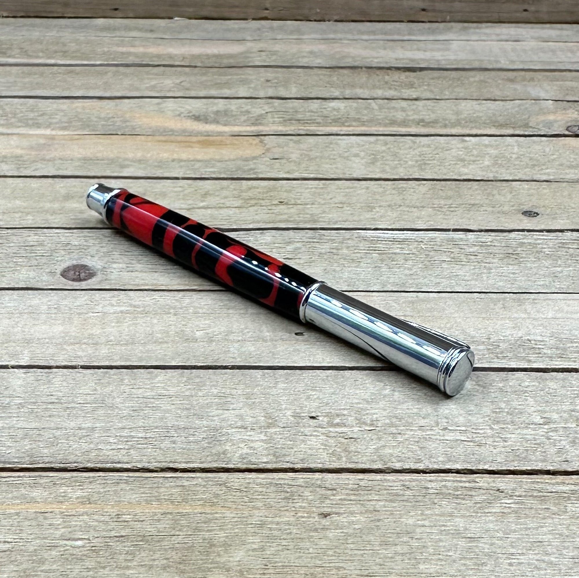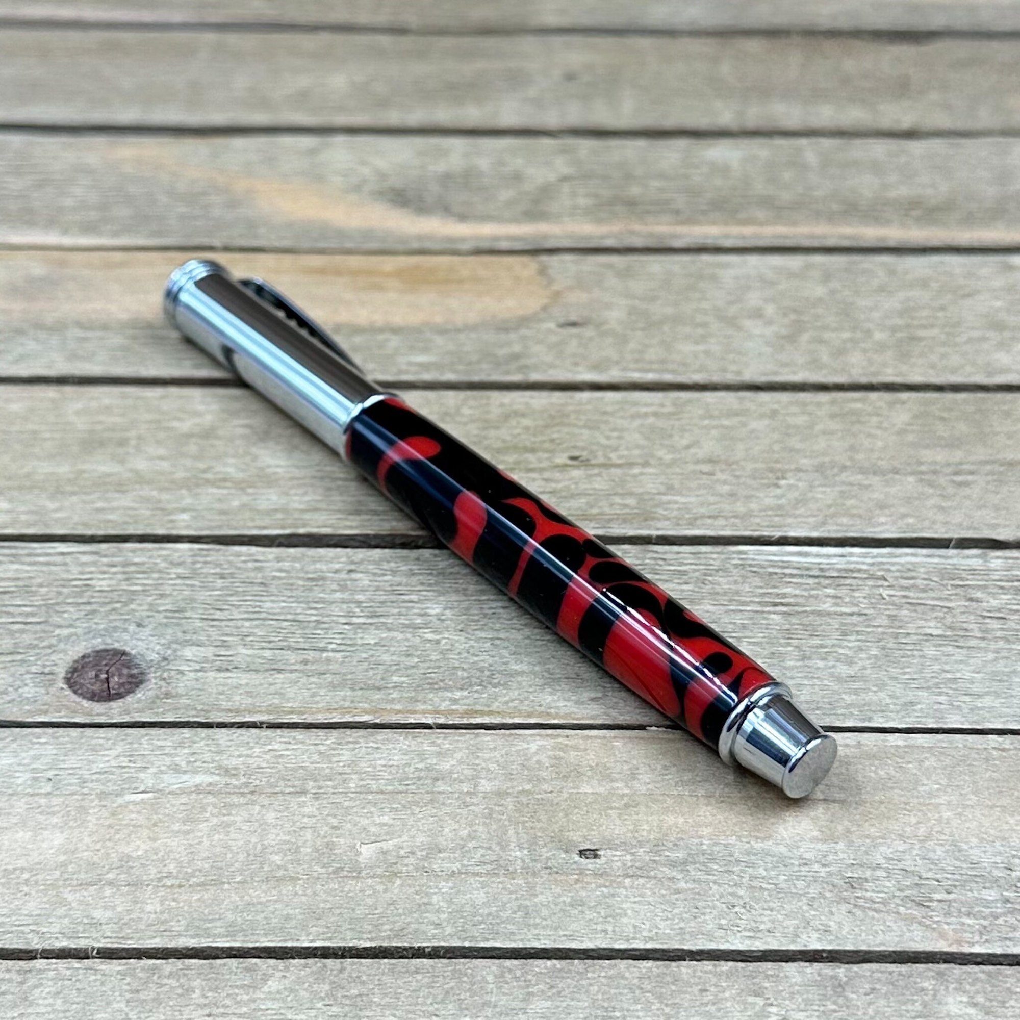 Handmade Red and Black Resin Ballpoint Pen with Chrome Snap Cap Parker Style