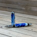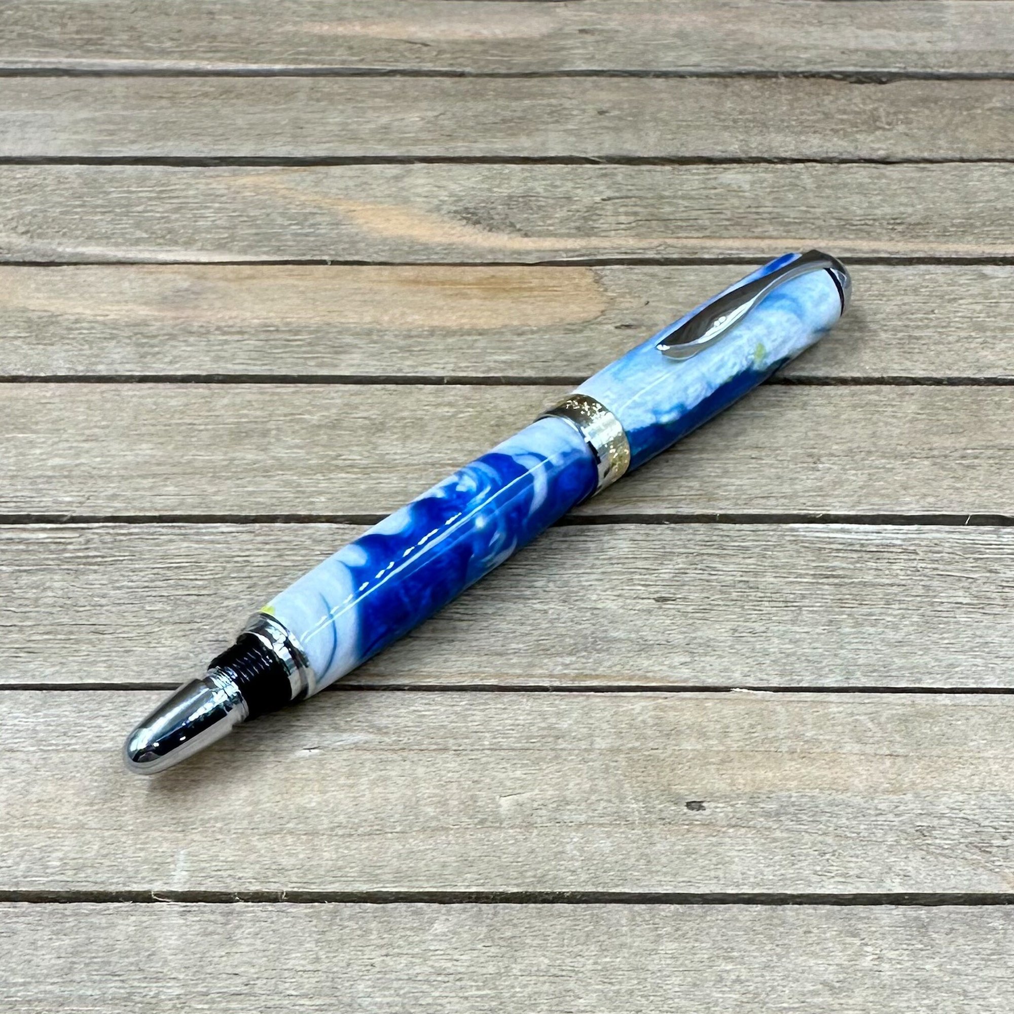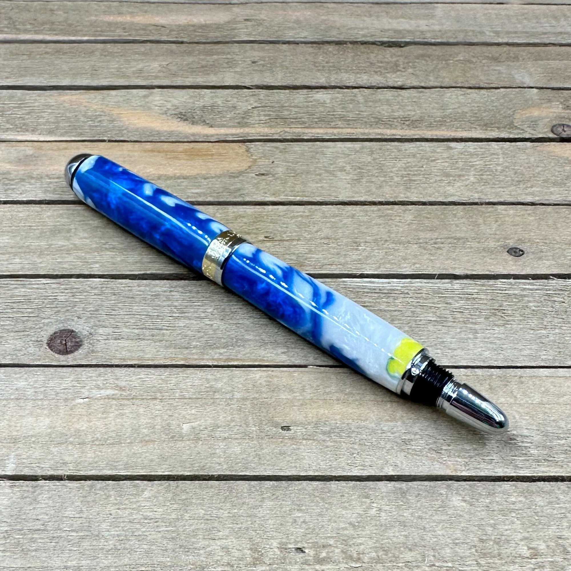 Handmade Sedona Style Rollerball Pen in Blue, White, and Yellow Resin
