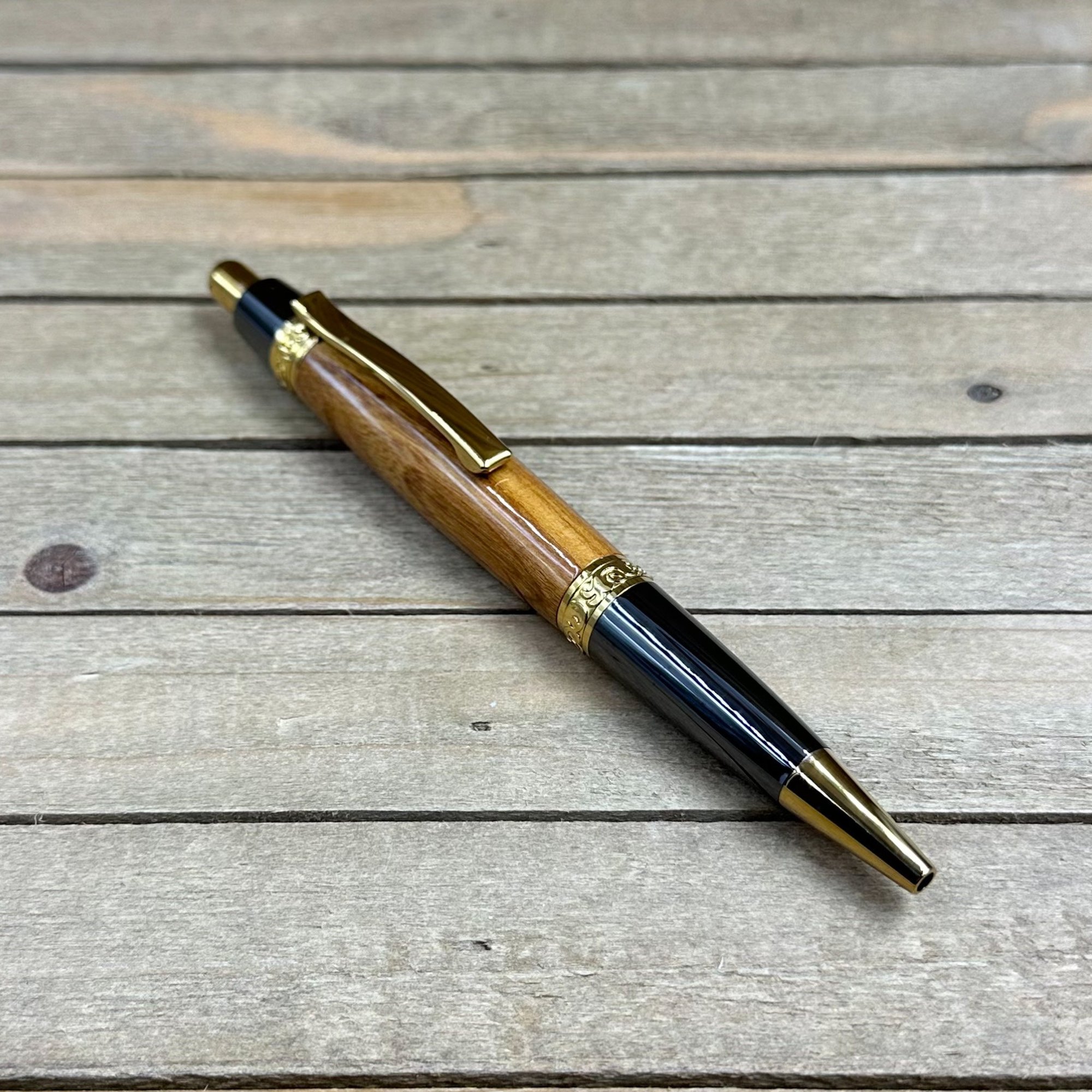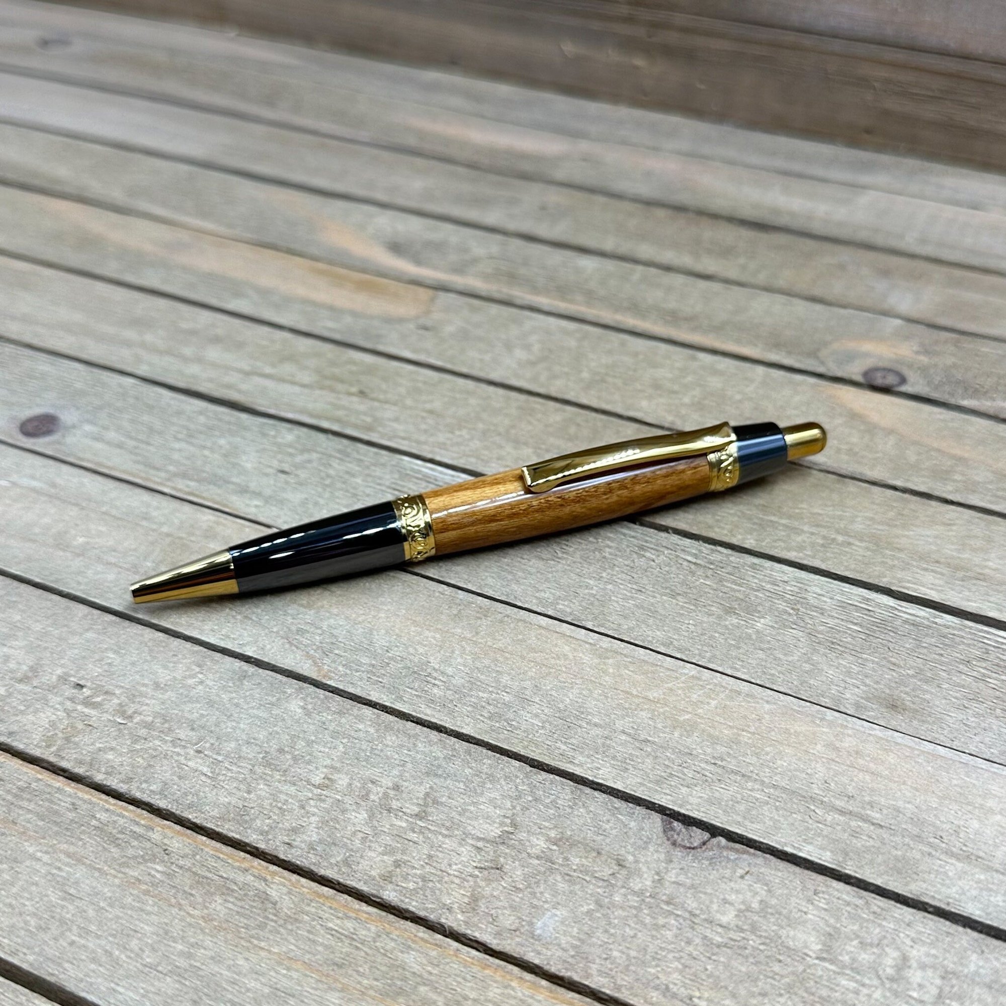 Handmade Texas Mountain Laurel Ballpoint Pen with Gold Titanium Accents
