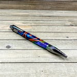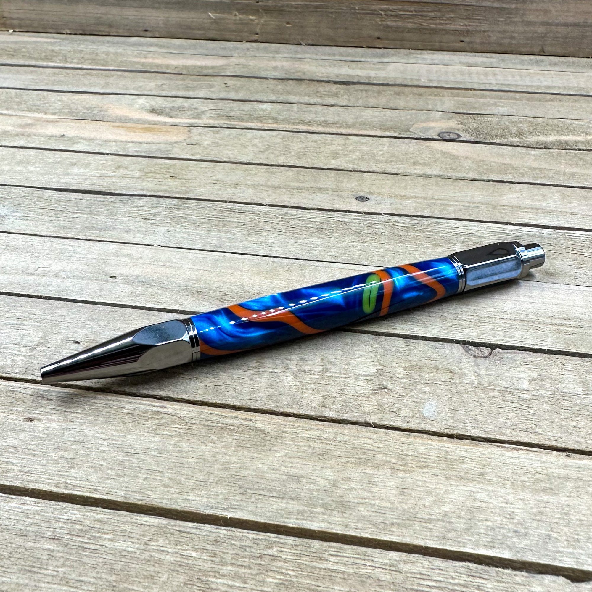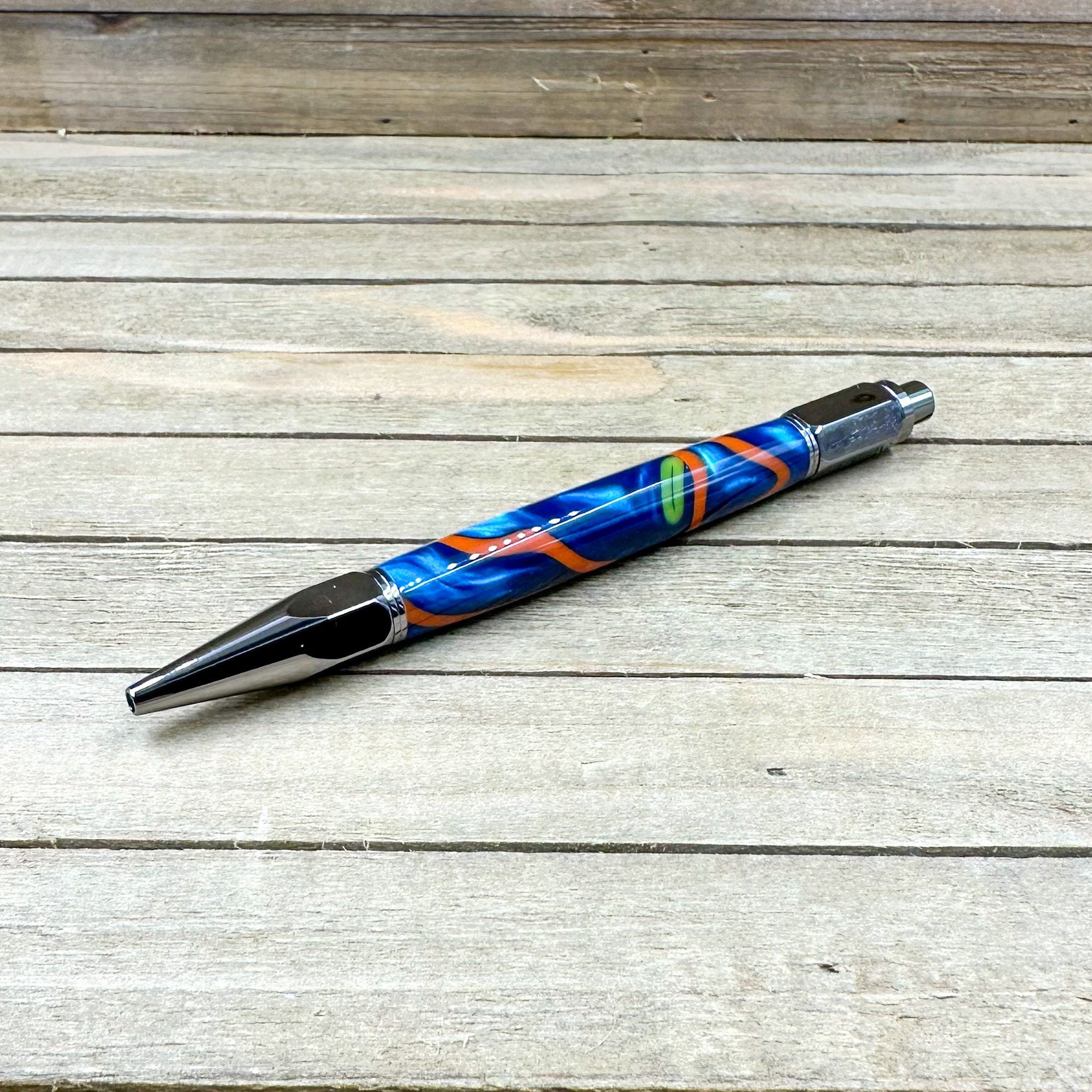 Bring bold color and precision craftsmanship to your everyday writing with this handcrafted Vertex-style ballpoint pen. Featuring a stunning blend of blue, red, and green resin, this pen catches the light beautifully and feels as good as it looks.