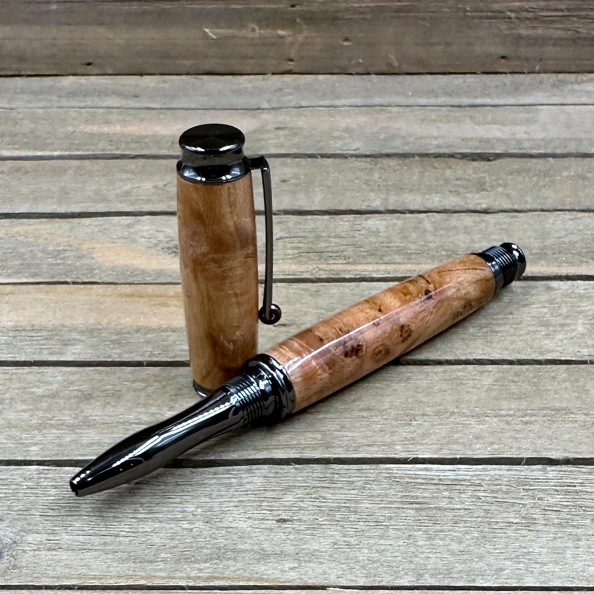 Handmade Virginia Cherry Burl Rollerball Pen - Gunmetal Virage Style