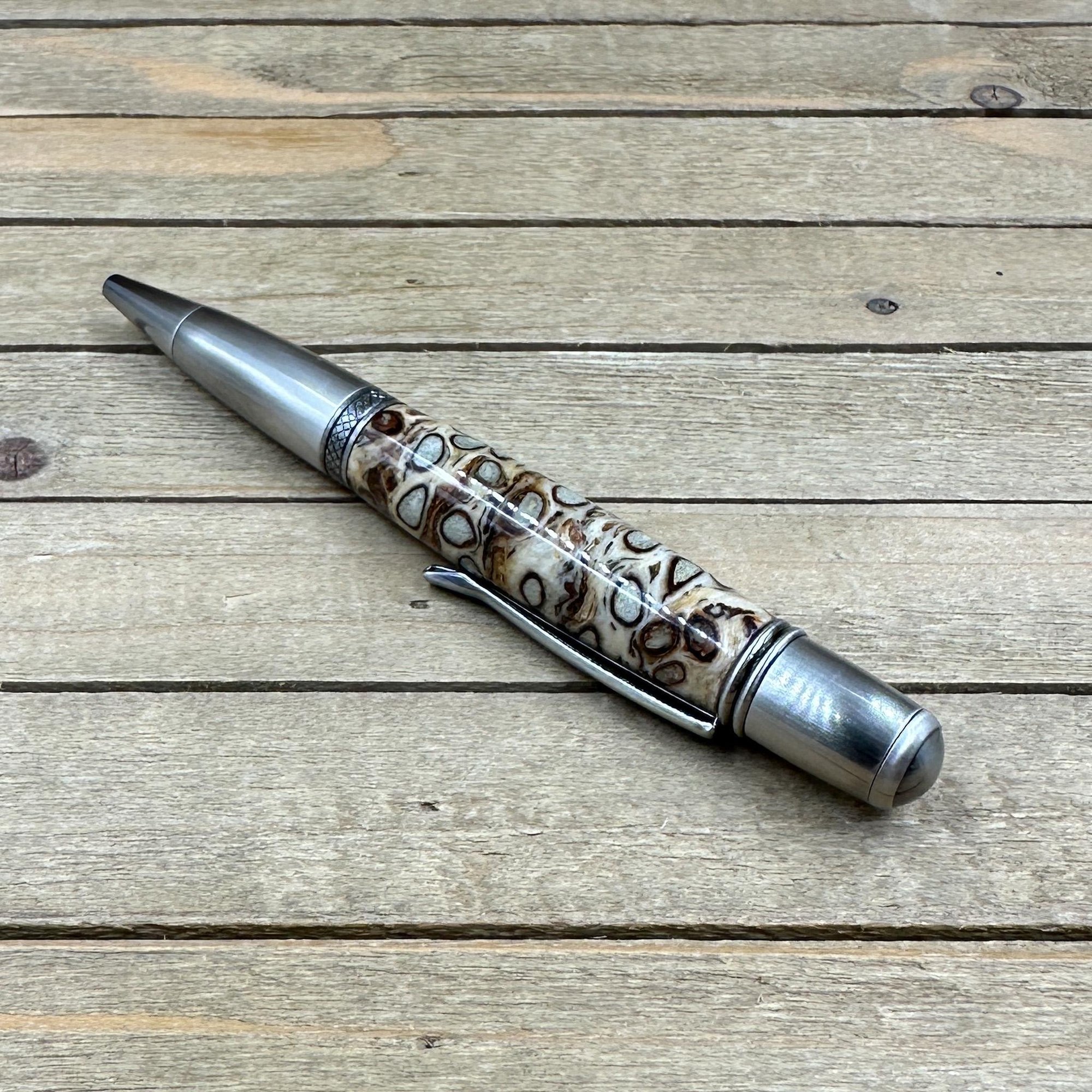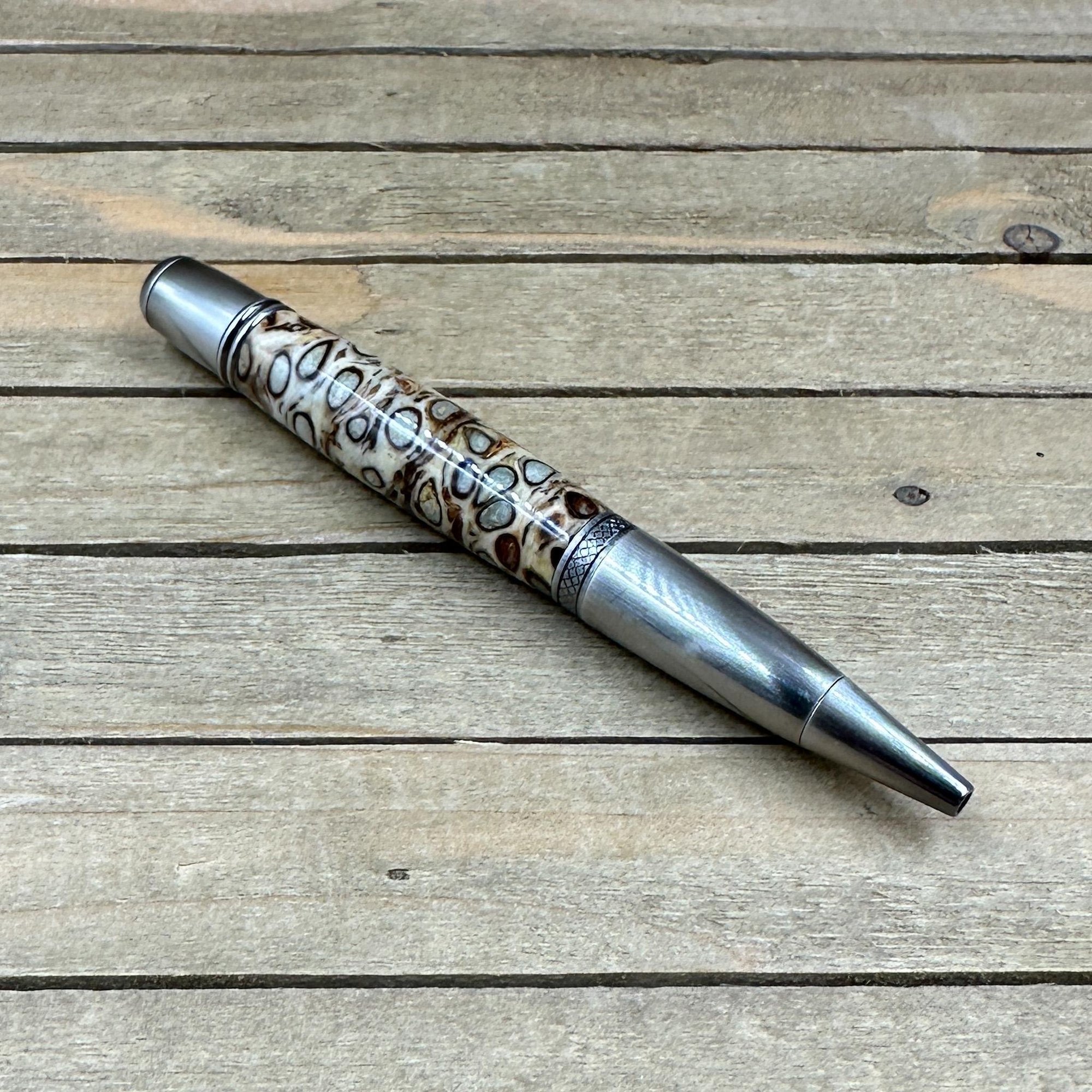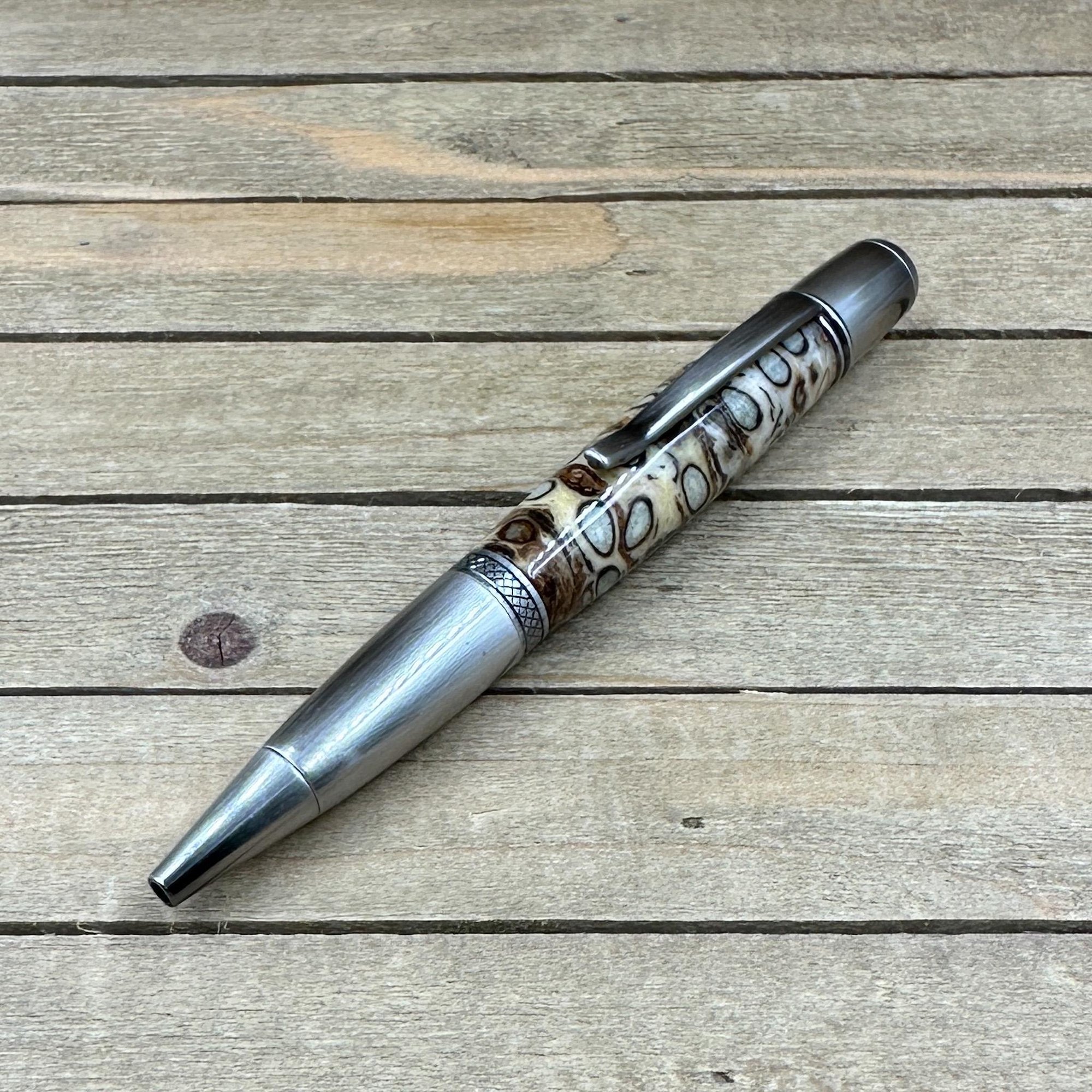 This pen was made in Michael's woodshop and features the following: