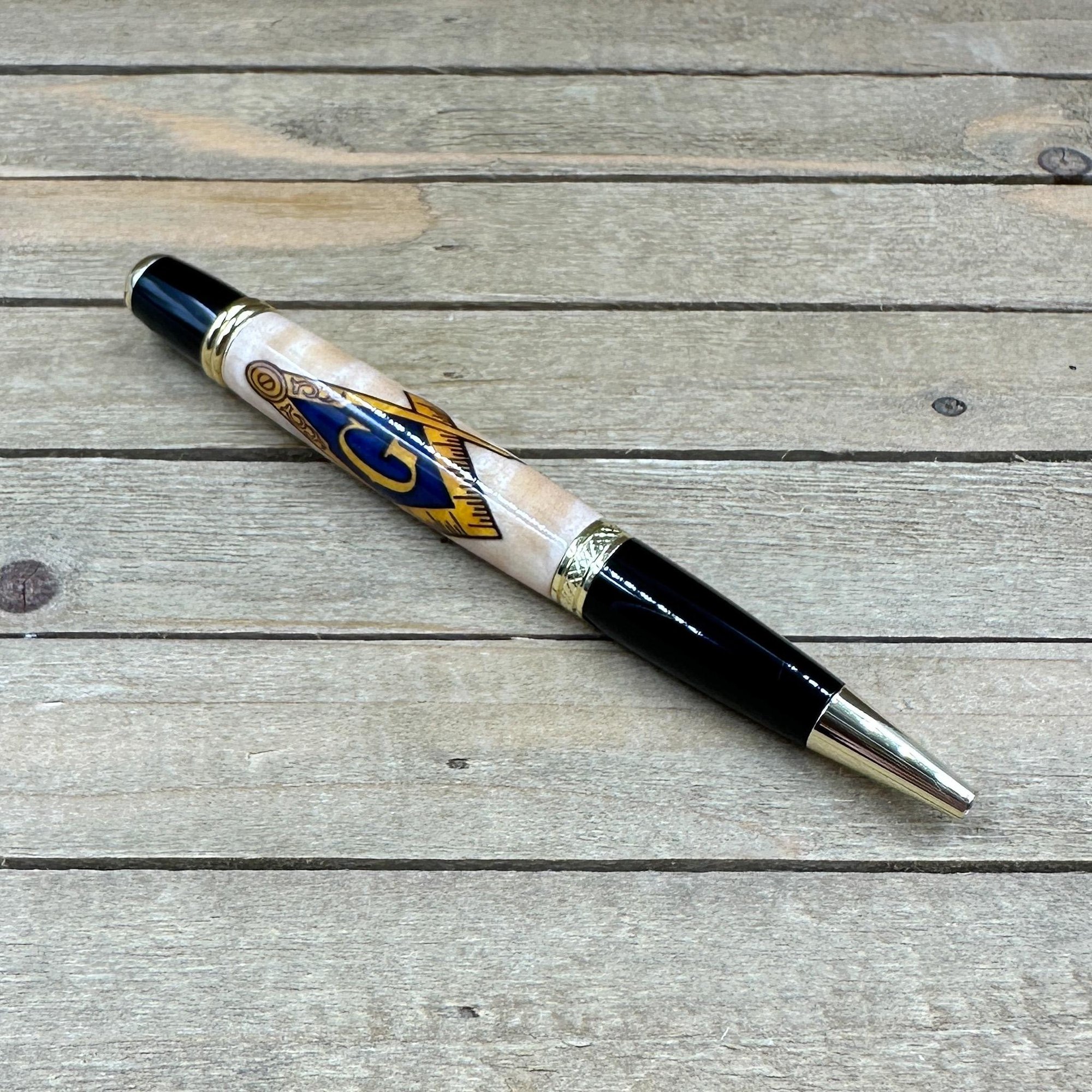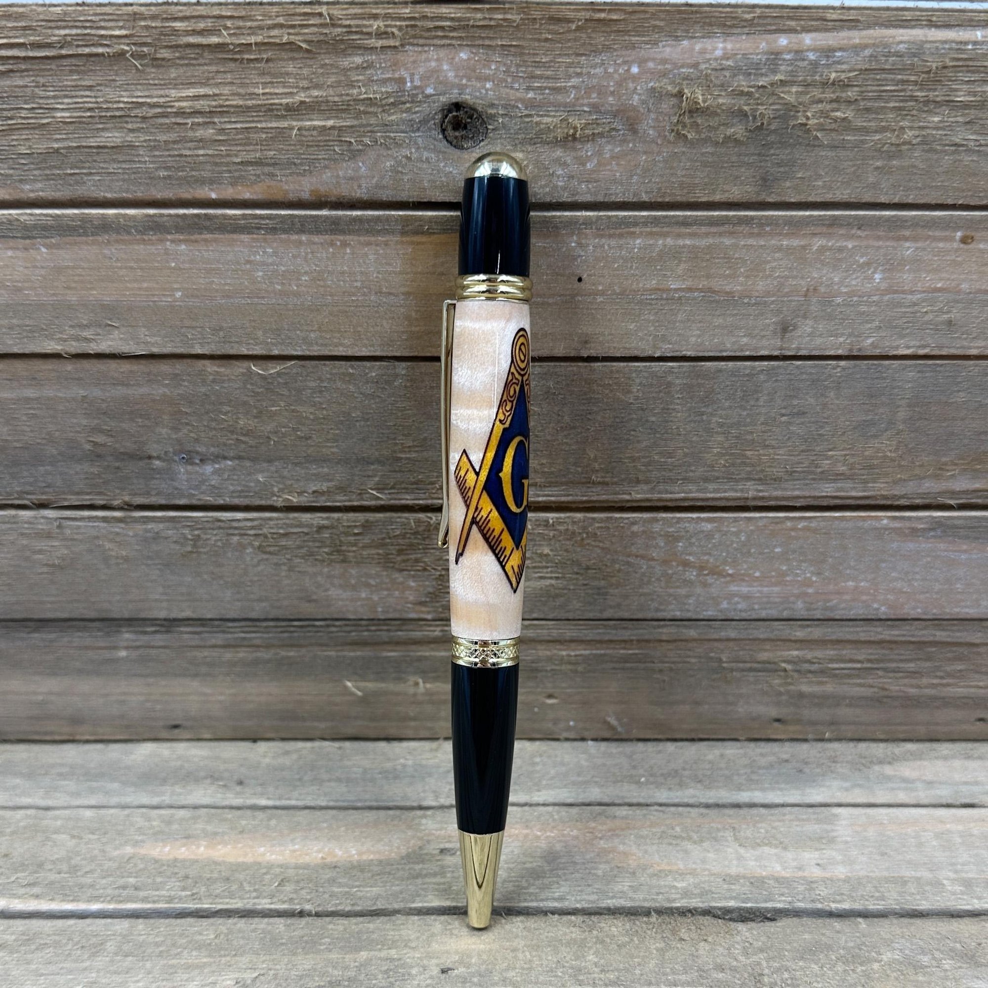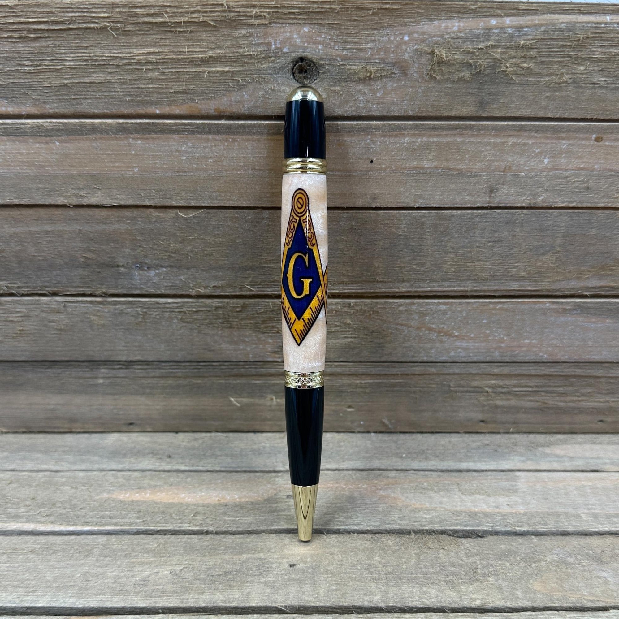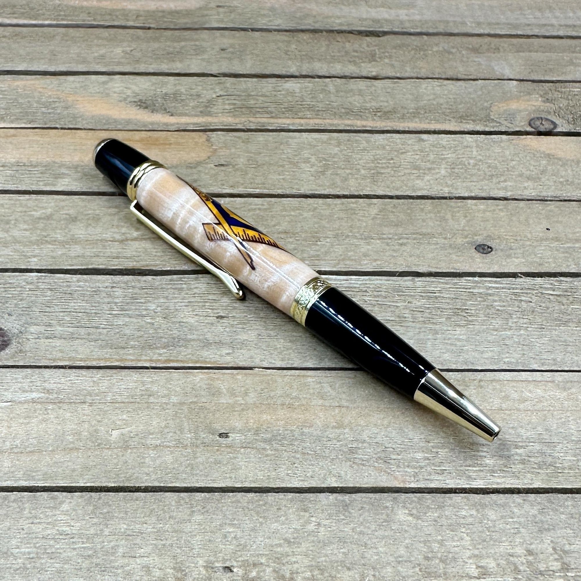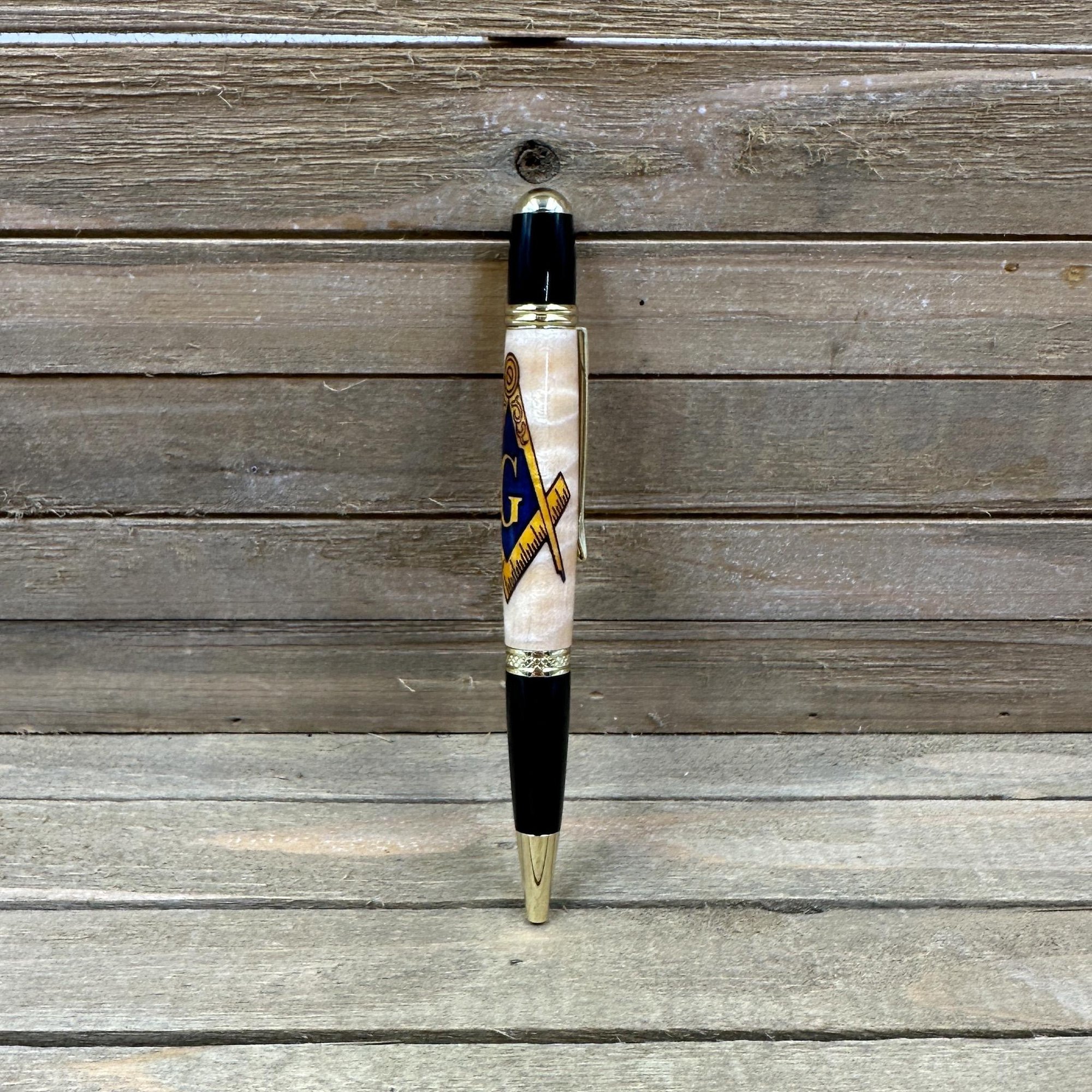 This awesome Mason symbol pen will be the perfect addition for a brother of Freemasonry. This "Sierra" style pen was made in Michael's woodshop and features the following:
