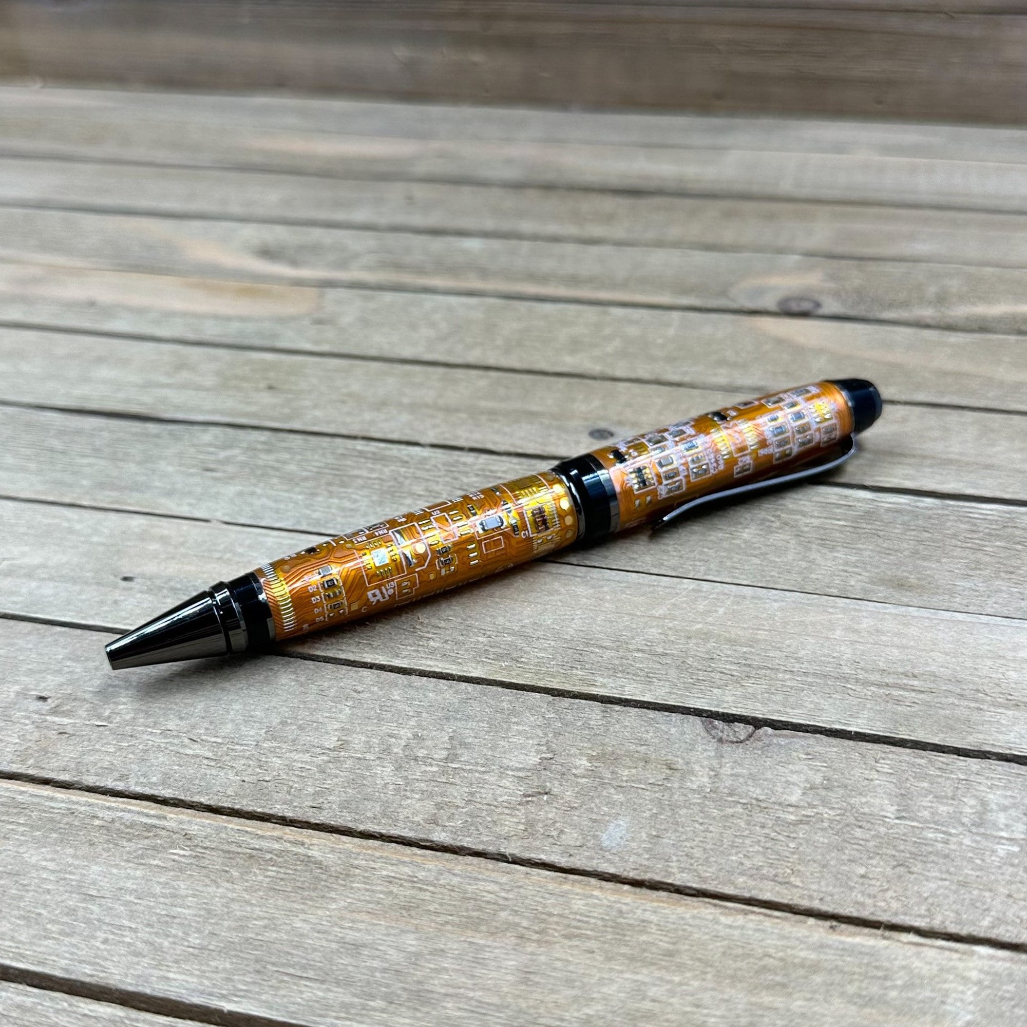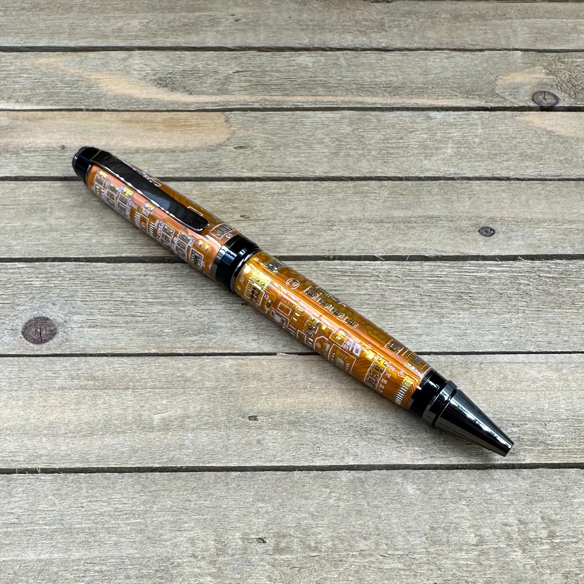 Orange Circuit Board Ballpoint Pen on Cigar Style Pen