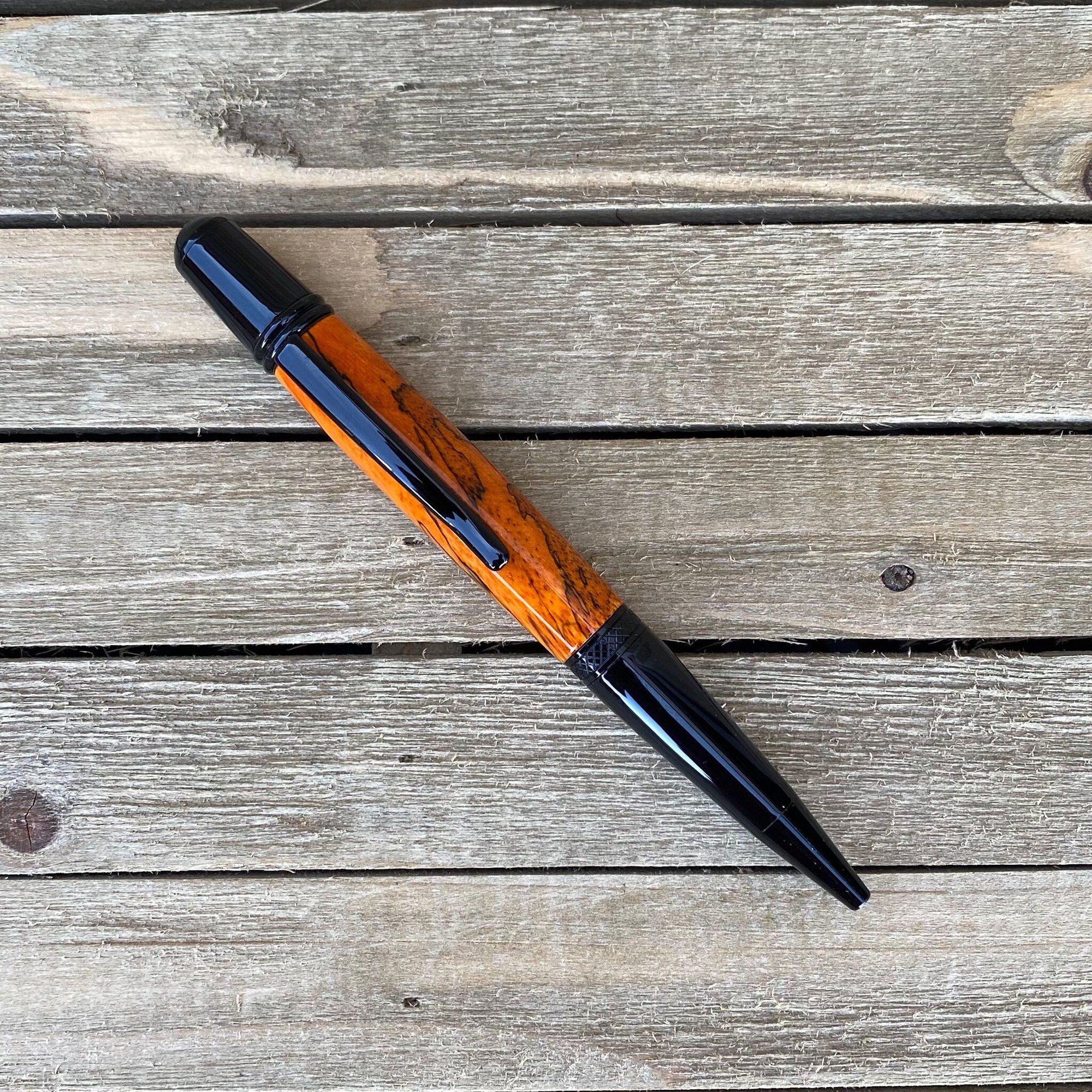 Orange Dyed Spalted Tamarind Ballpoint Pen in Black Chrome