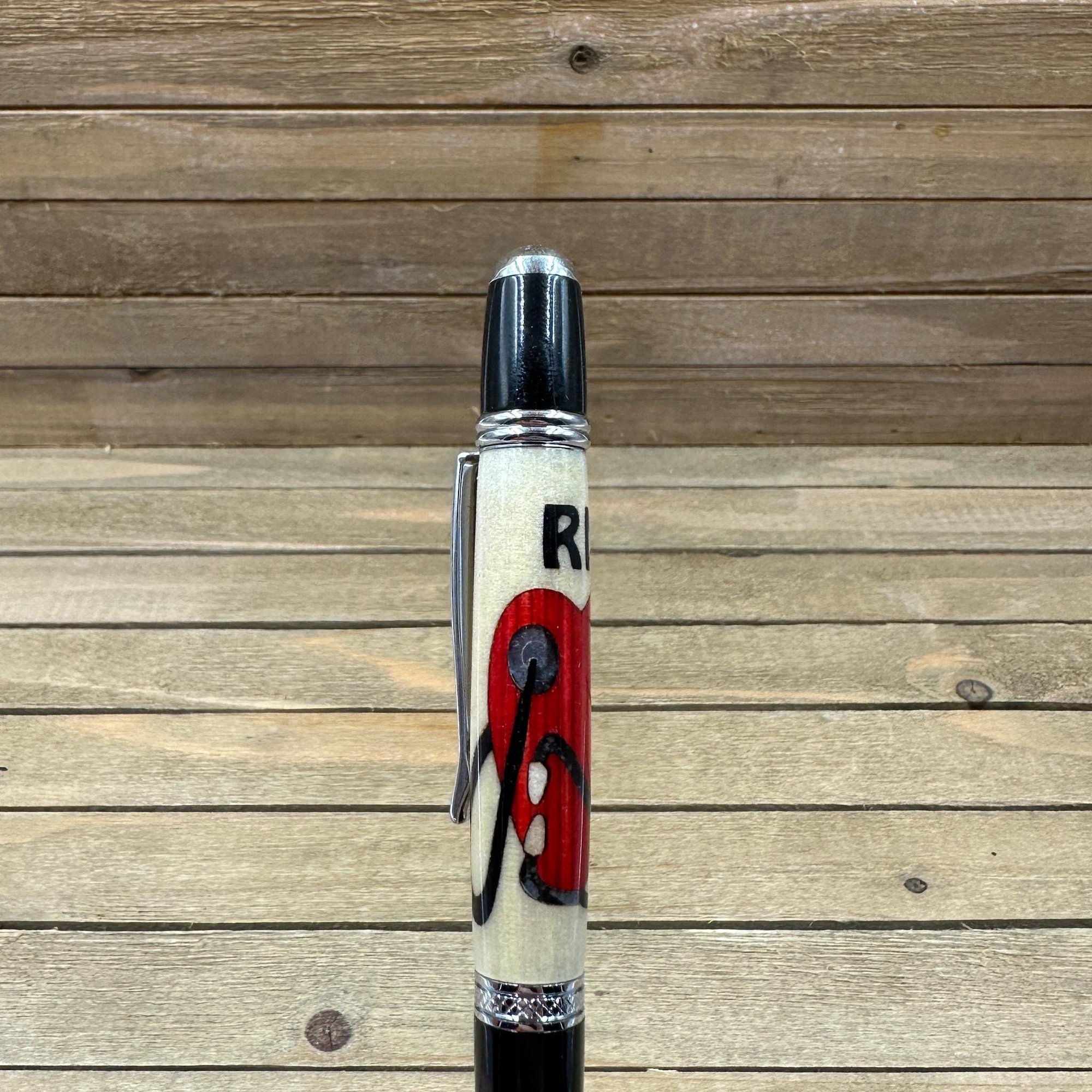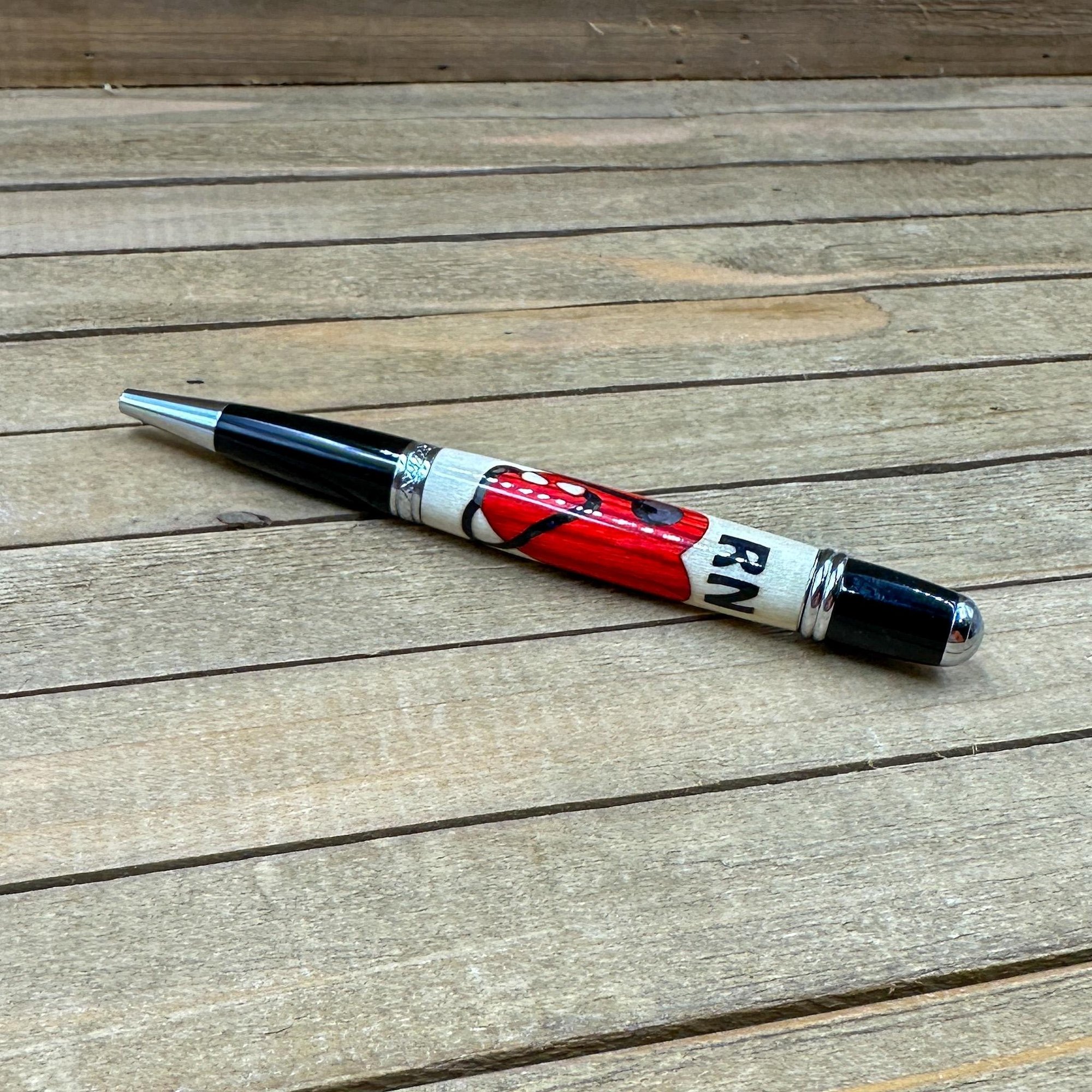 This Registered Nurse RN pen is the perfect gift. The "Caldera" style pen was made in Michael's woodshop and features the following: