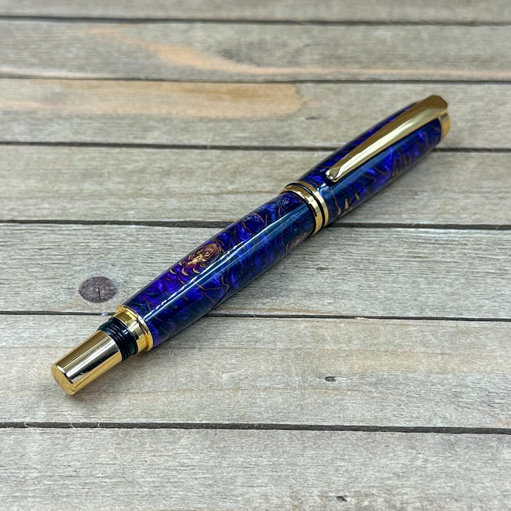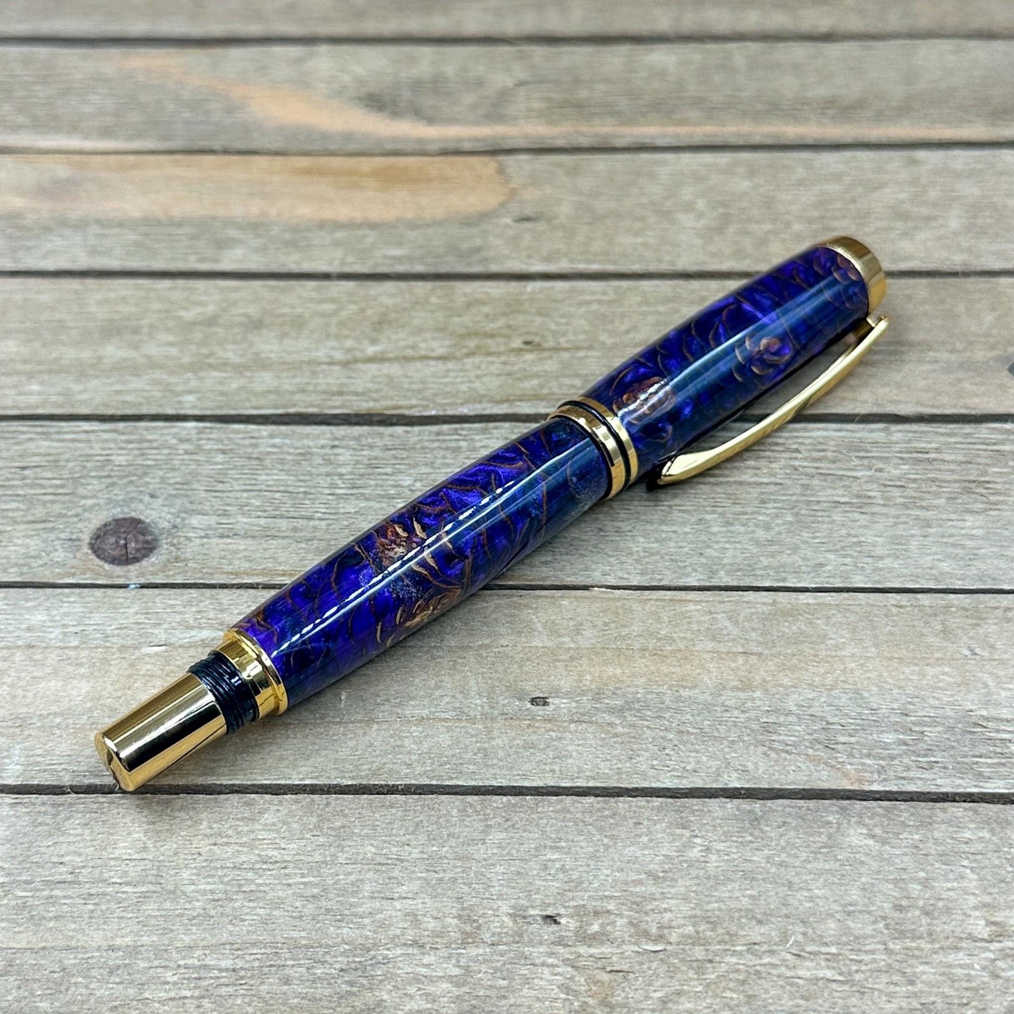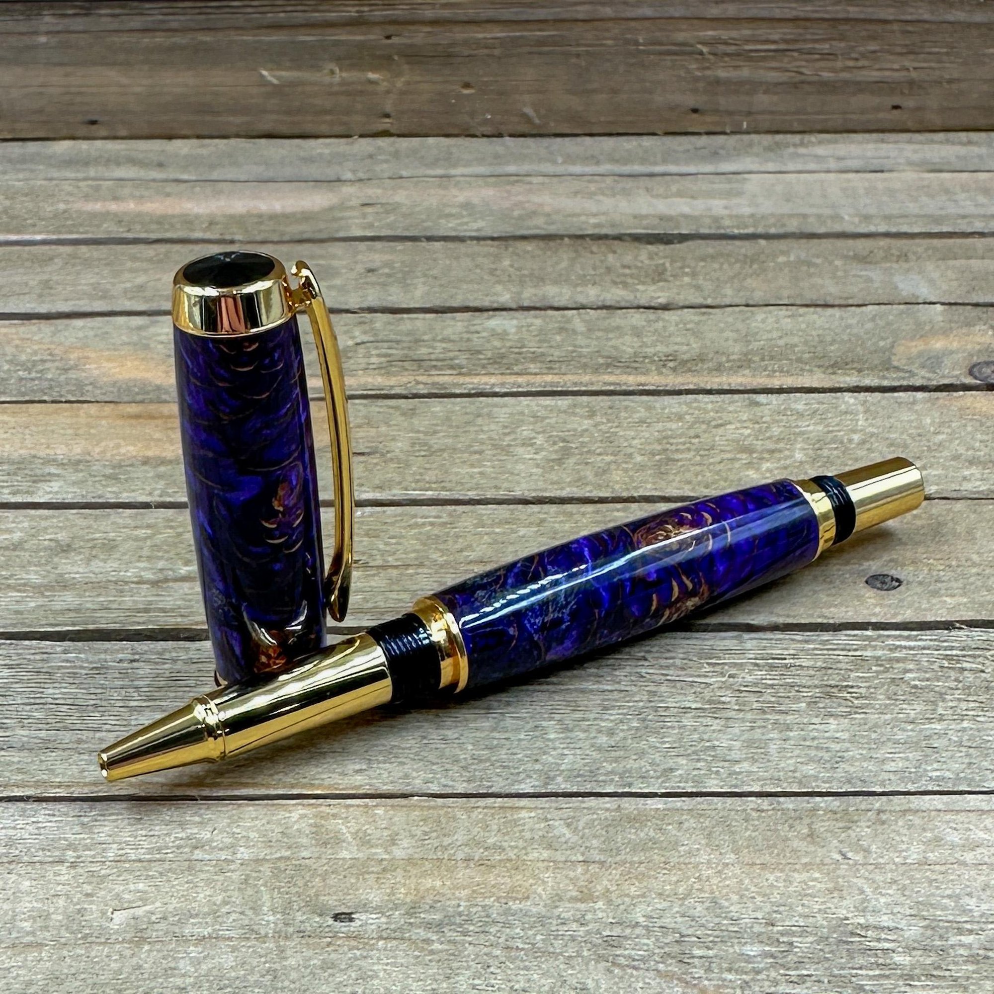 Royal Purple Pinecone Rollerball Pen with Gold Accents